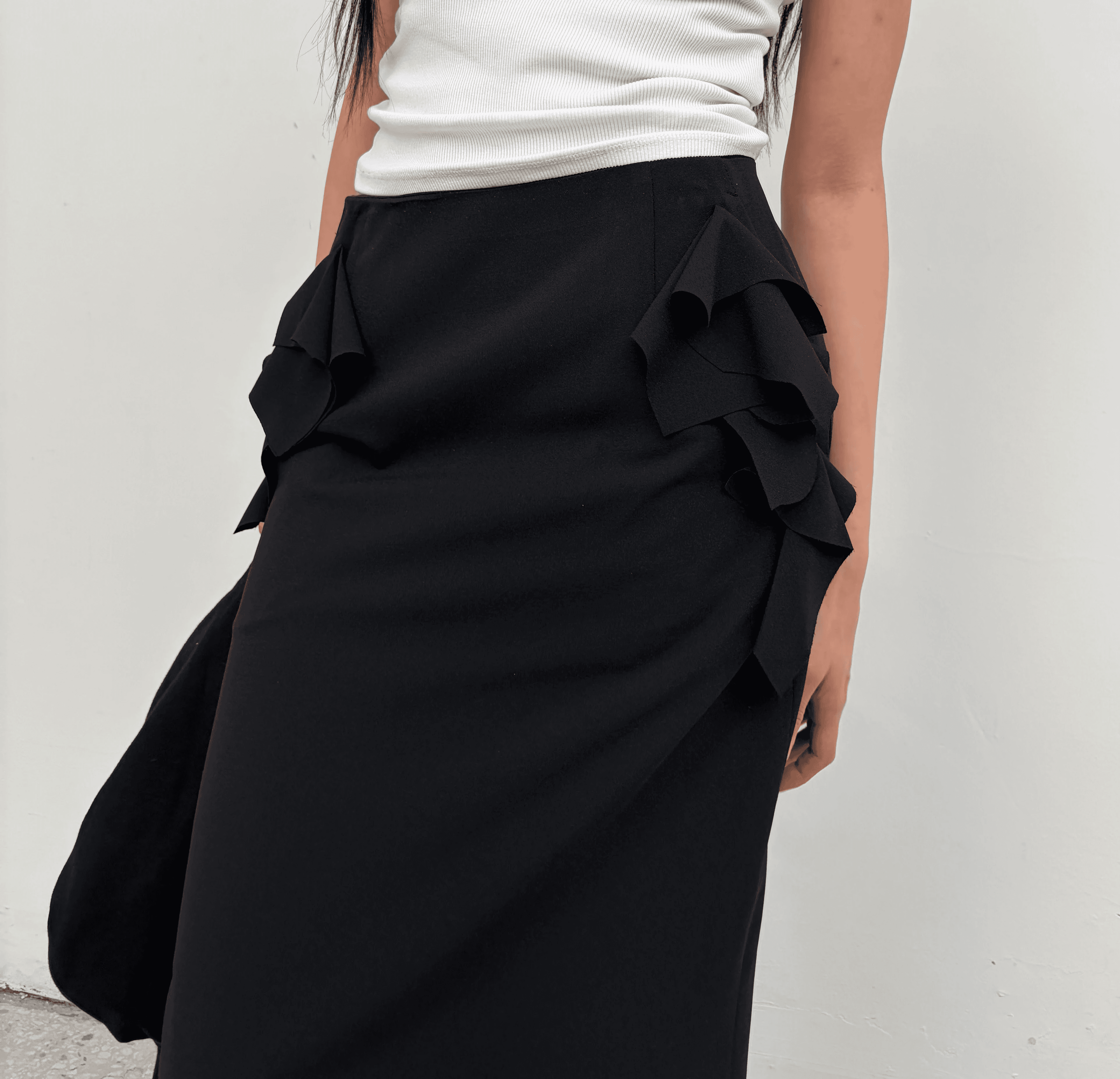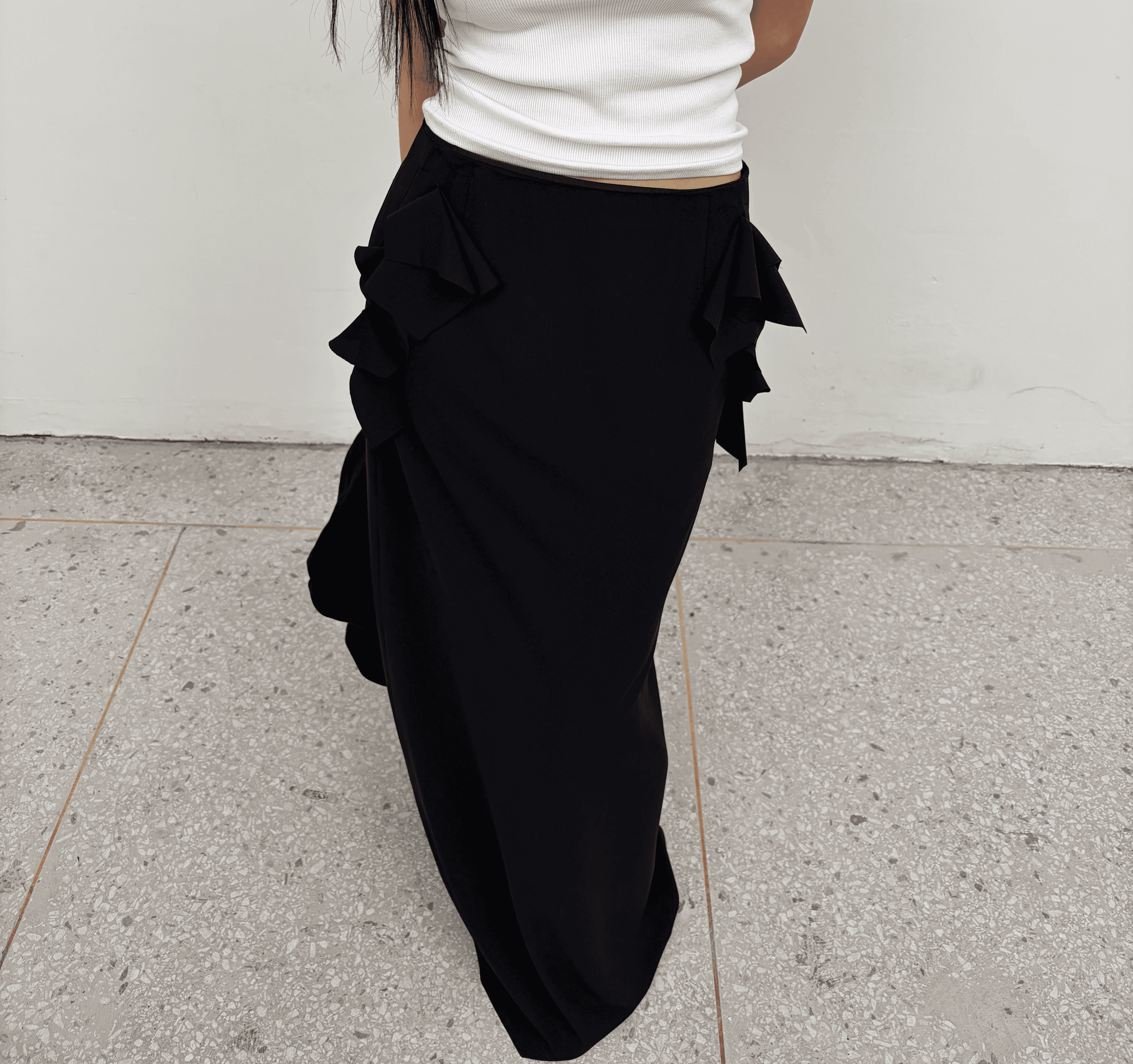 사이드에 패널 디테일이 포인트인 맥시 기장의 롱 커트입니다.