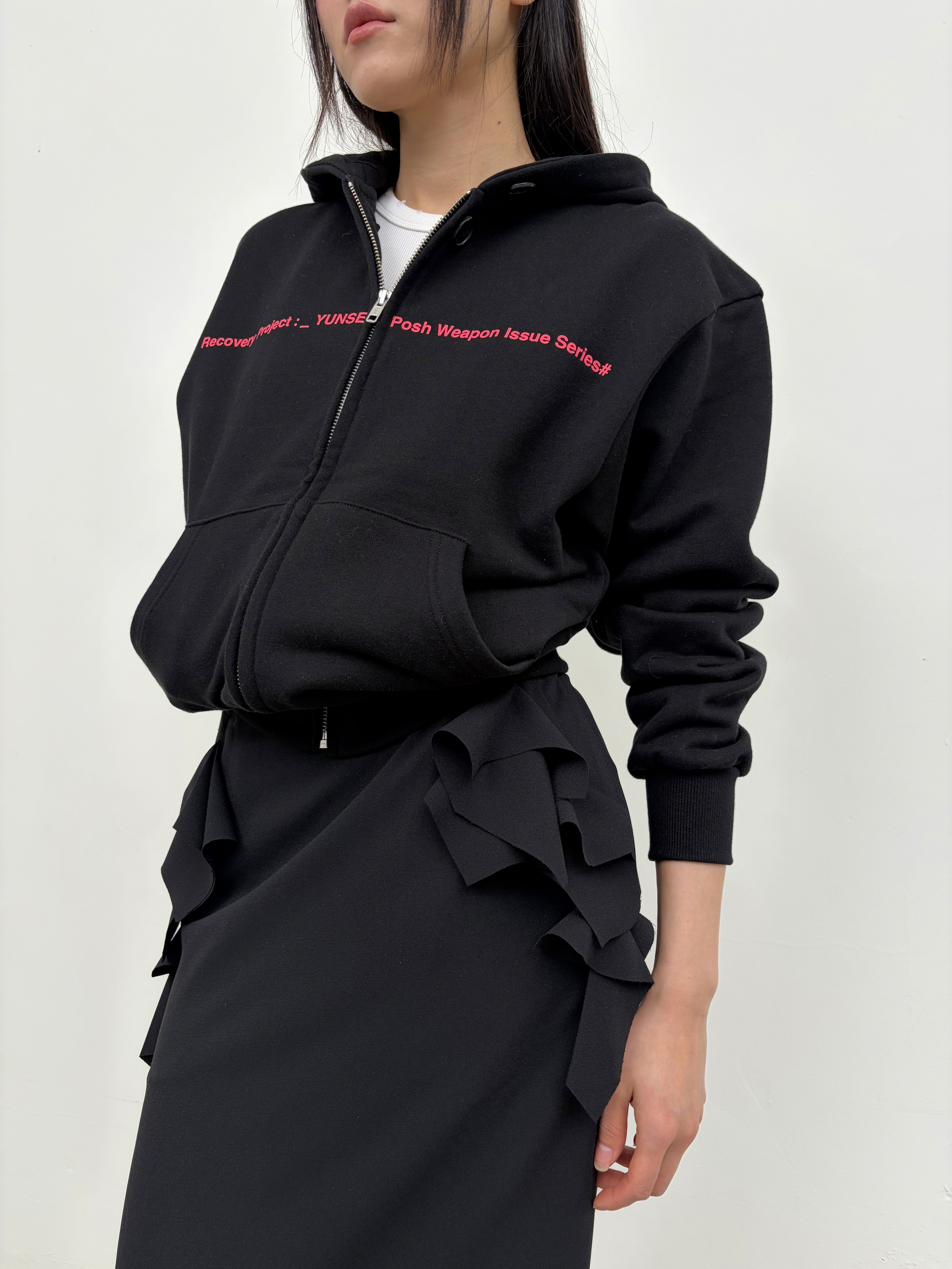 컬러마다 다른 포인트 컬러의 레터링이 포인트인 후드 집업입니다. 간절기에 추천하는 제품입니다.