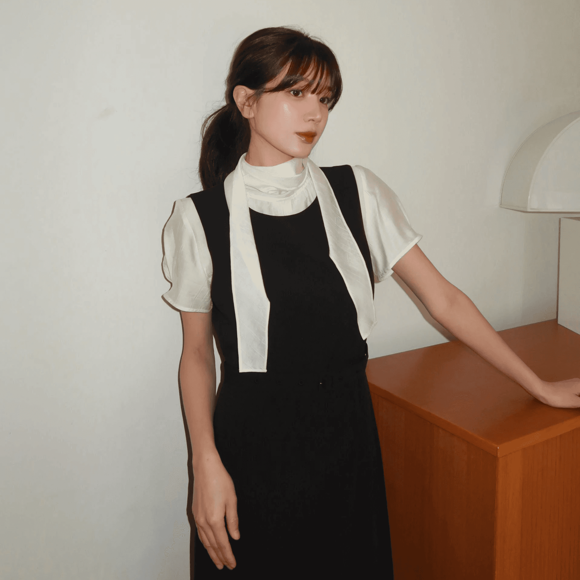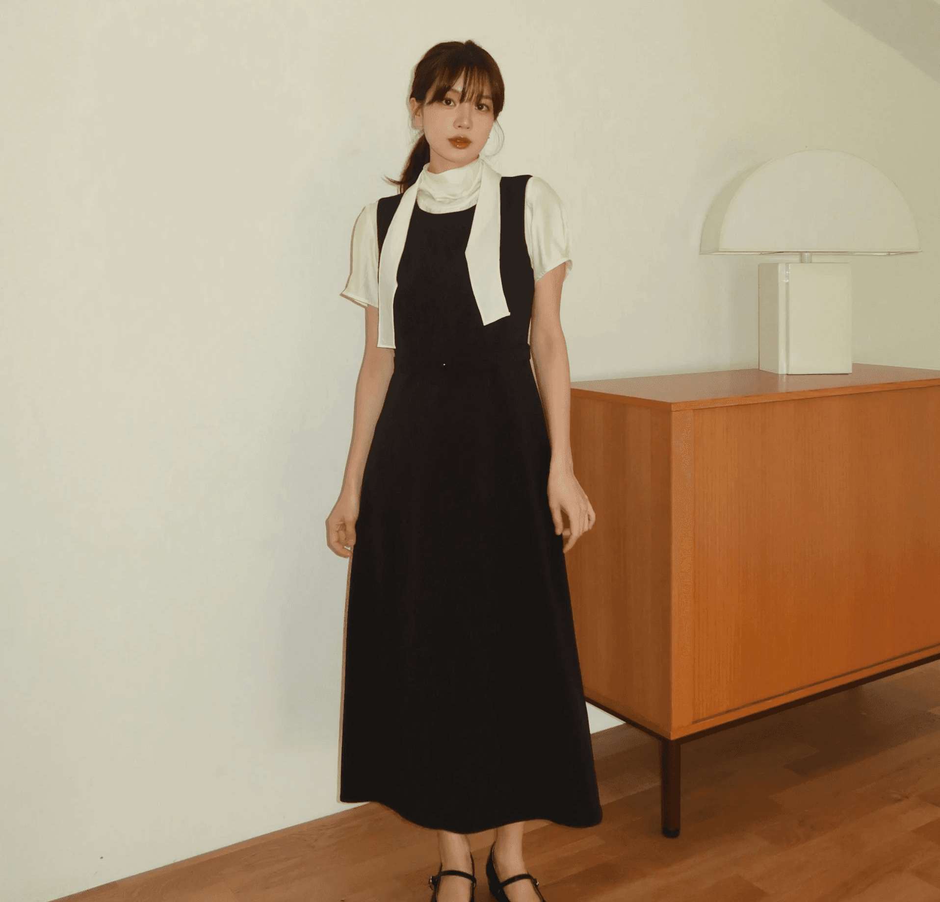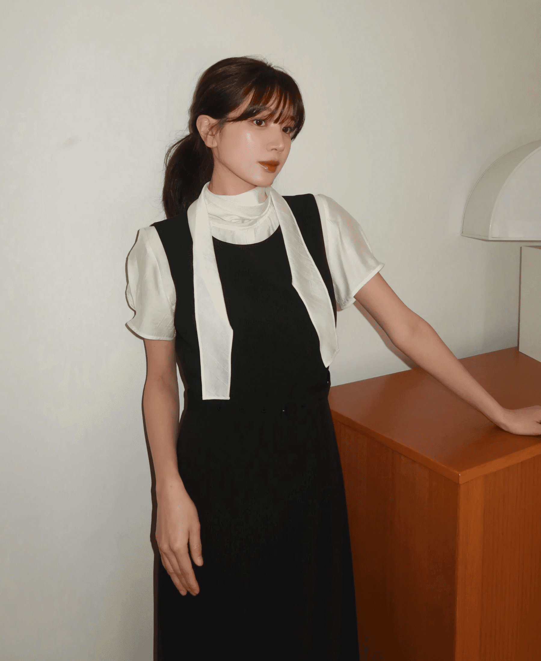 단정한 상견례 룩으로 추천하는 블라우스와 원피스. 벨트 디테일로 단정하고 깔끔한 스타일을 완성해보세요.