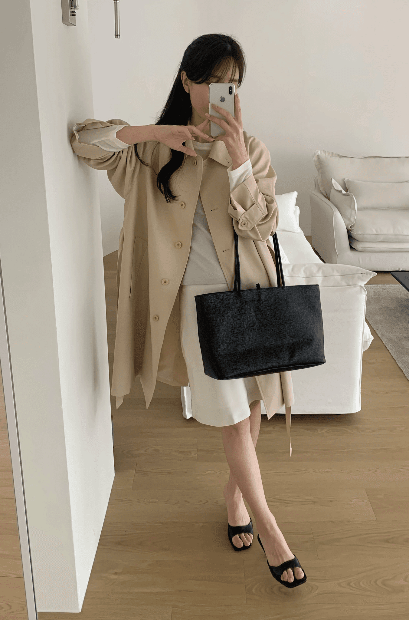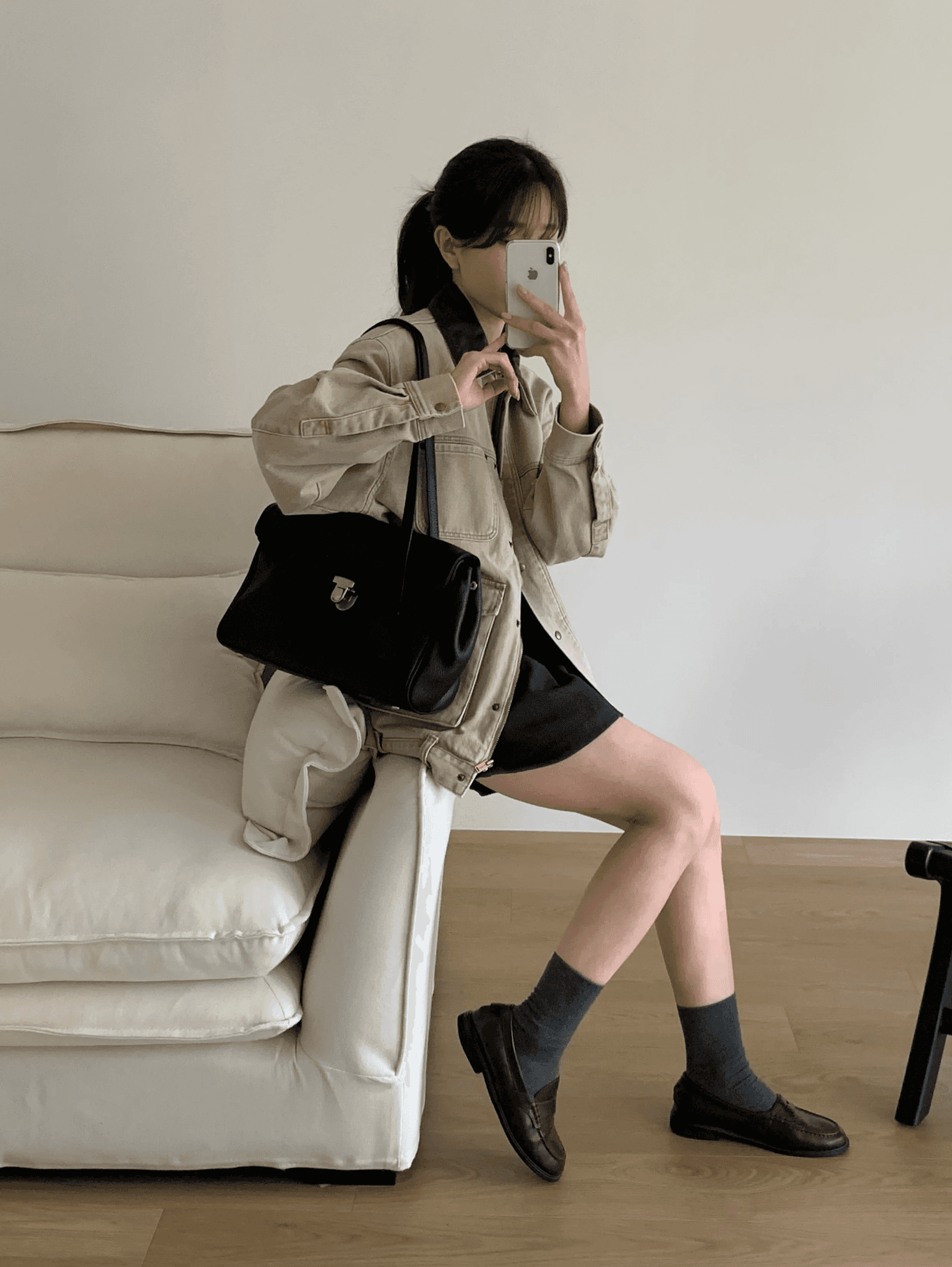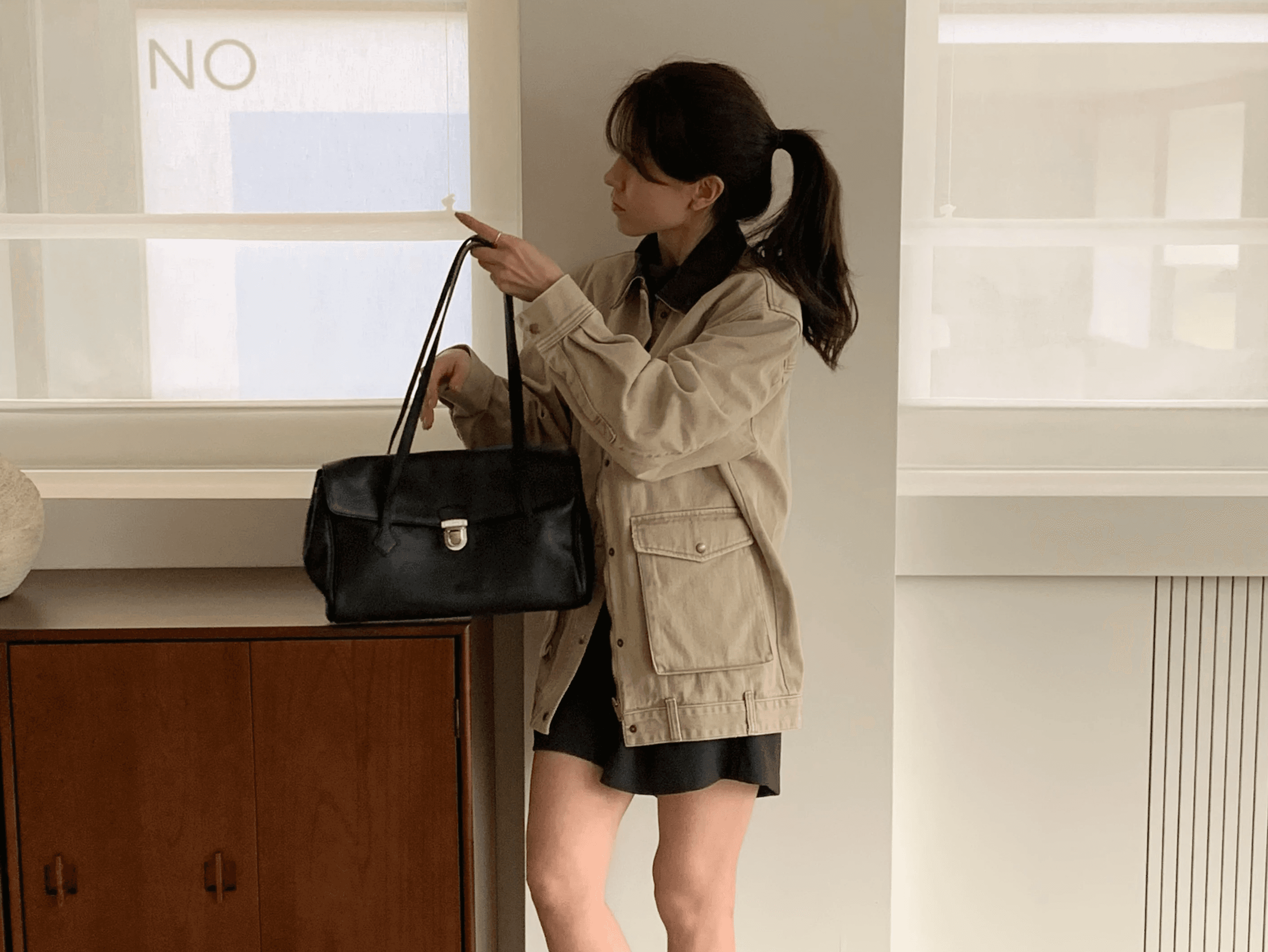 매일매일 사용하기 좋은 심플한 디자인과 수납력의 숄더백으로 일반 아이보리 컬러에 비해 그레이톤이 살짝 더해진 컬러감입니다.