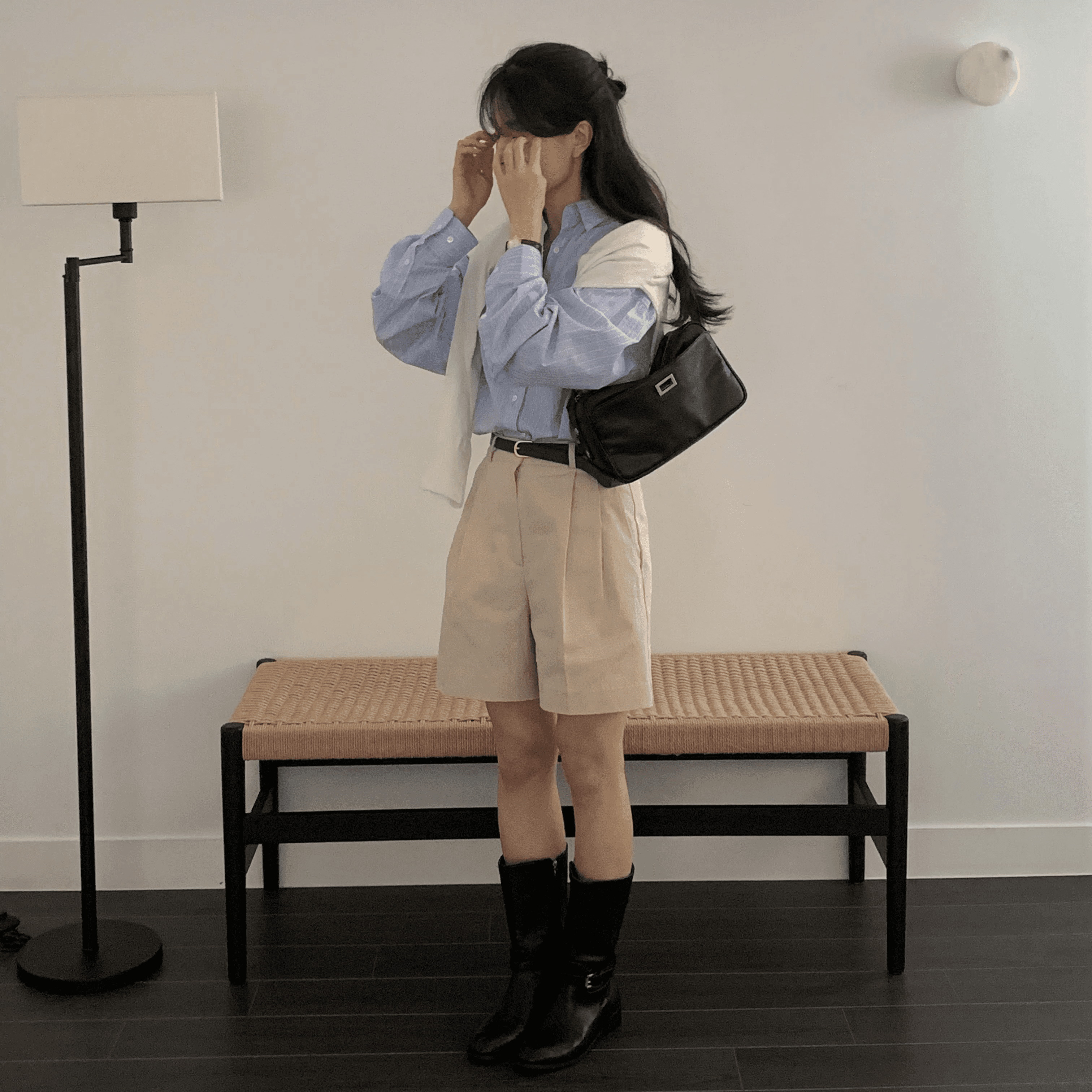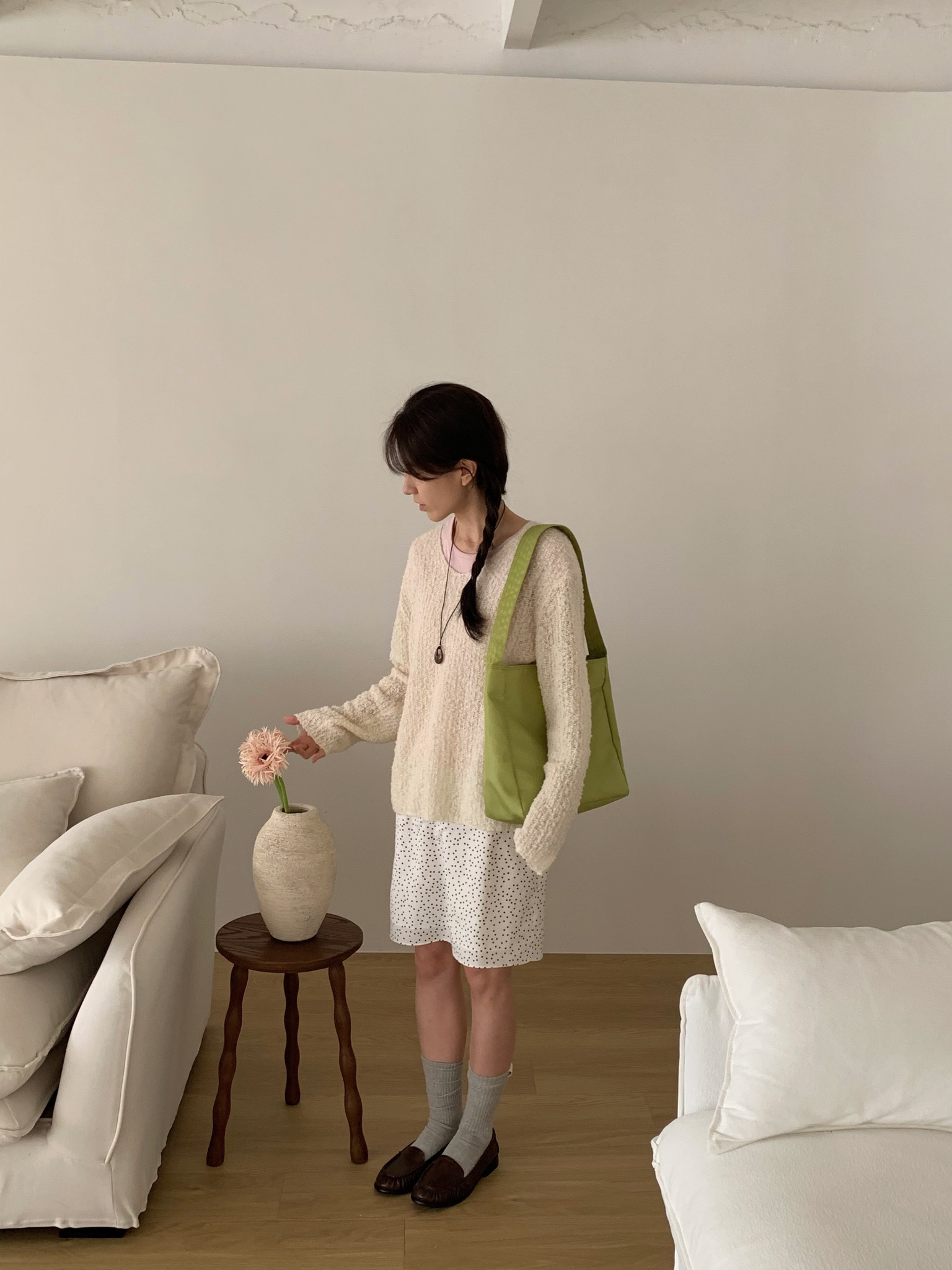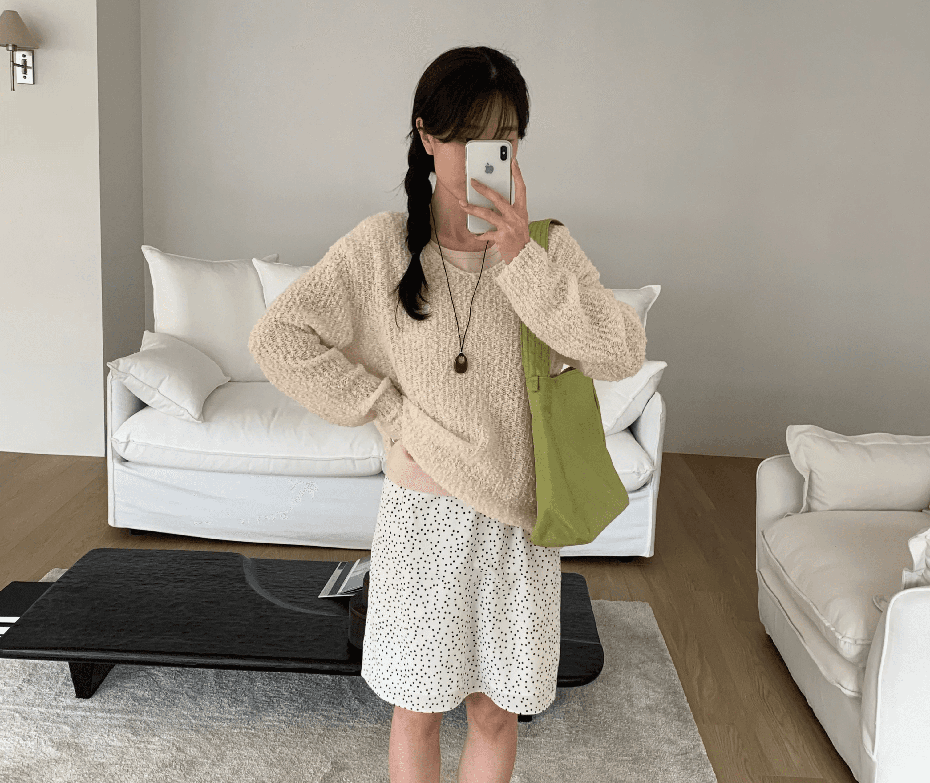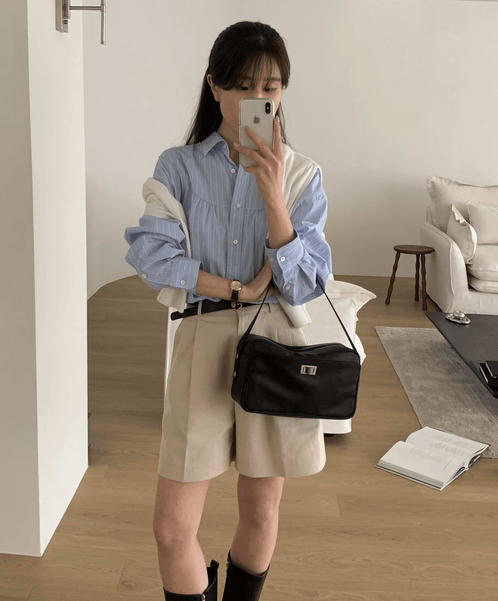 매일매일 사용하기 좋은 심플한 디자인과 수납력의 숄더백으로 일반 아이보리 컬러에 비해 그레이톤이 살짝 더해진 컬러감입니다.