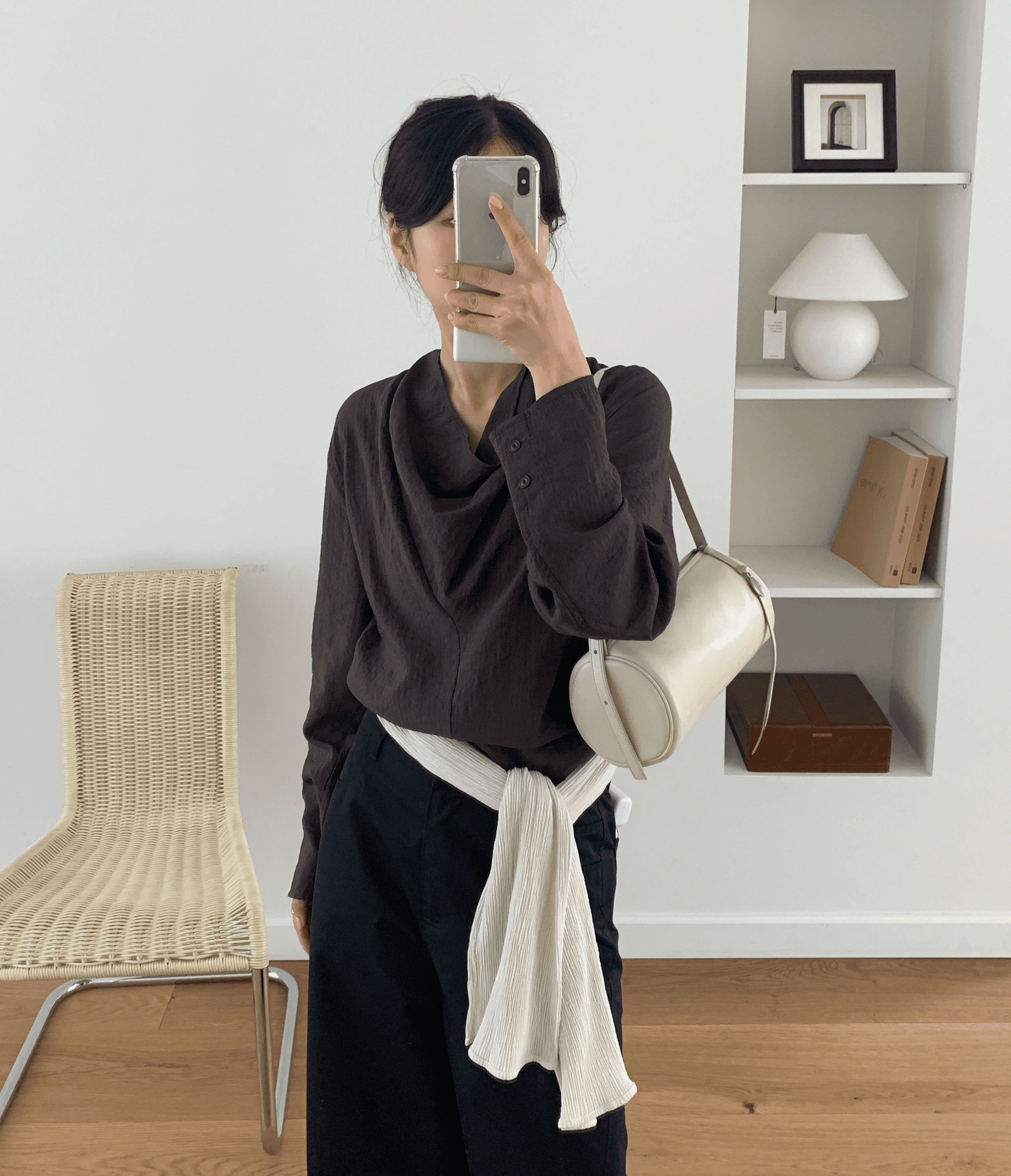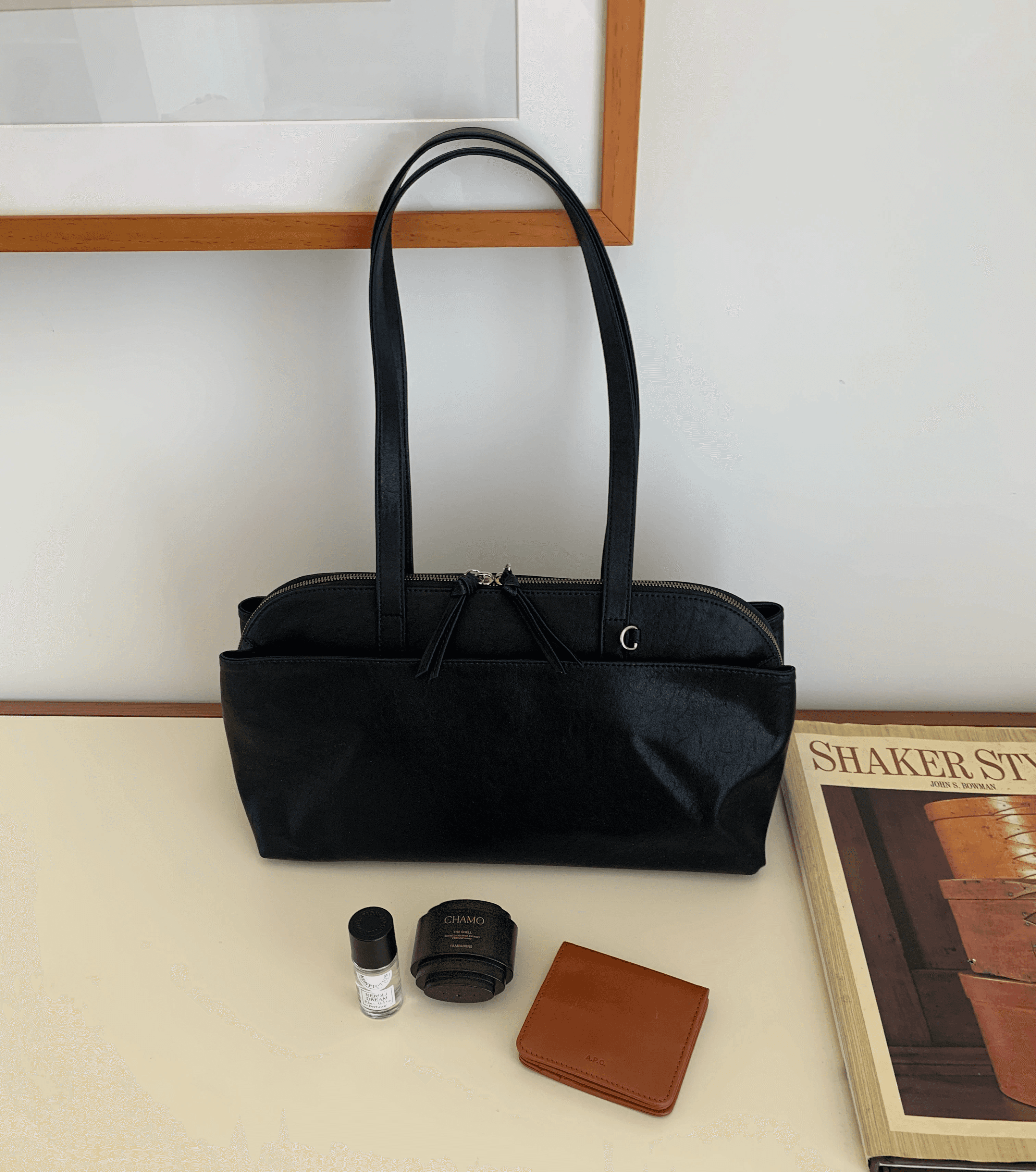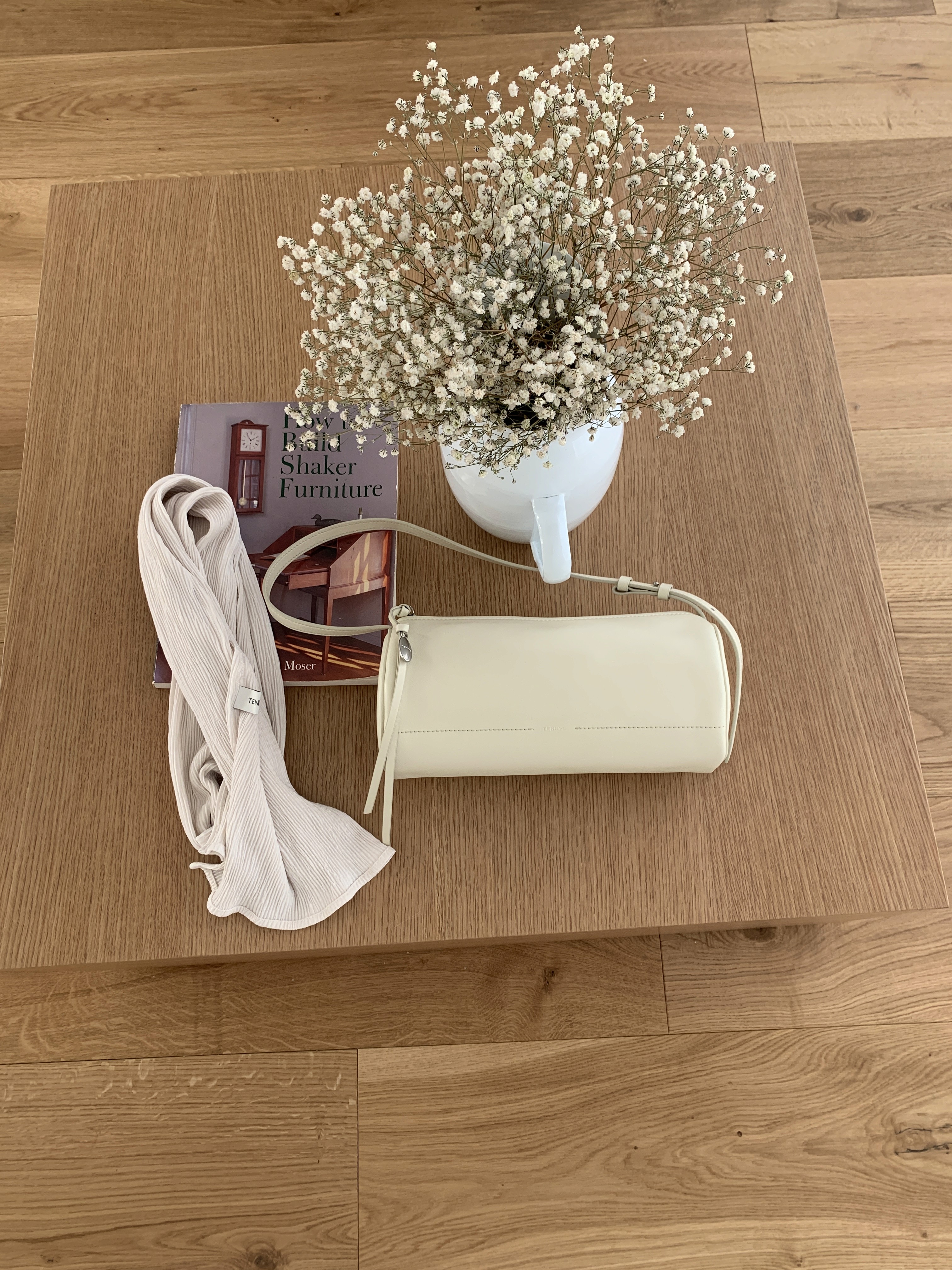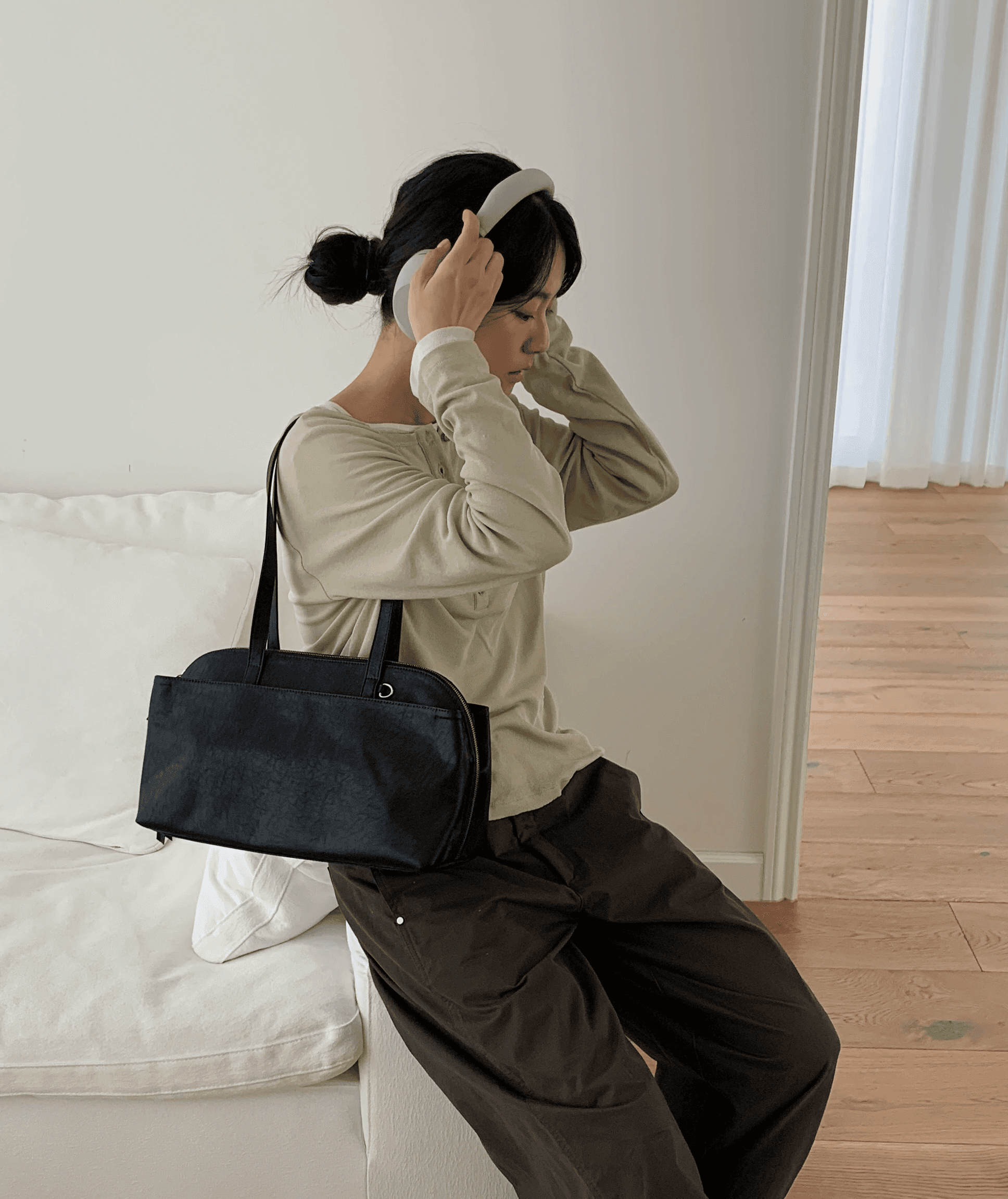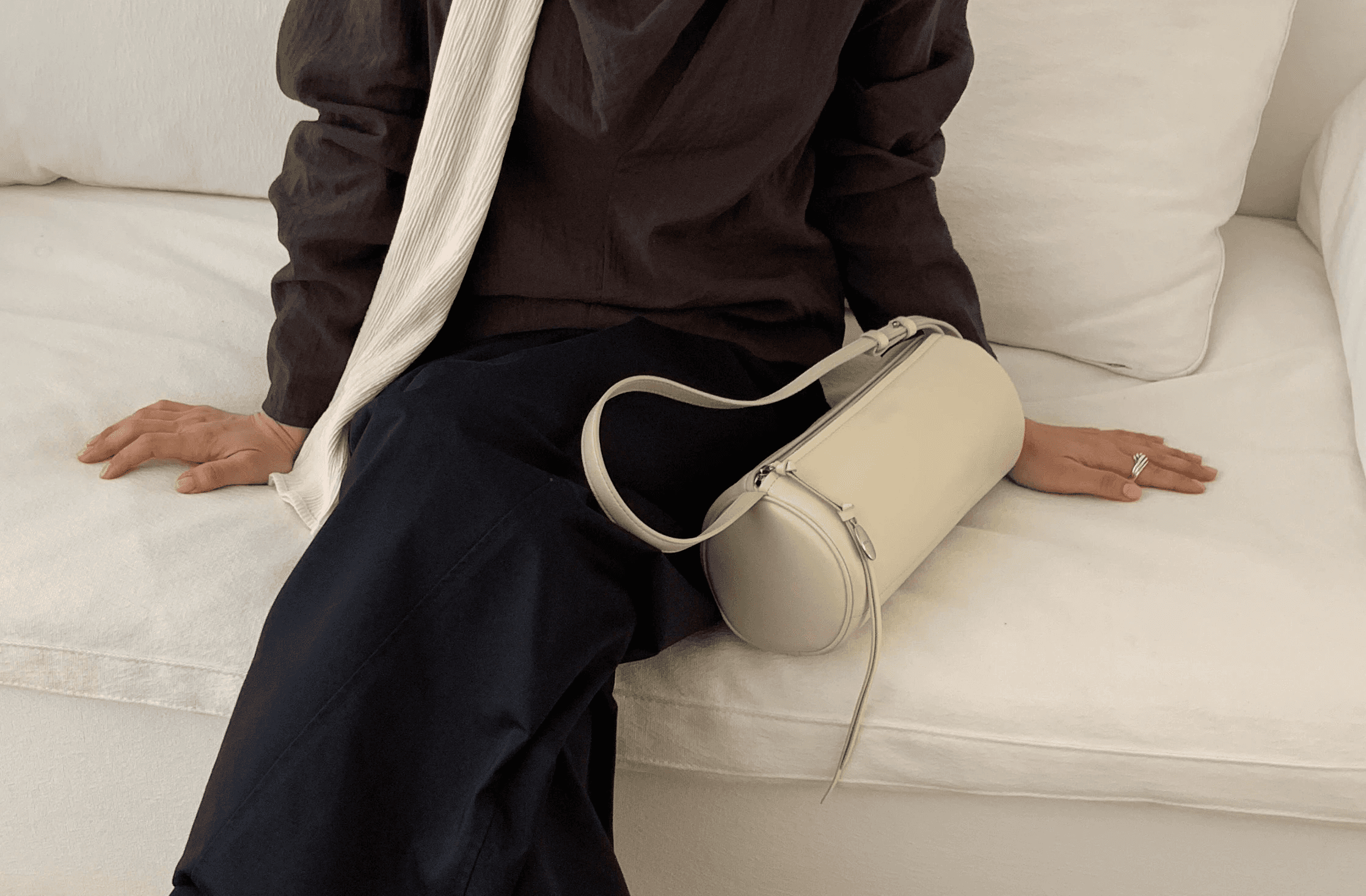 탐부 숄더백은 원통형 악기 북에서 영감을 받아, 미니멀한 바디에 조형적인 실루엣이 더해진 디자인이 특징입니다.