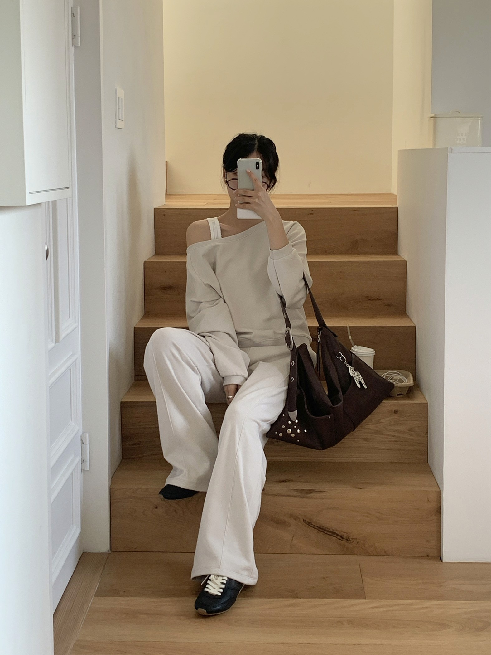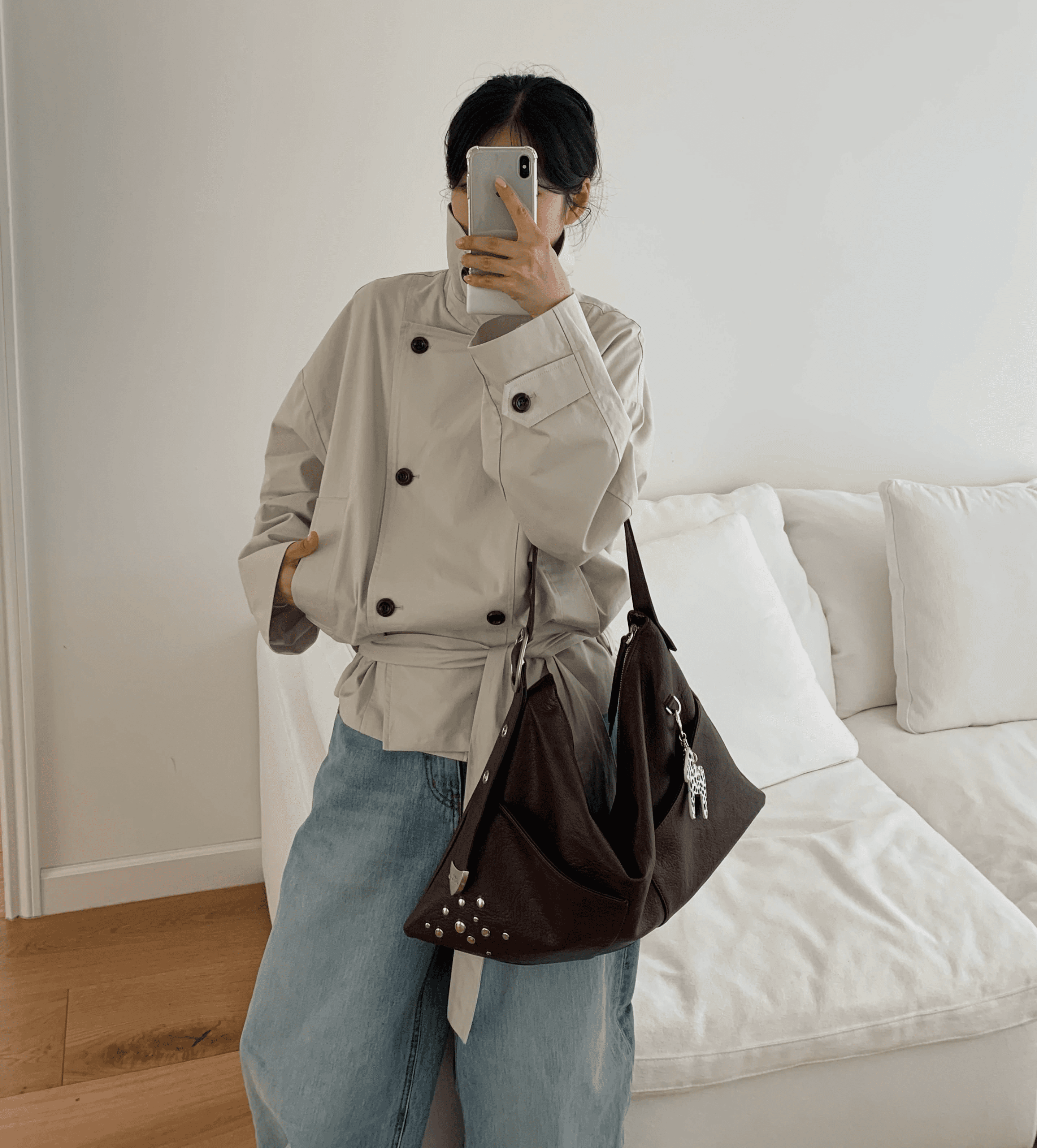 스트랩 끝 샌드뮤지엄의 시그니처 장시이 포인트인 호보 백입니다.