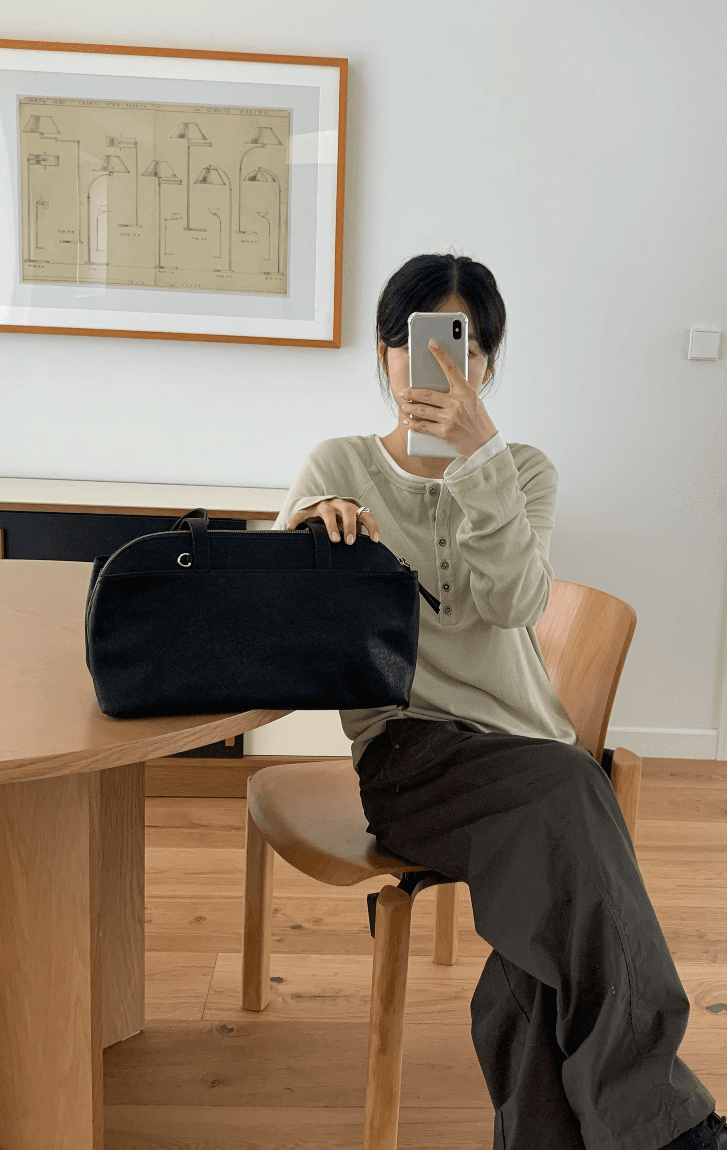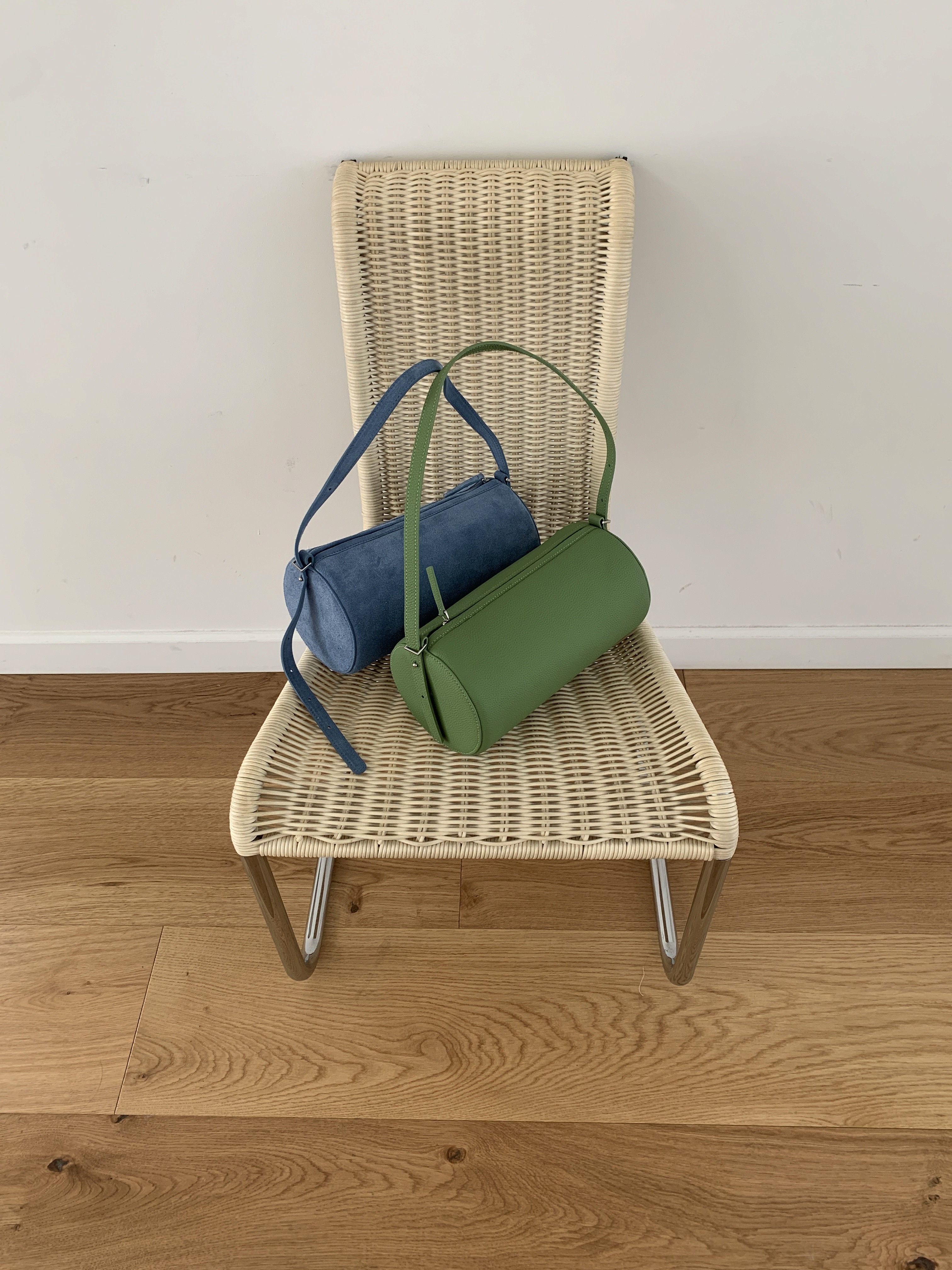 가장 간결한 원에서 시작된 실루엣과 원기둥 형태의 바디감으로 제작된 가방입니다.