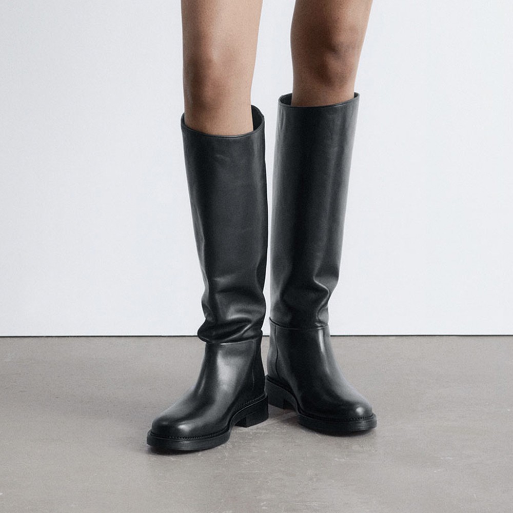 앤아더스토리즈의 레더 부츠로 완성하는 겨울 스타일. 무릎까지 올라오는 길이감으로 시선을 사로잡는 시크한 매력이 돋보여요