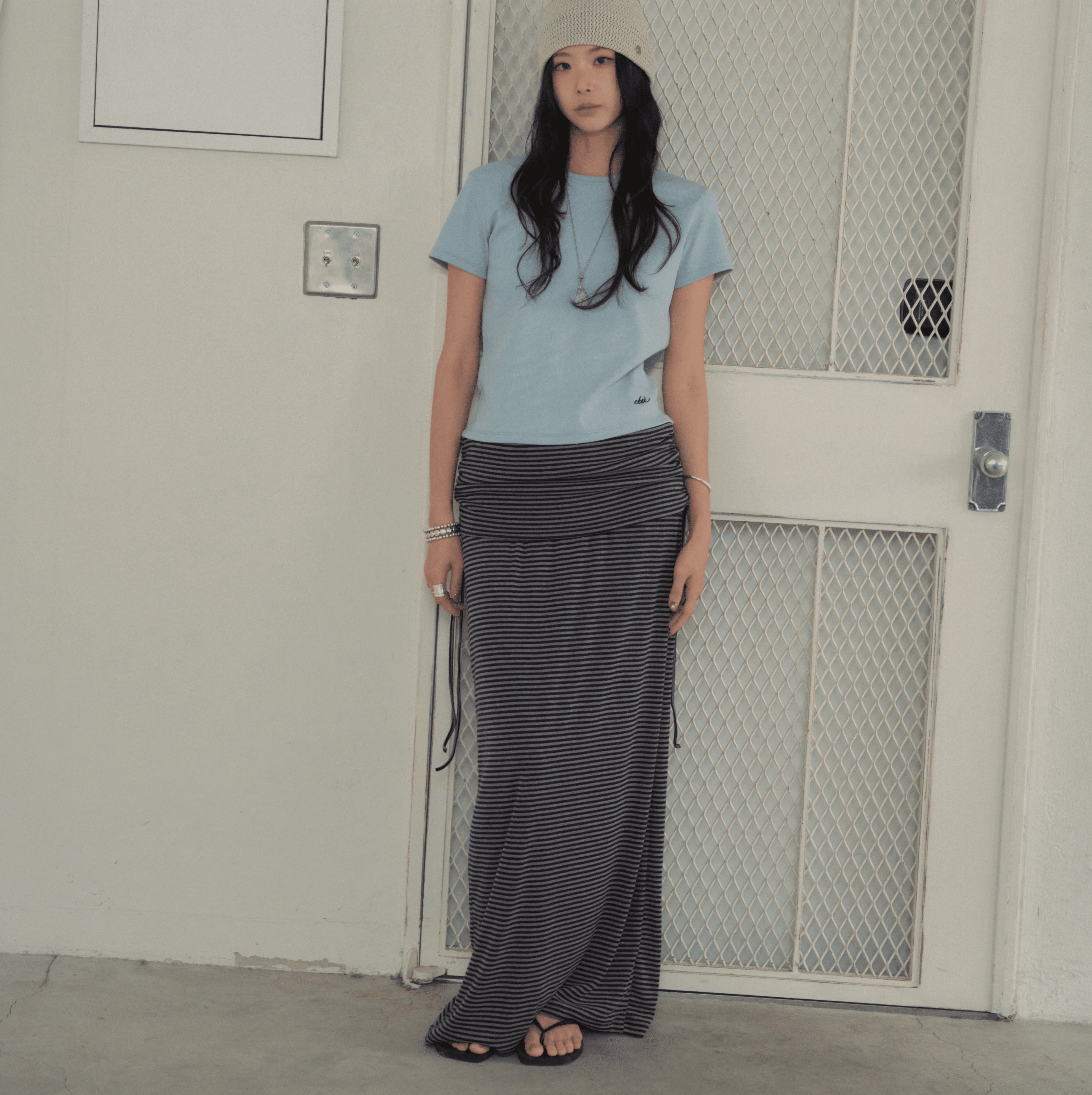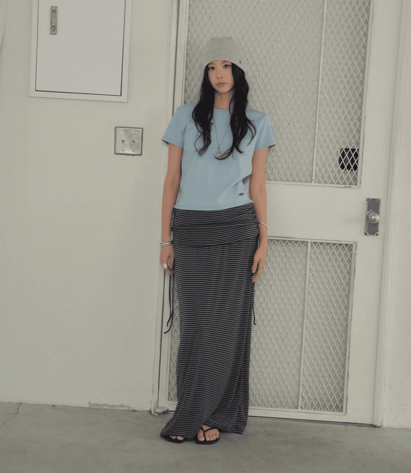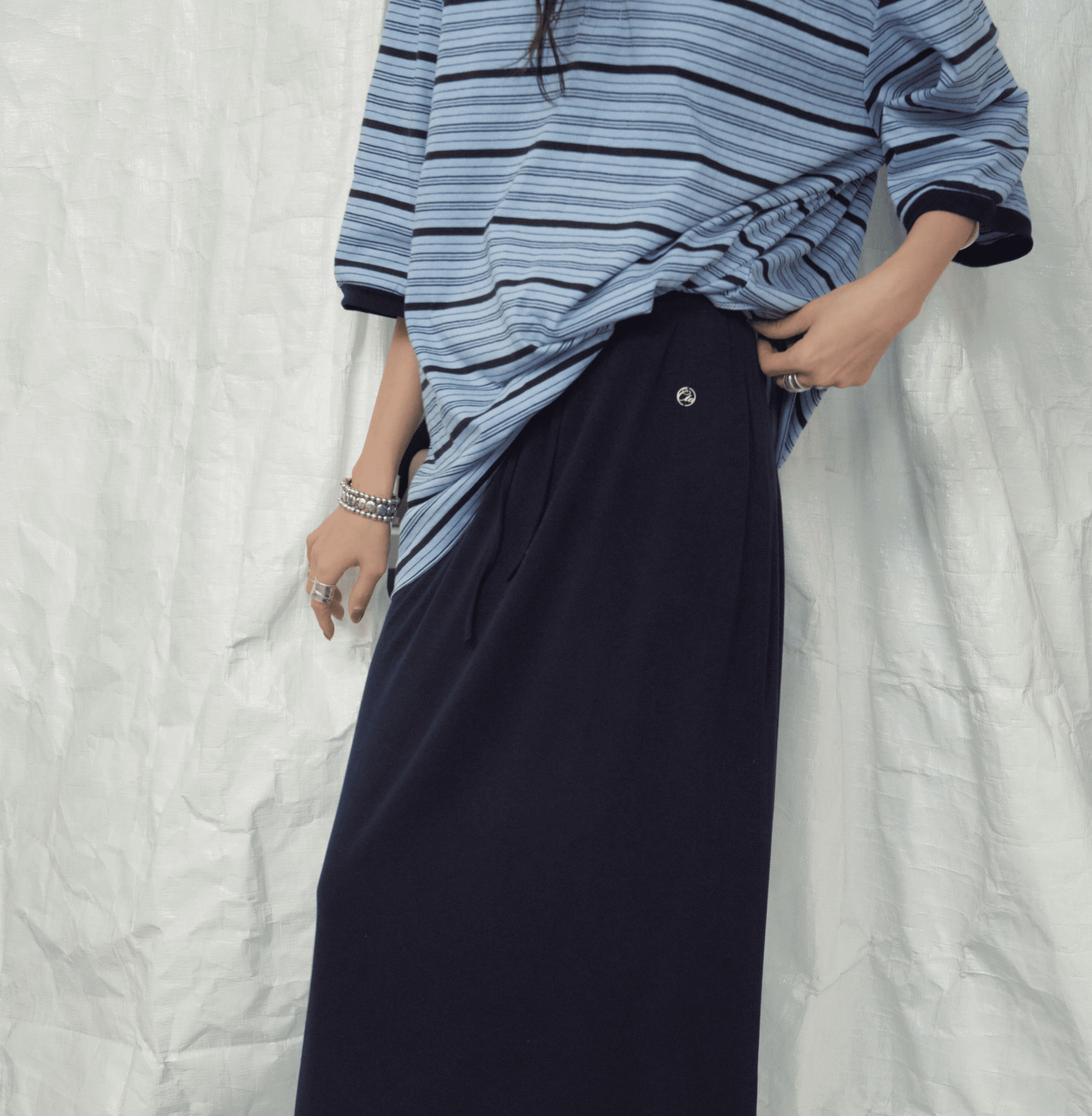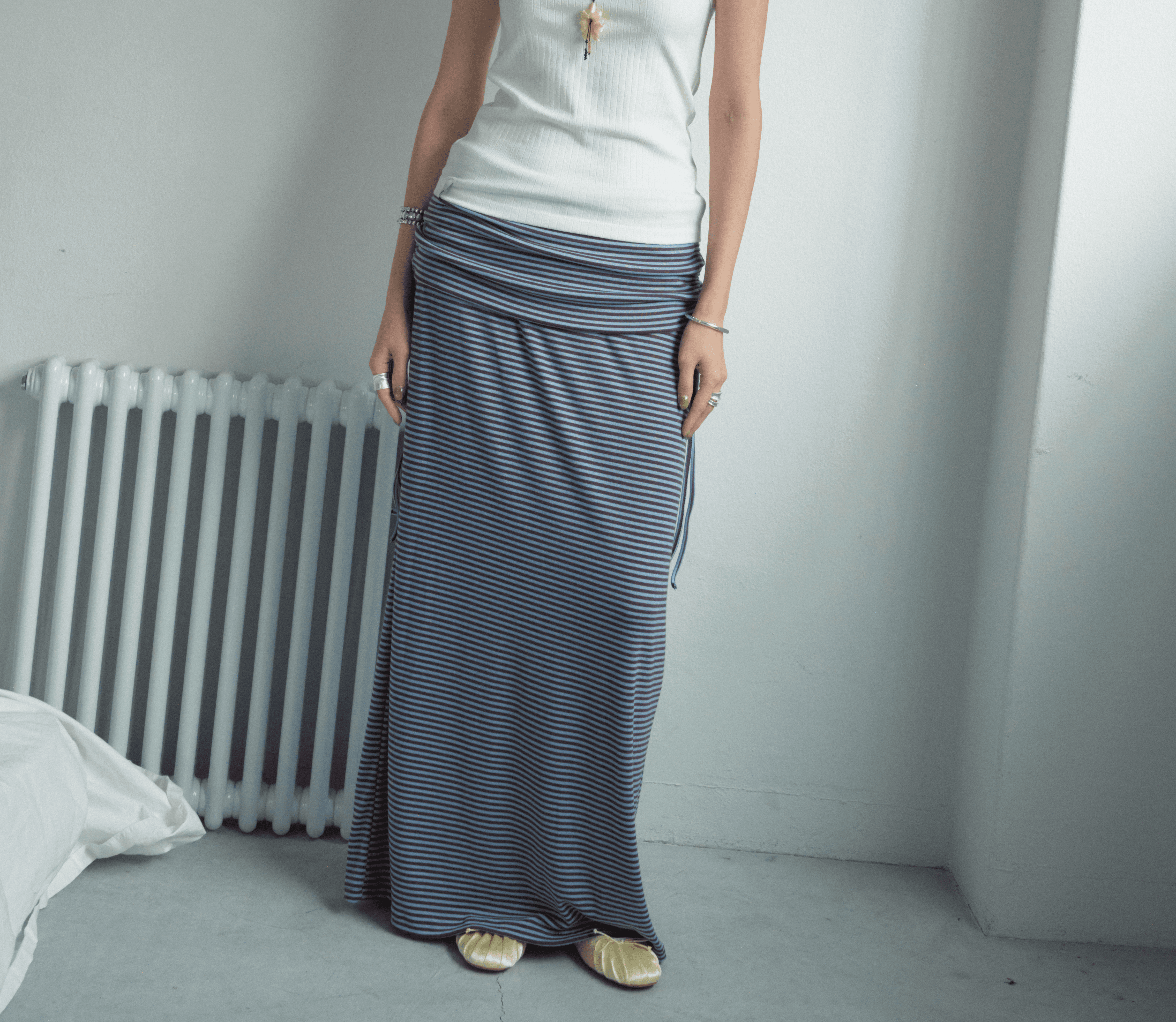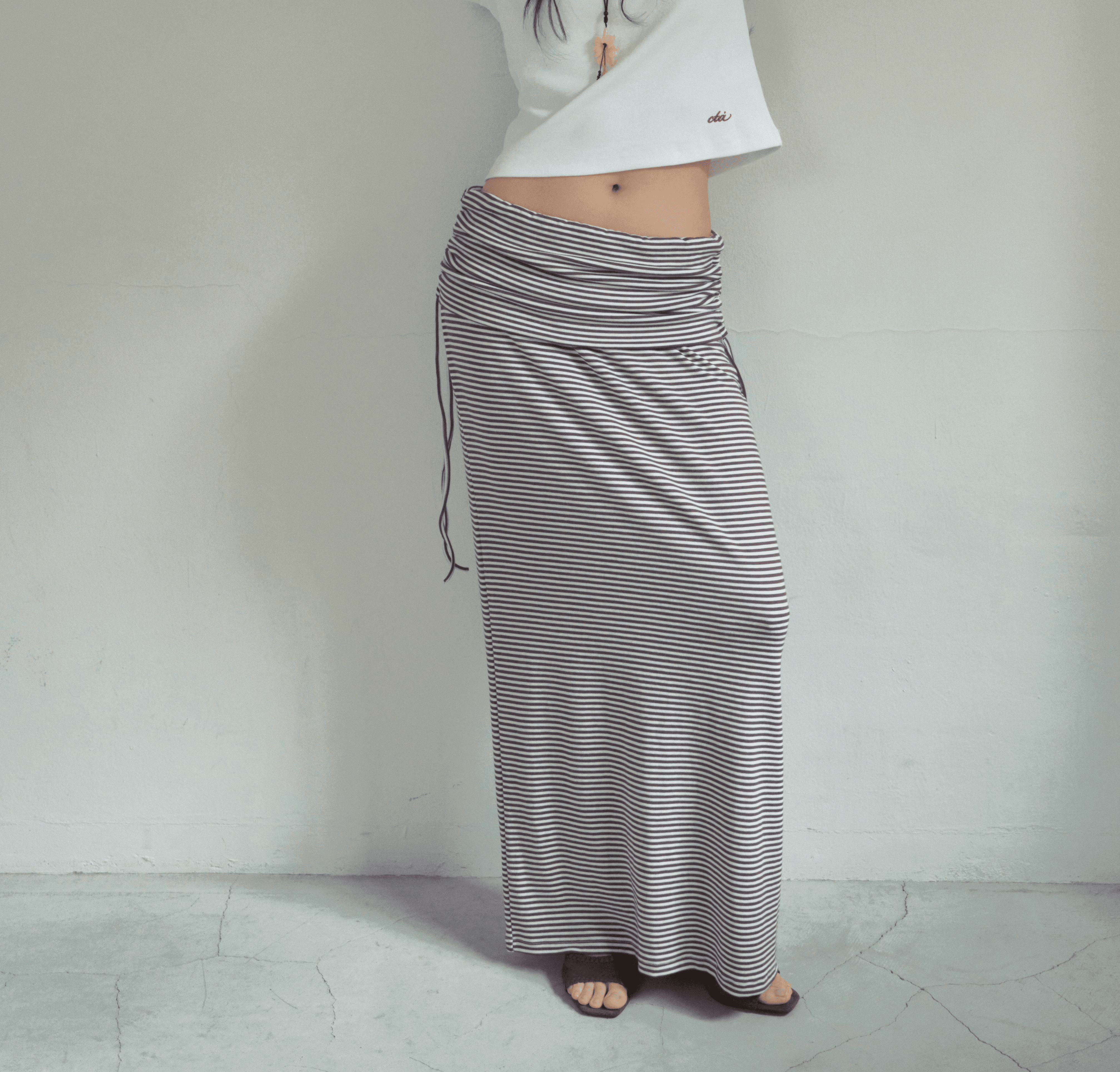 씨타 베스트 스커트의 스트라이프 버전입니다. 감각적인 컬러 배색이 포인트가 되어주며, 입는 것만으로도 룩에 경쾌한 매력을 더해줍니다.