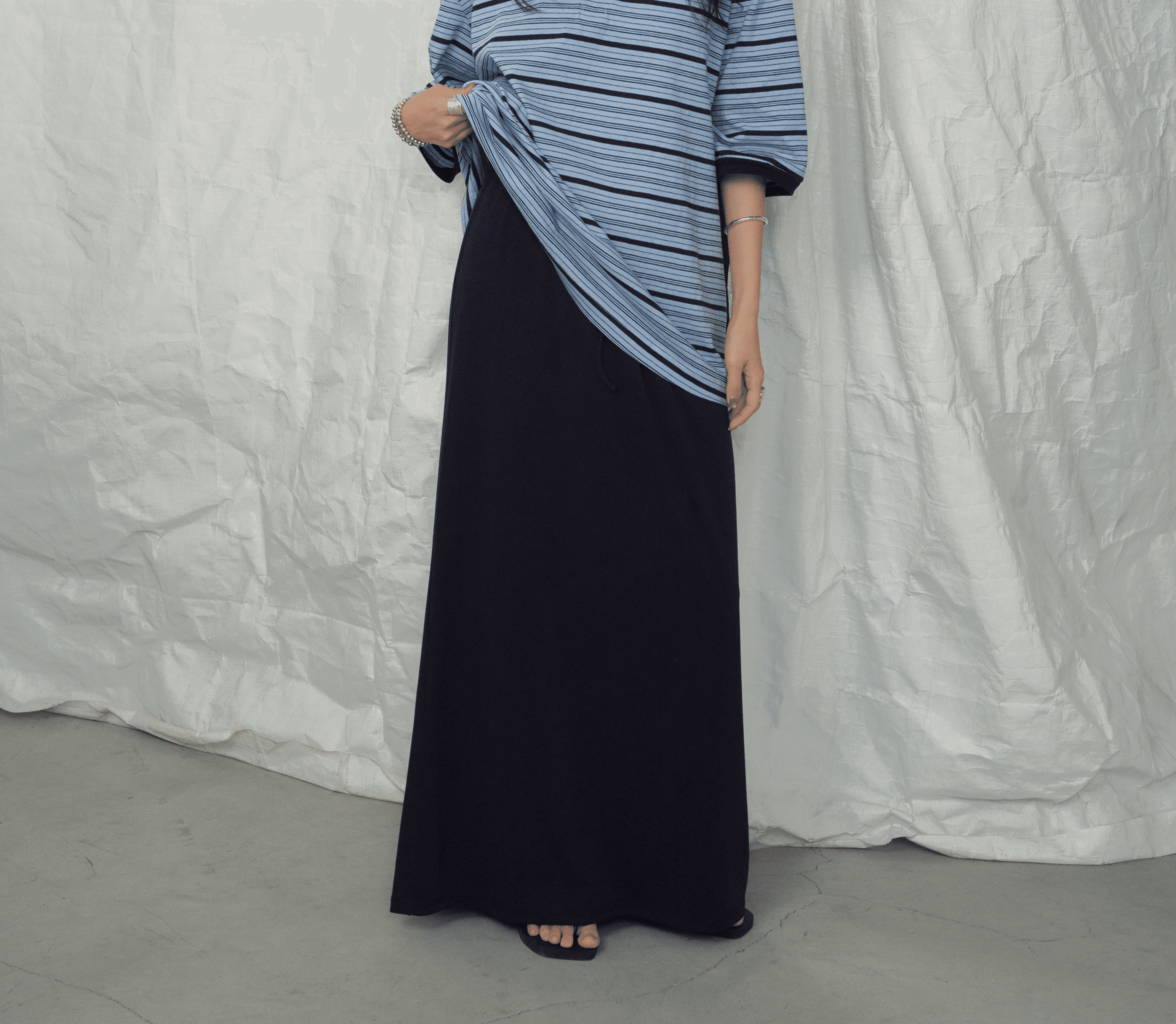 신축성 있는 부드러운 소재로 제작되어, 흐르는 듯한 실루엣과 편안함을 동시에 느낄 수 있습니다.