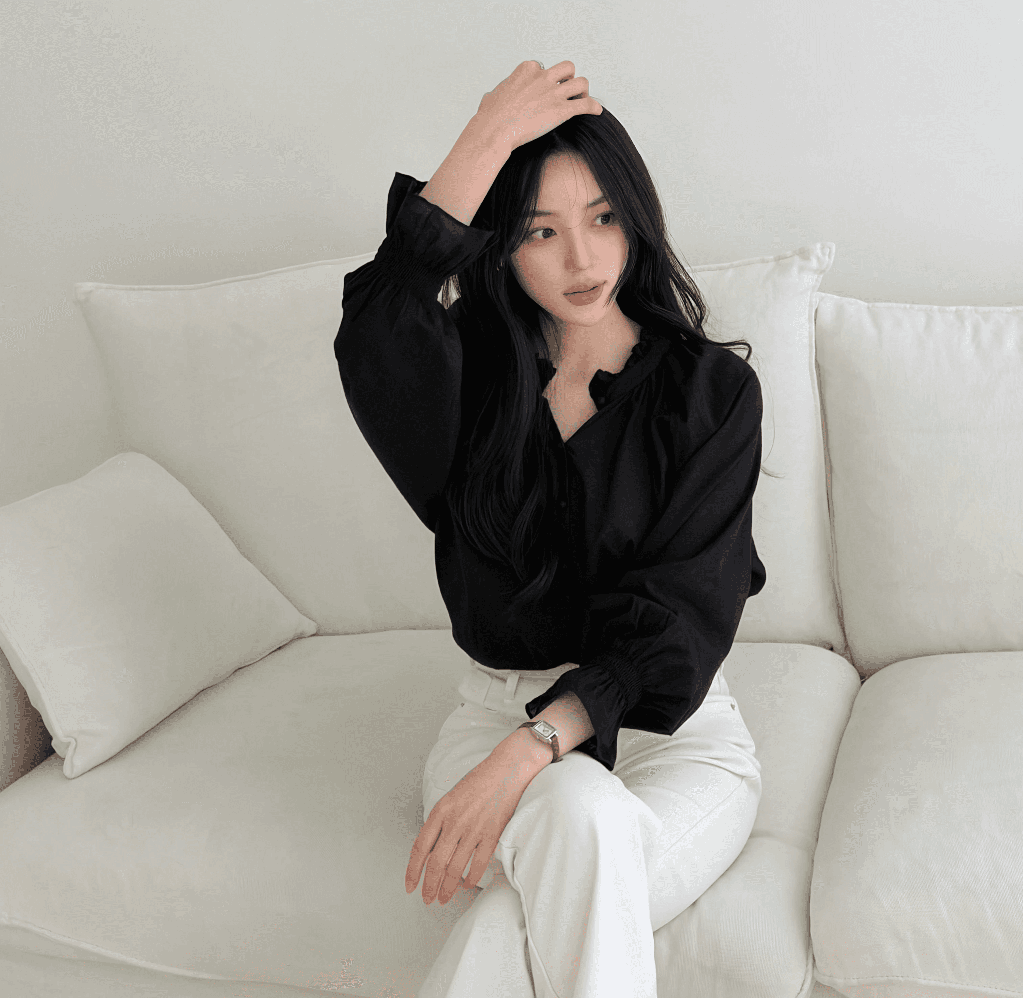 모멧의 시그니처 블라우스로 리뷰가 인증한 제품입니다. 섬세한 셔링과 퍼프 디테일이 여성스러우면서 러블리한 무드로 착용이 가능합니다. 가벼운 소재감으로 한여름까지 추천합니다.