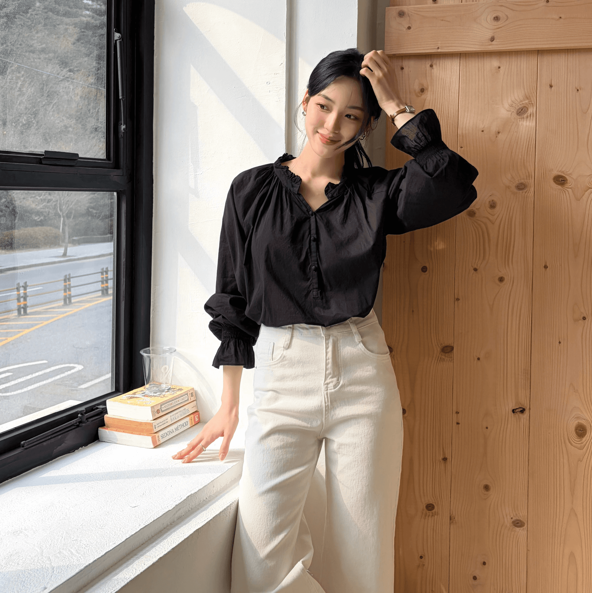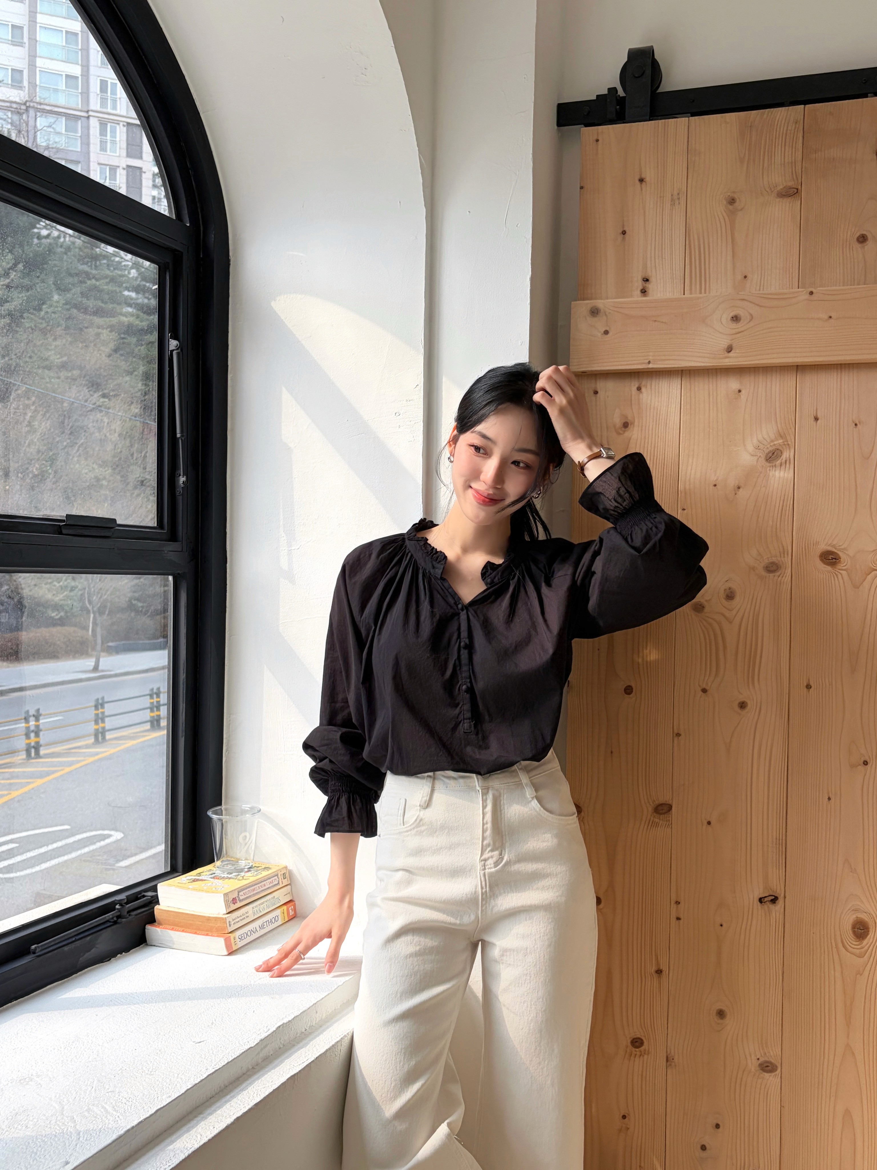 허밍 셔링 블라우스