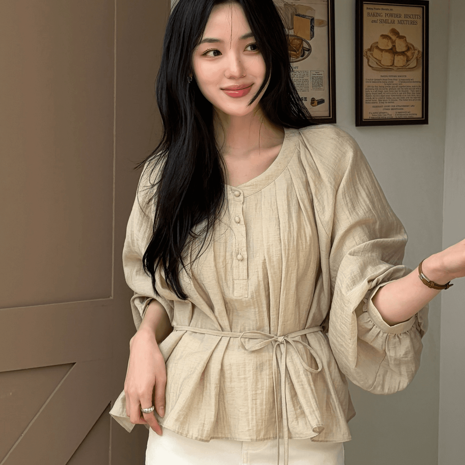 26 SPRING 신상으로 출시되자마자 베스트 상품에 오른 블라우스입니다. 은은한 조직감이 느껴지는 린넨 혼방 소재로 내추럴하면서 고급스러운 분위기를 더하고, 여유로운 실루엣이 편안한 착용감을 전합니다.