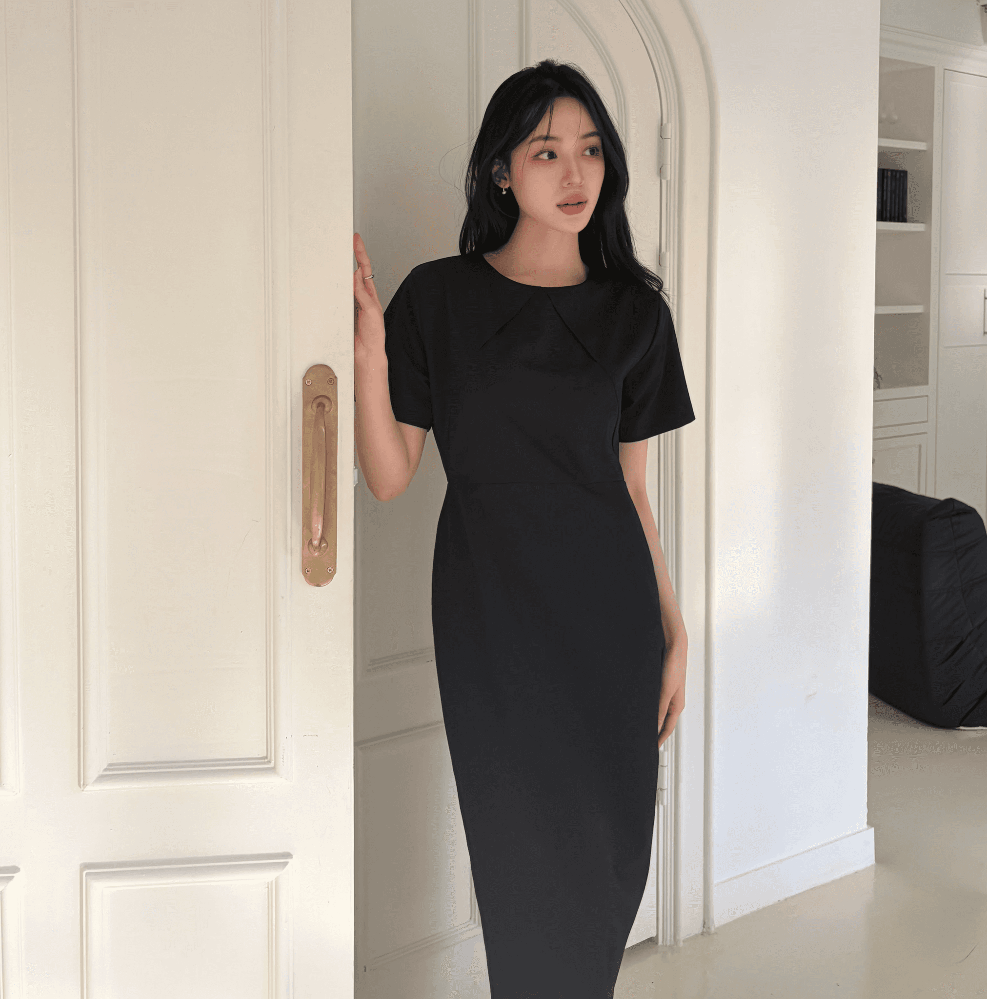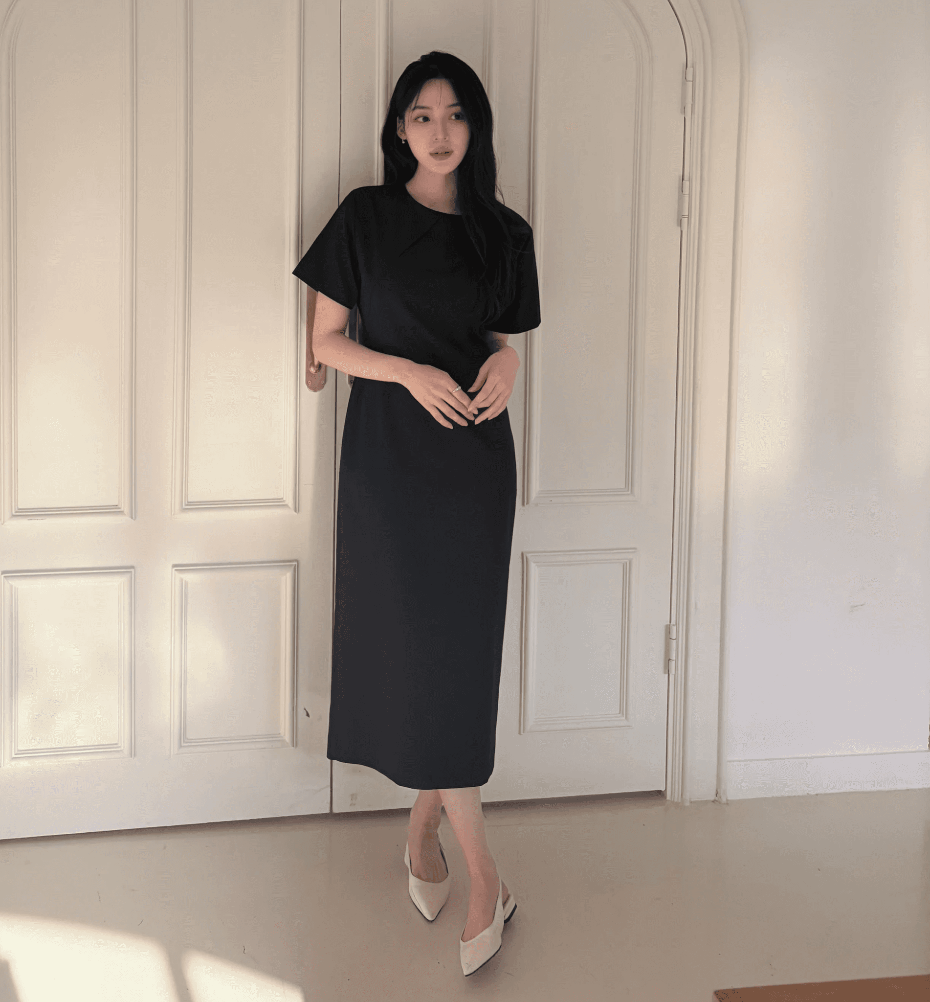 패턴과 절개만으로 실루엣을 완성시켜 미니멀하면서도 고급스러운 원피스입니다. 적당히 감싸는 바디라인으로 체형커버가 가능하며 클래식하고 포멀한 무드를 강조했습니다.