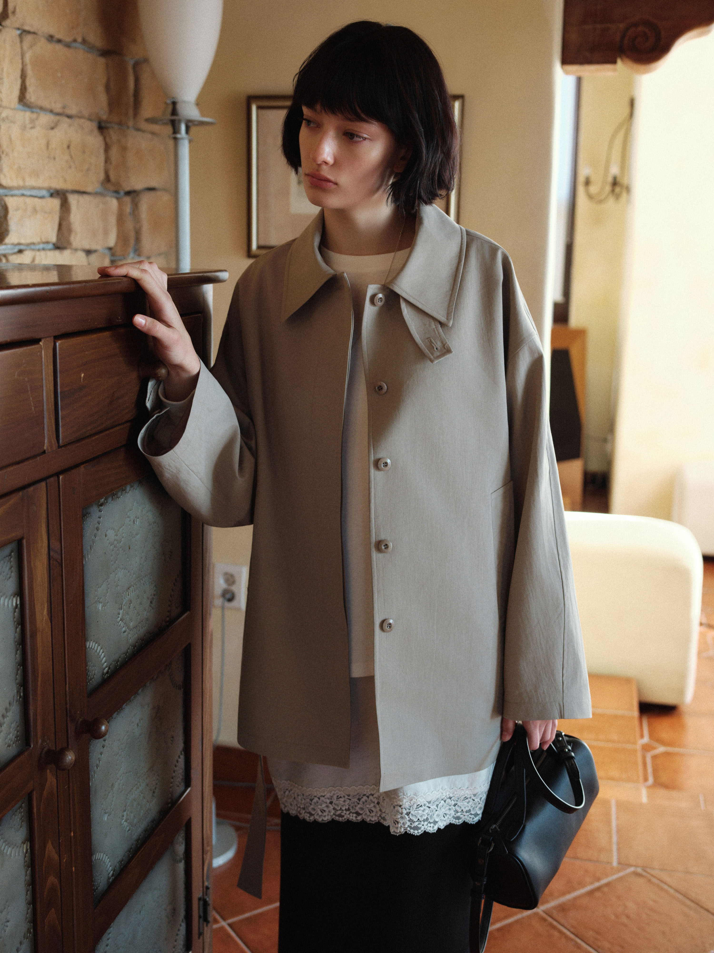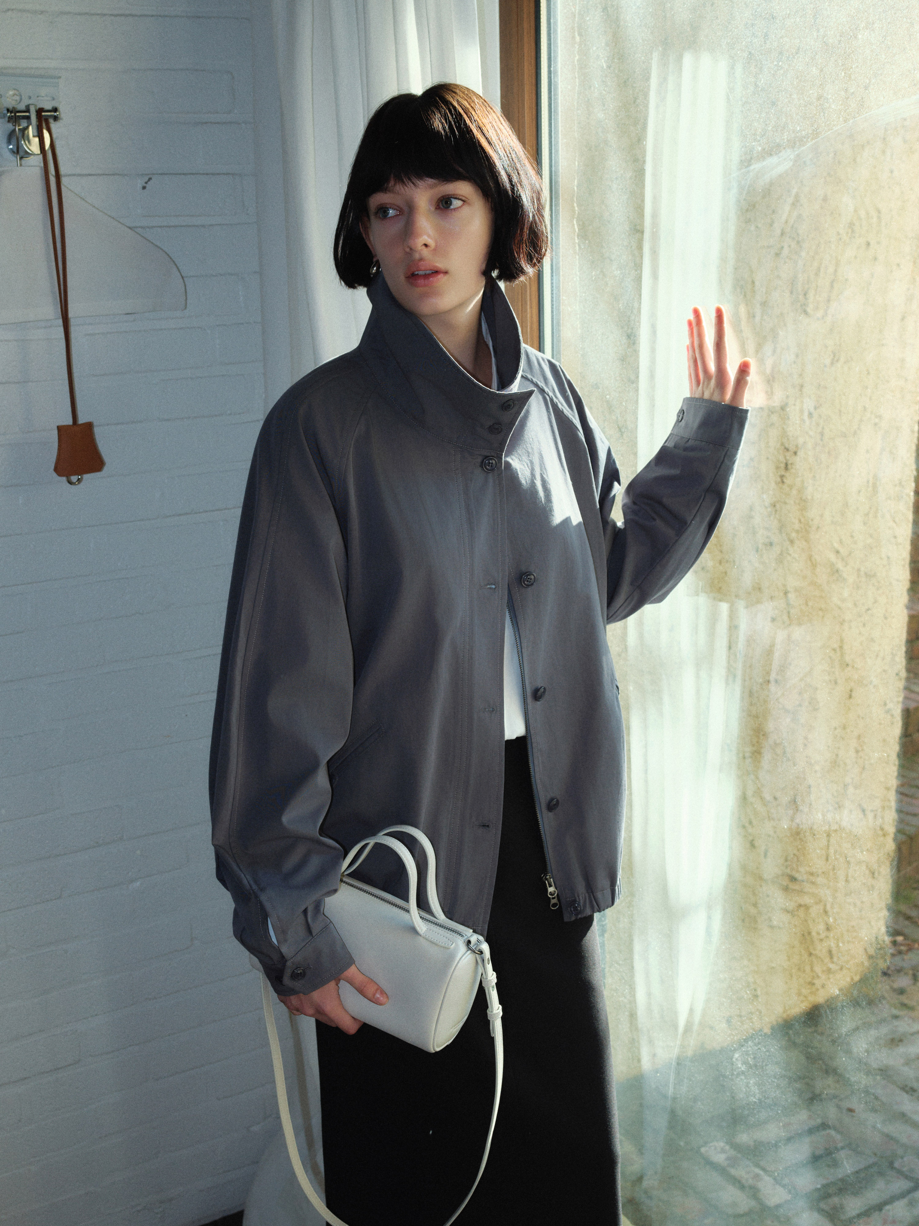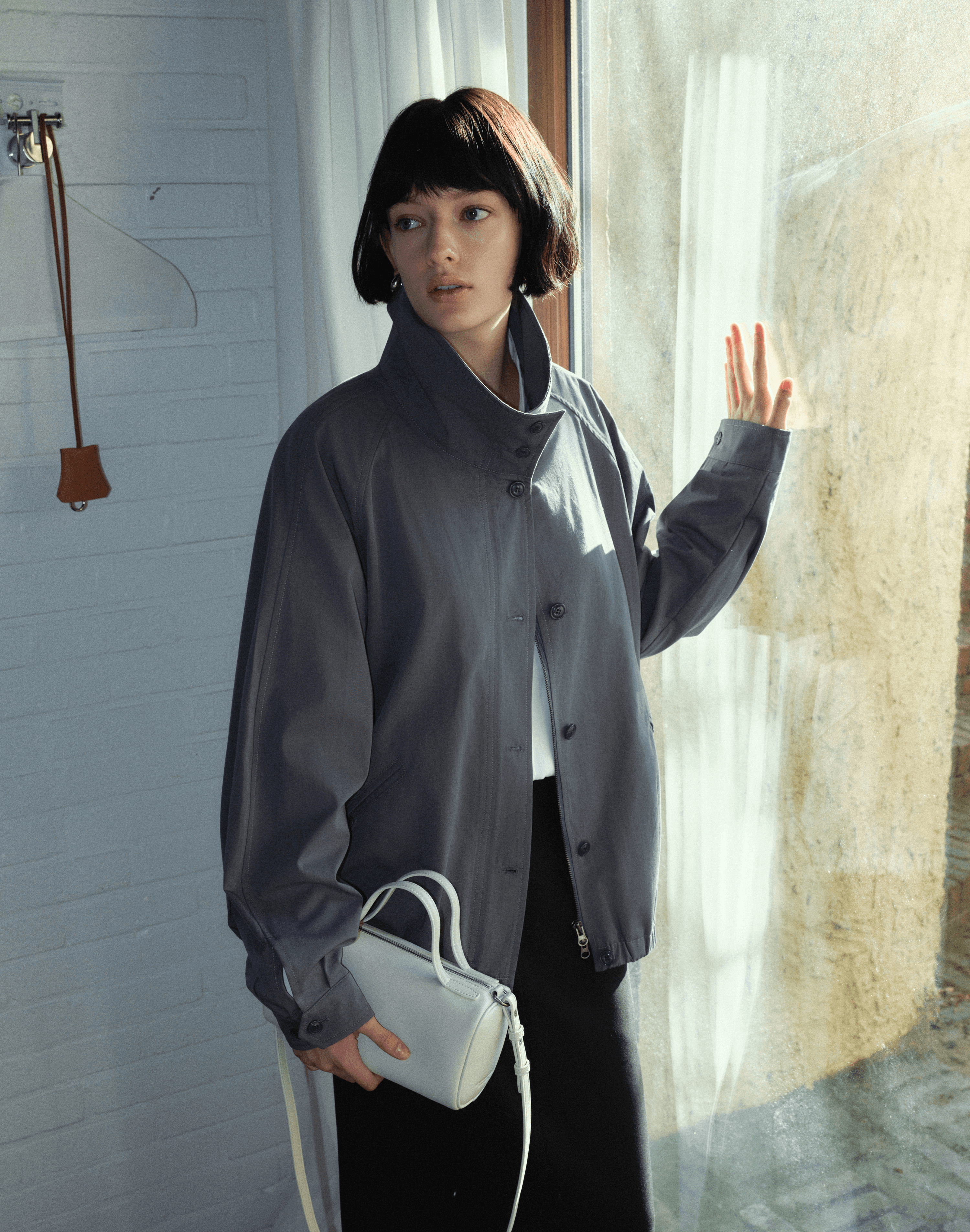 유연한 소재감으로 몸에 자연스럽게 어우러져 일상 속에서 편안하게 착용하기 좋은 하이넥 버튼 디테일의 블루종입니다. 간절기 시즌 가볍게 걸치기 좋으며, 하이넥과 카라 스타일을 자유롭게 연출해 다양한 무드를 완성할 수 있습니다.