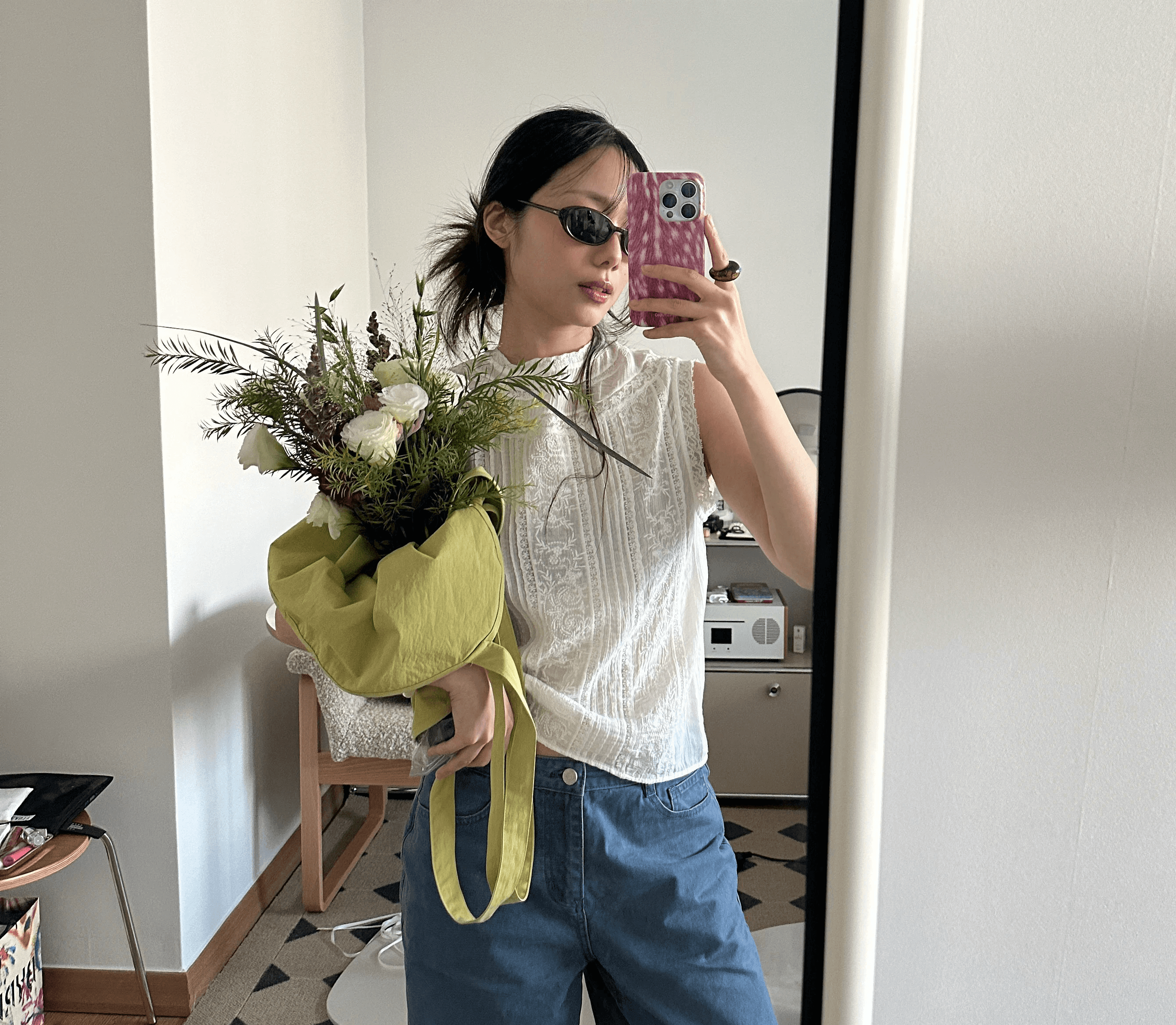 오벌형 쉐입이 만드는 독특한 분위기. 구조적인 실루엣과 존재감 있는 디자인으로 따스한 봄날, 스타일에 감각을 더합니다.