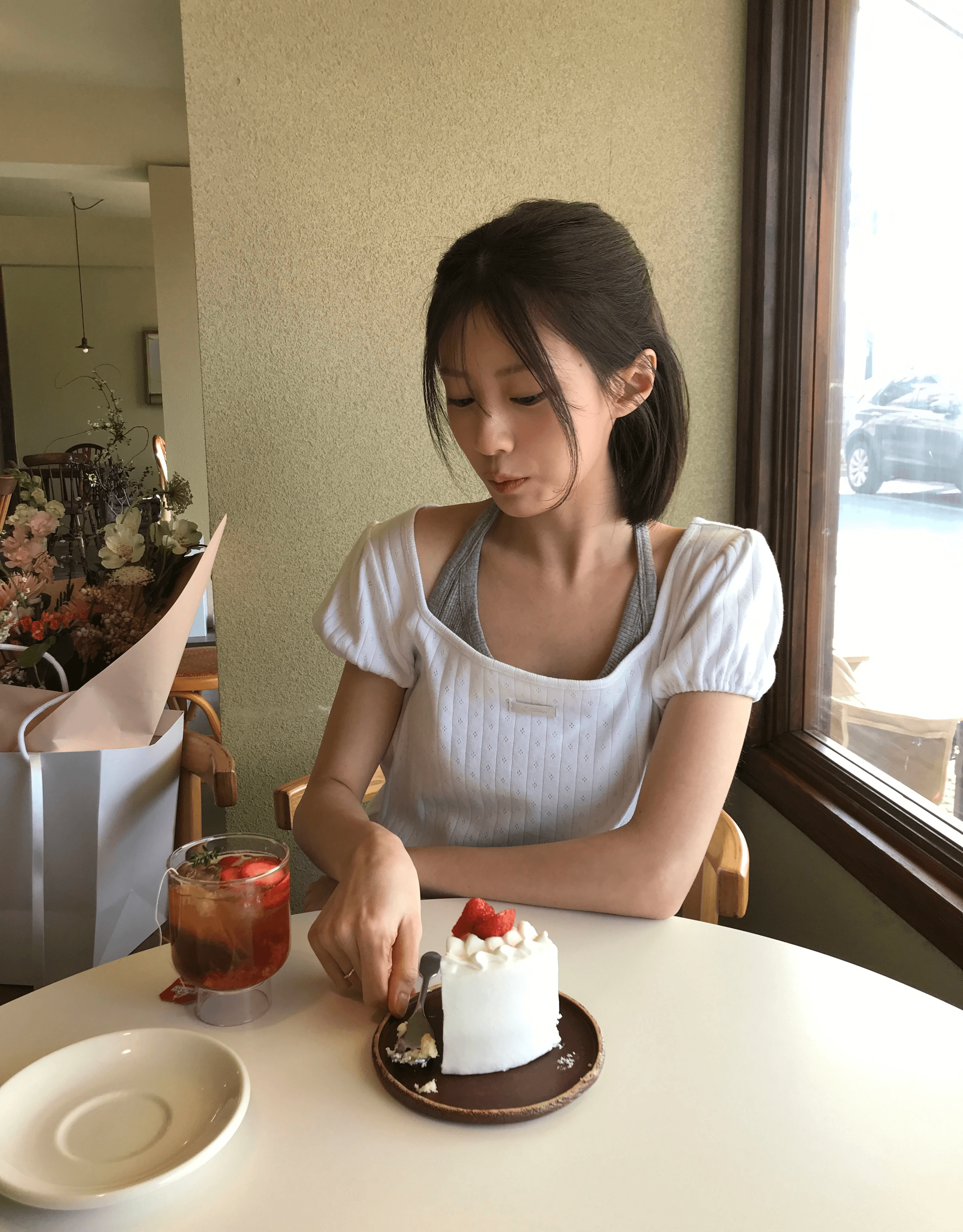 스퀘어넥과 퍼프 소매 셔링 디테일로 쇄골 라인을 살리며 여리한 실루엣을 완성하는 반팔 티셔츠입니다. 펀칭 다이마루 원단과 레터즈 라벨 포인트로 편안함과 미니멀한 감도를 더해 데일리하게 활용하기 좋습니다.