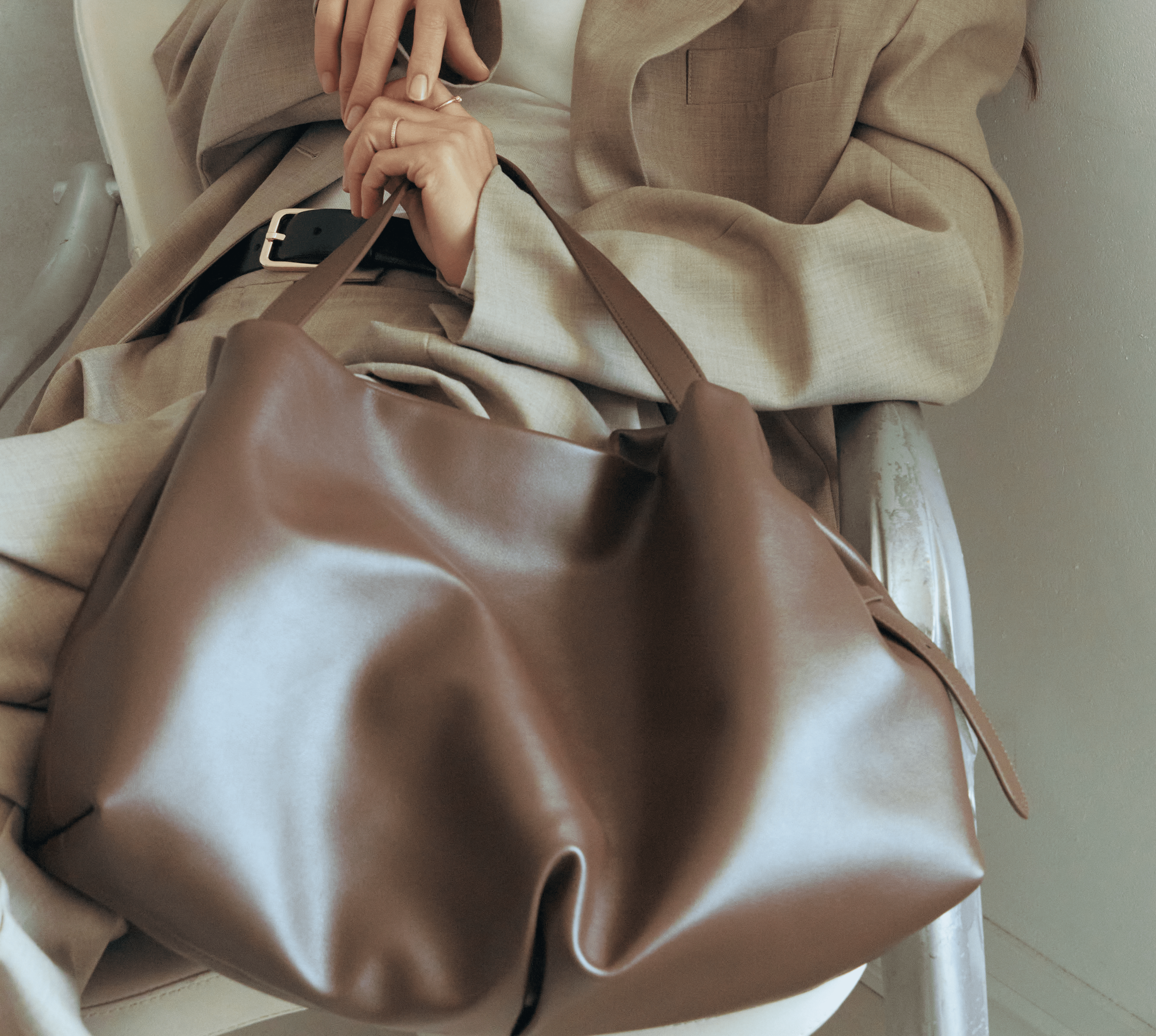 시즌리스한 디자인에 하단 중앙 부분 딤플 같은 엣지를 잡으며 완성된 호보백이에요.