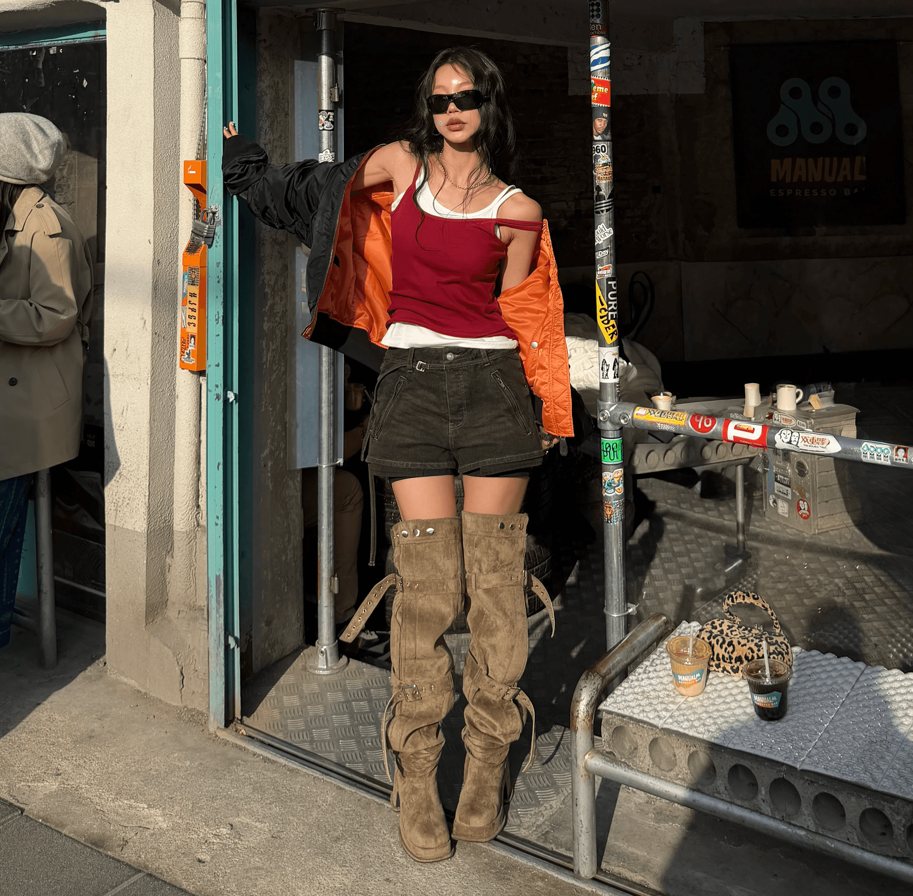 로딩룸의 스트릿 무드가 설쁘의 감각과 만나 데일리하면서도 감도 높은 글램 스트릿 스타일을 완성합니다. 레이어드와 컬러 포인트를 더해 일상 속에서도 자연스럽게 돋보이는 룩을 제안합니다.