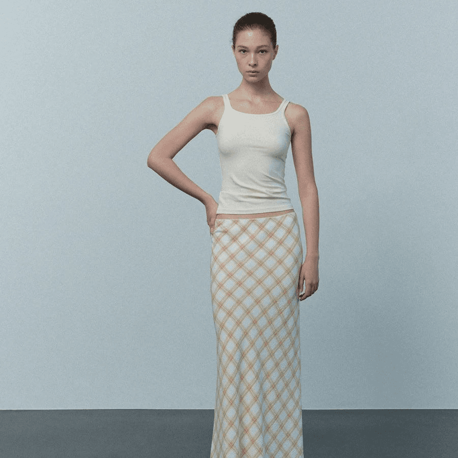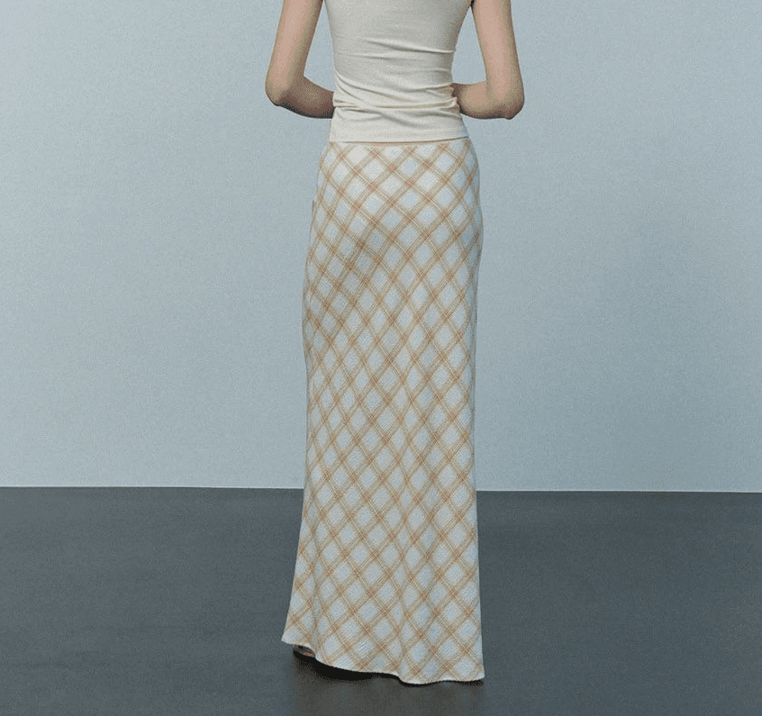 check bias maxi skirt