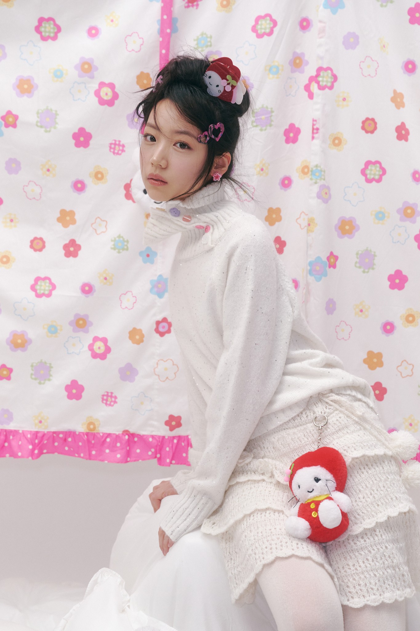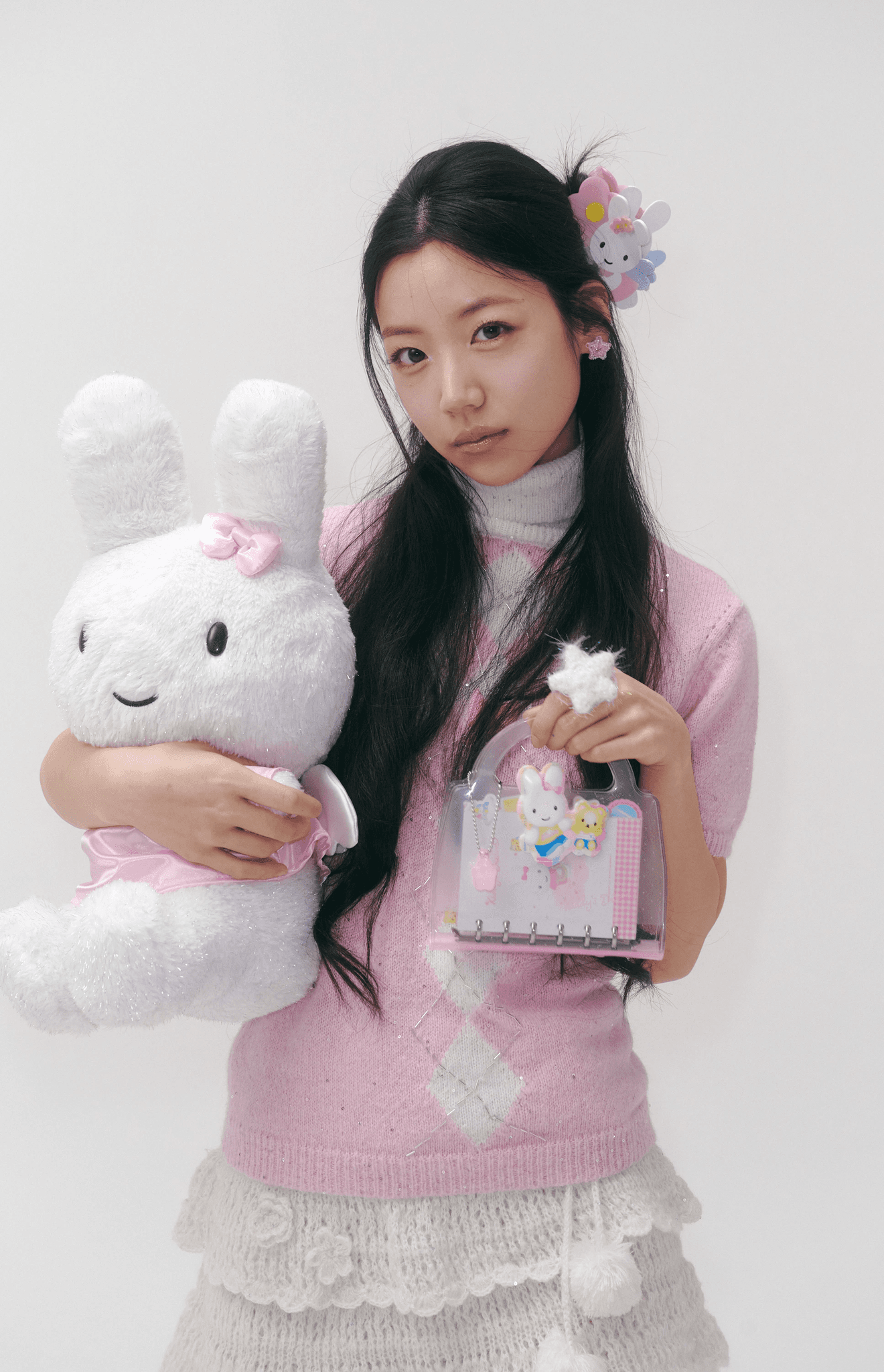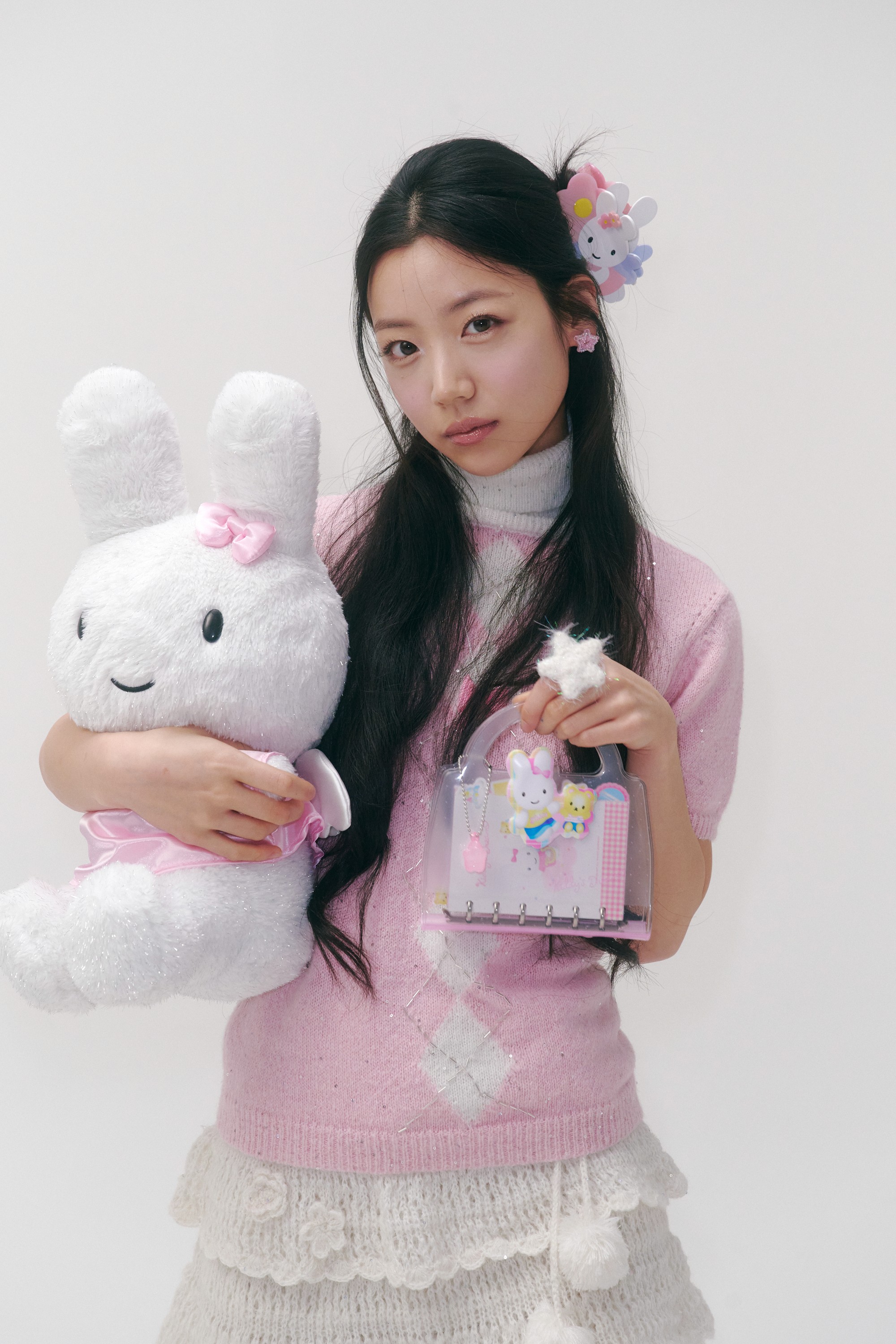 스윙셋x영아트가 만든 천사 키디 인형. 복슬복슬한 퍼 원단에 옛 감성을 담고, 핑크 새틴 리본 헤어핀과 뒤편의 사랑스러운 날개로 키치한 디테일을 완성했어요.