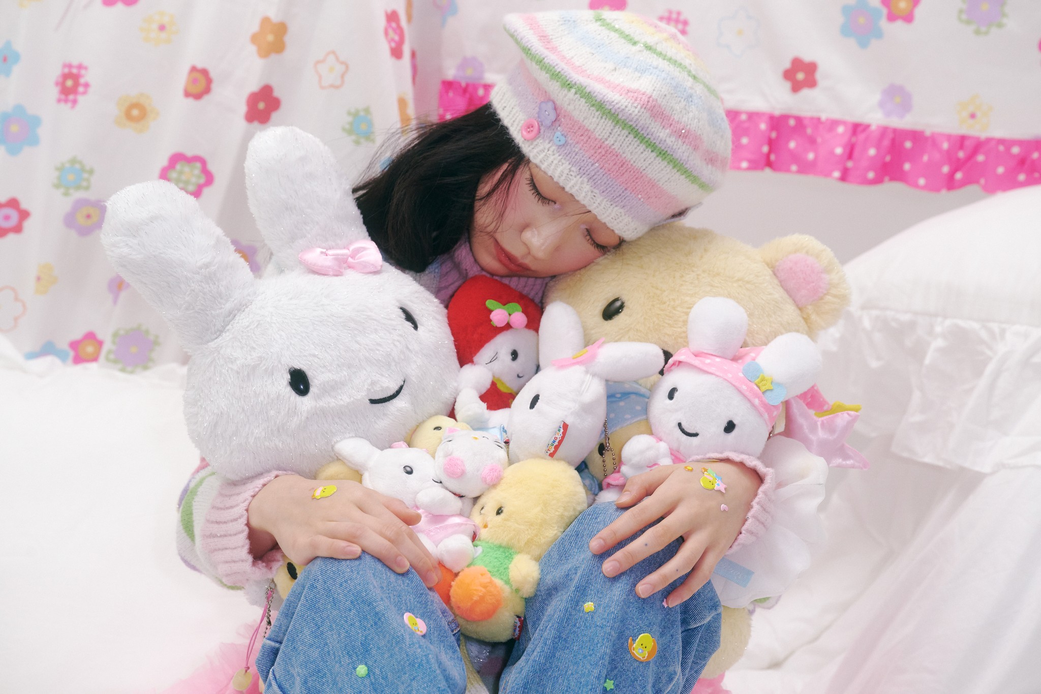 스윙셋x영아트의 천사 지니 대형 인형을 소개해요. 부들부들한 퍼 소재로 옛 감성을 되살리고, 새틴 의상과 핑크 요술봉으로 키치한 매력을 담았어요. 뒤에 달린 천사 날개가 피어나는 봄을 더욱 특별하게 만들어요.