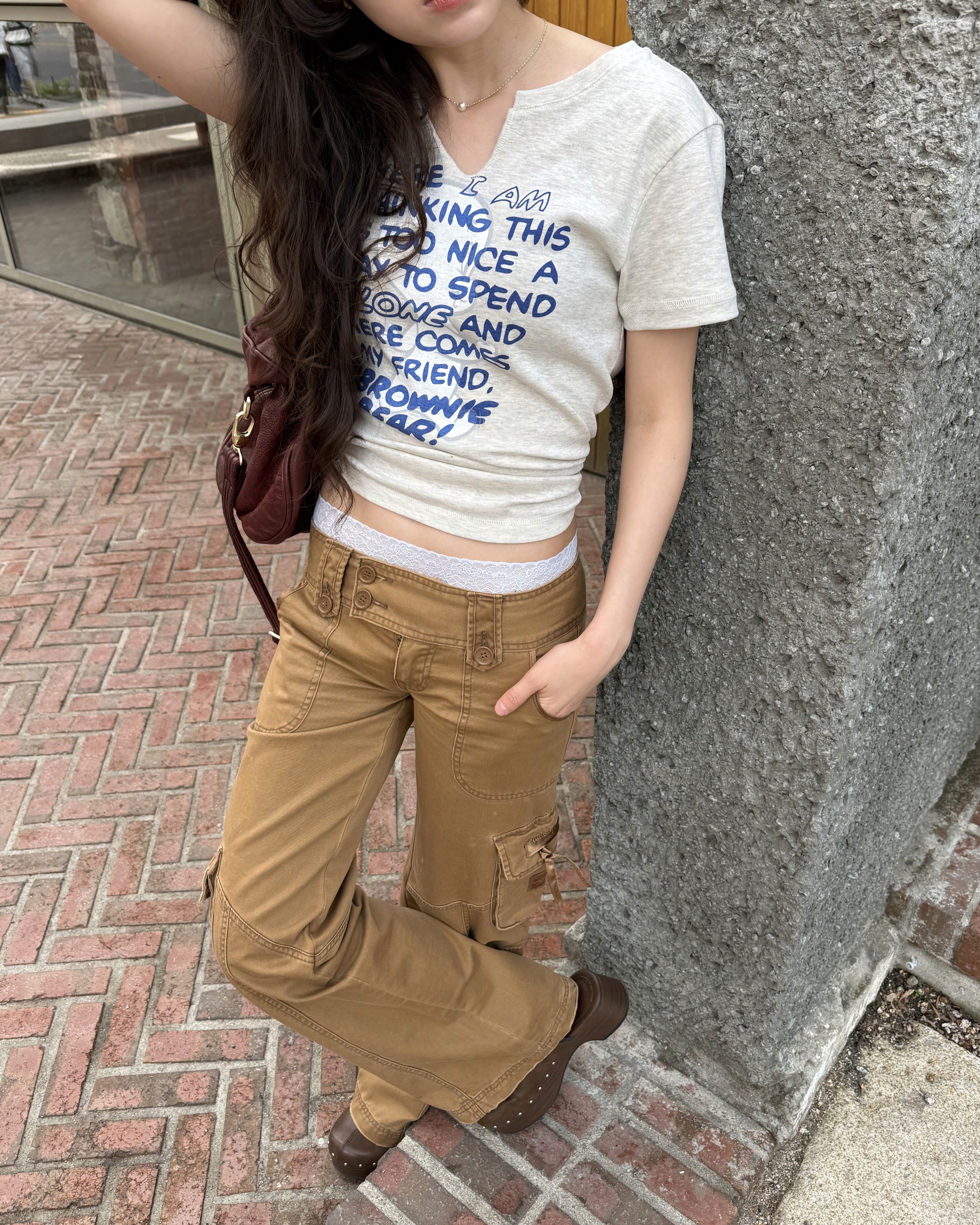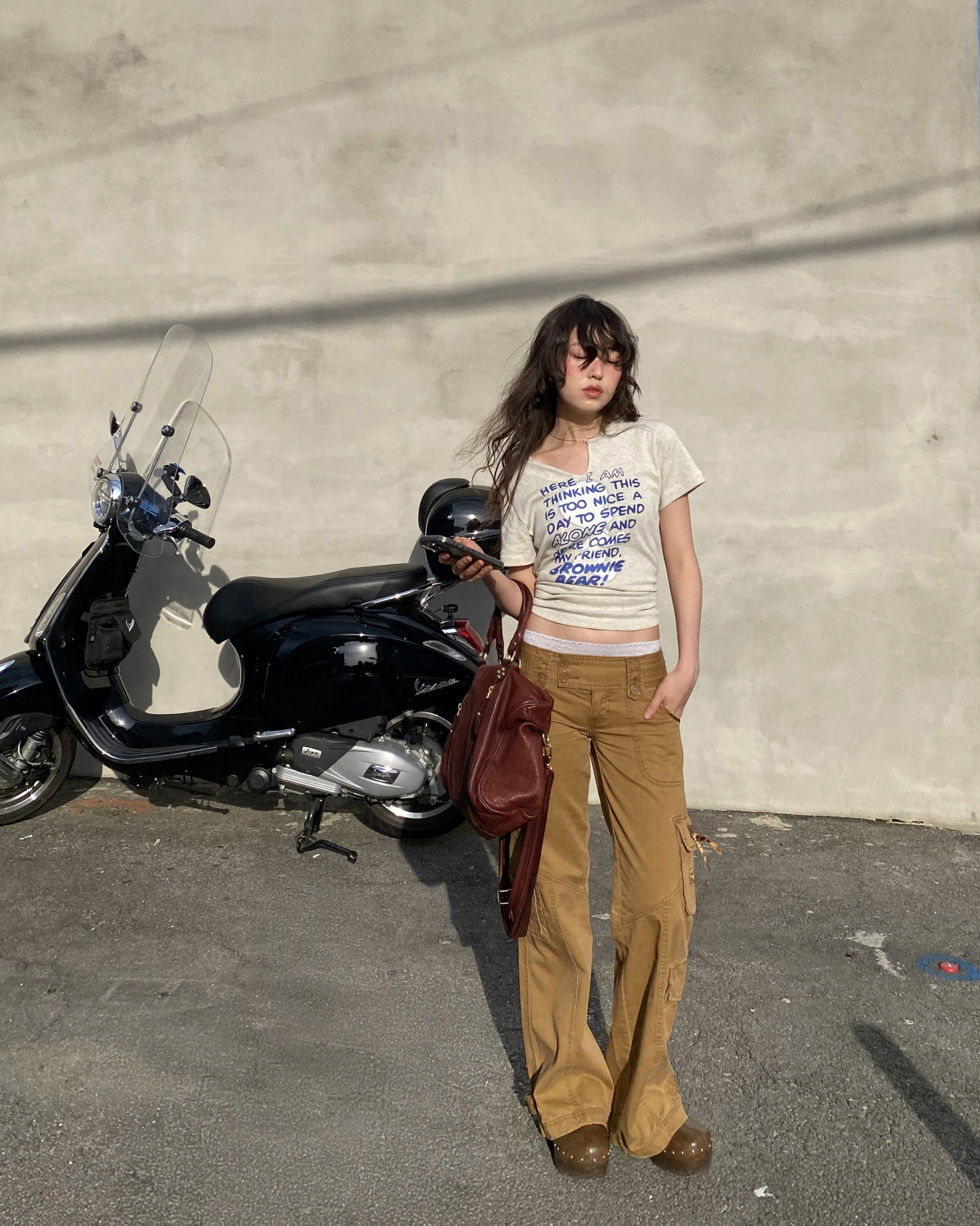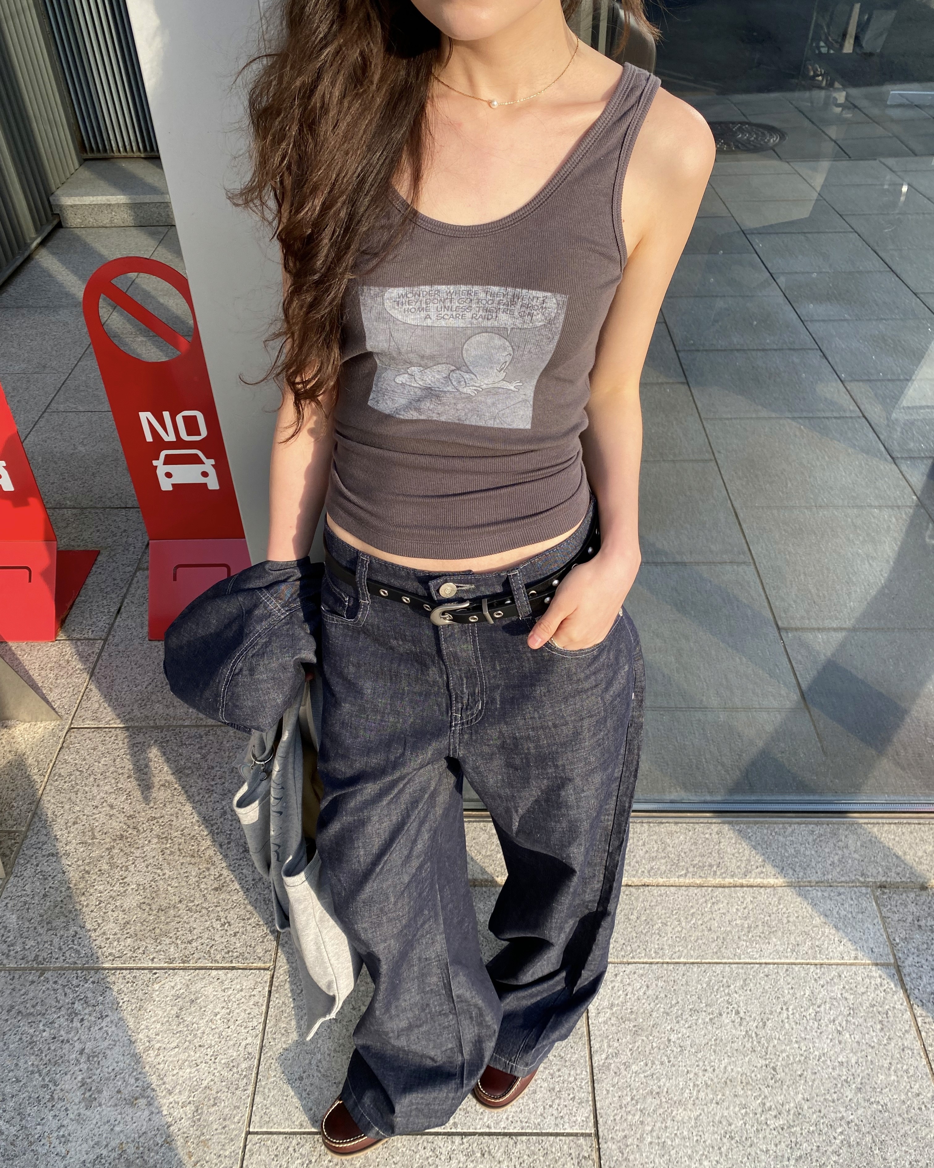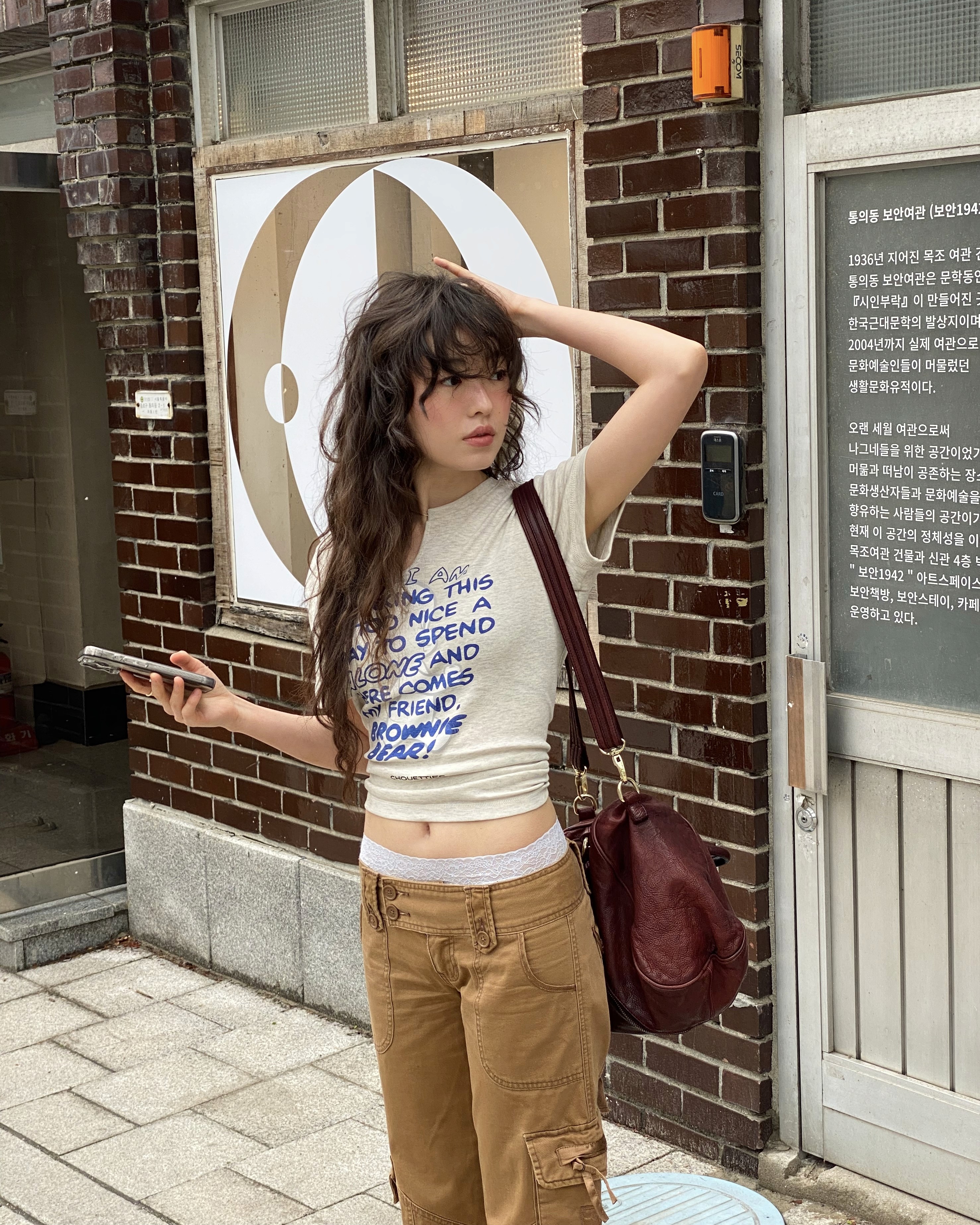 캐스퍼 콜라보 티셔츠와 모자의 쿨한 매치. 캐스퍼의 유니크한 그래픽과 채원의 믹스매치를 참고해보세요.
