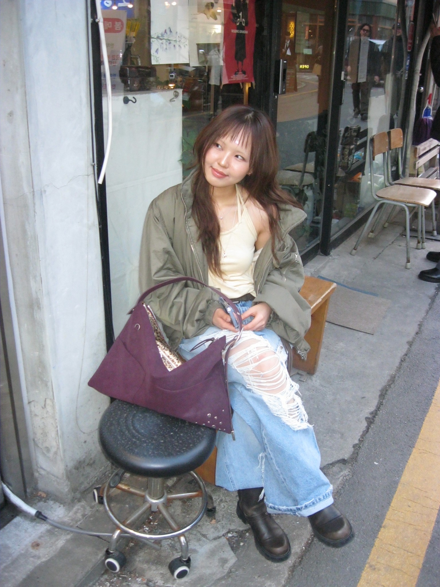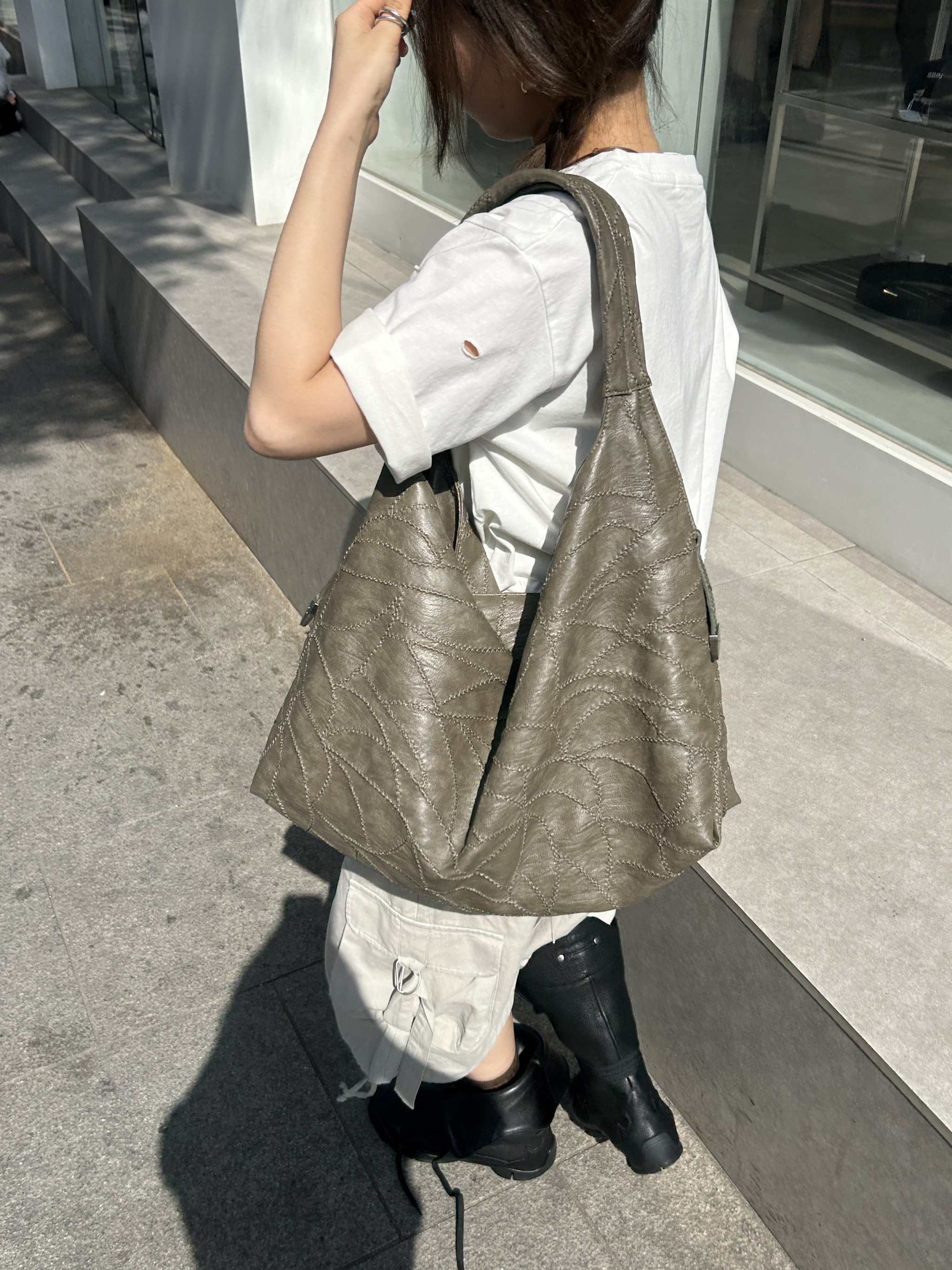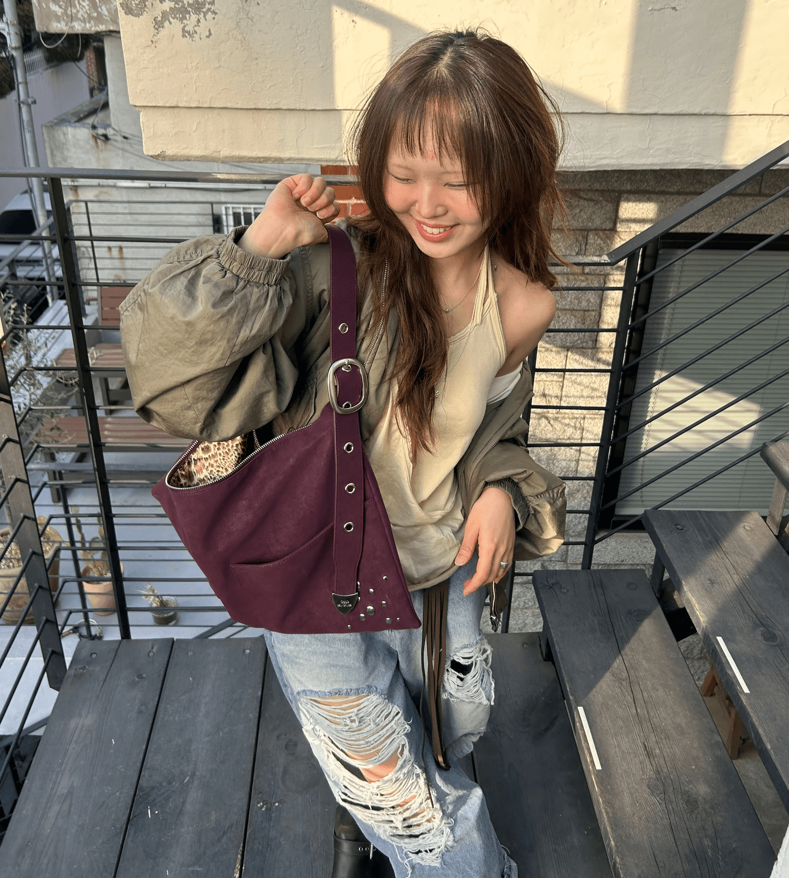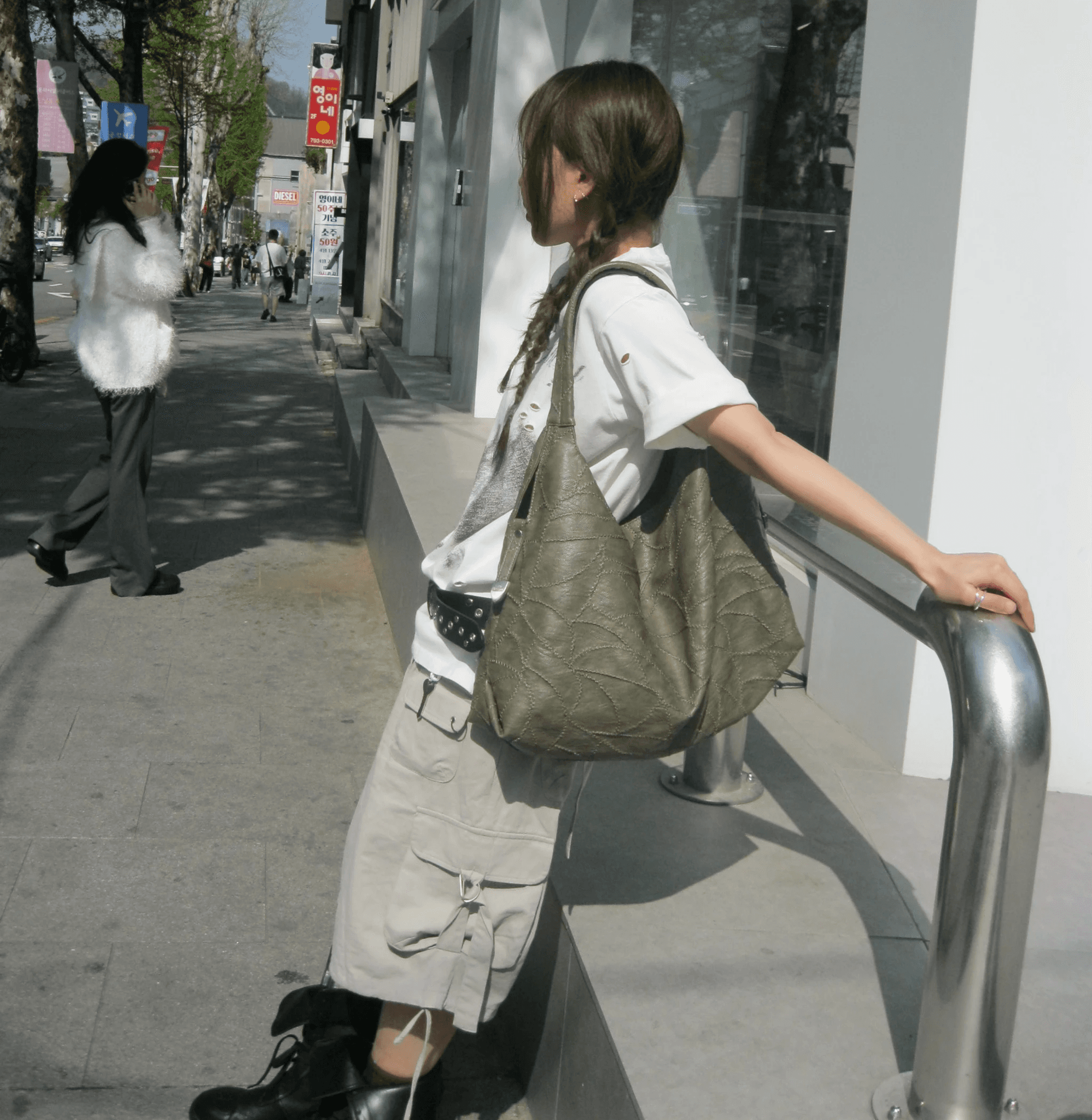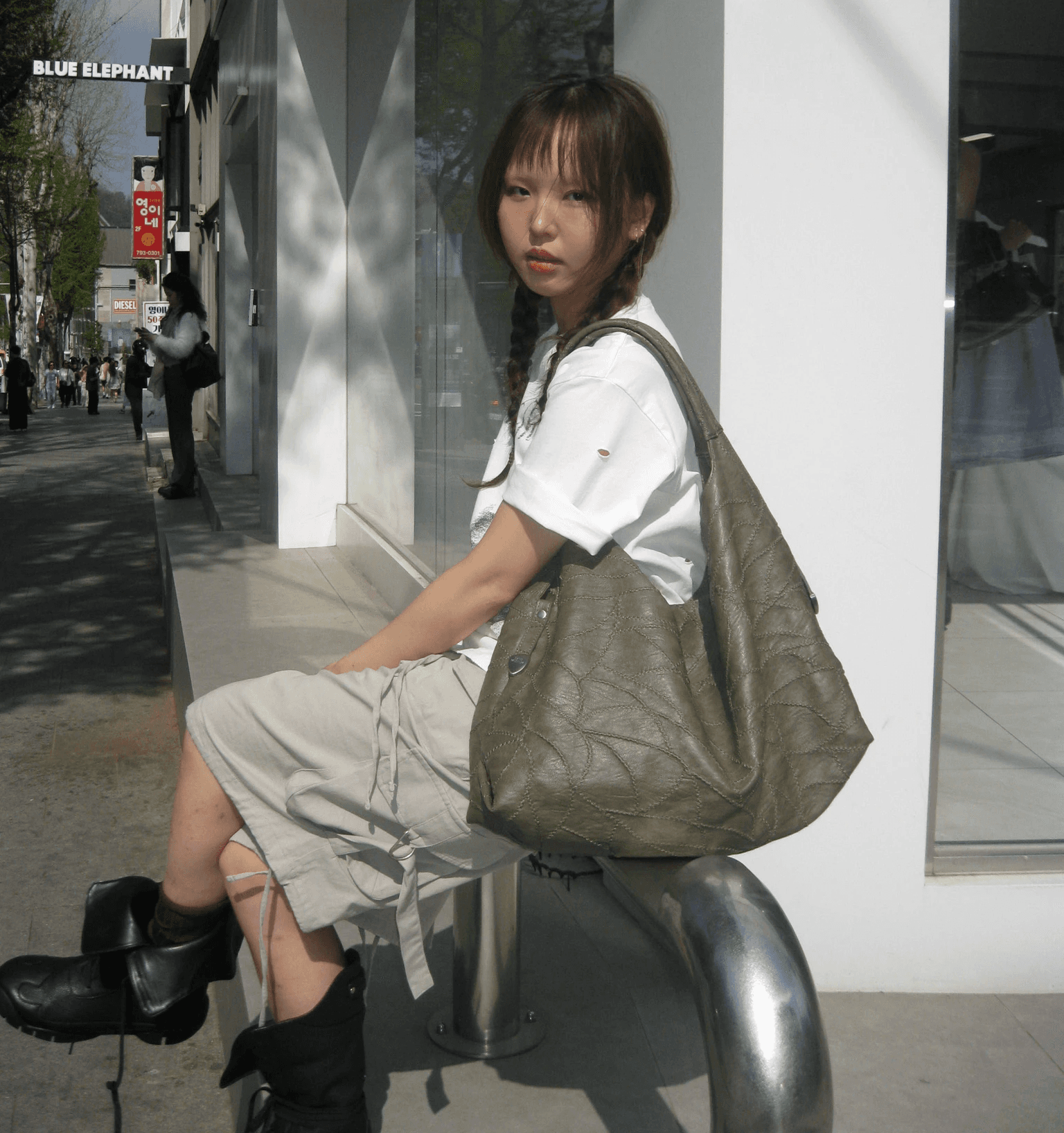선인장의 텍스처에서 영감받은 호보백. 자연스럽게 쳐지는 실루엣과 시그니처 장식이 만든 웨스턴 무드, 샌드뮤지엄이 제안하는 자유로운 디자인입니다.