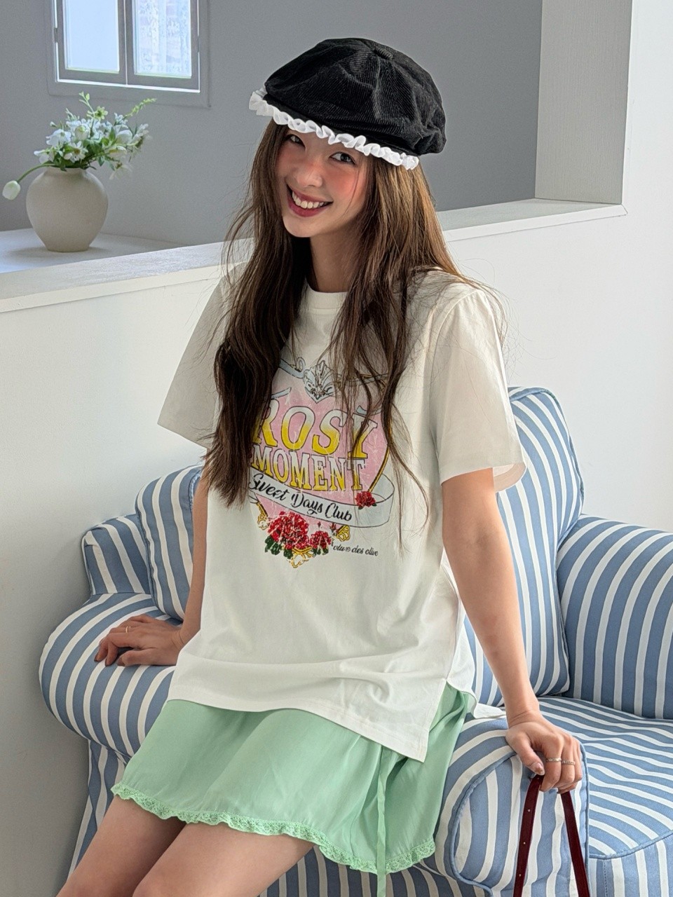 세미크랍 기장에 여름느낌을 자아내는 프린팅으로 시원한 느낌을 주어 편안하고 데일리하게 입을 수 있는 베이직한 티셔츠 아이템입니다.