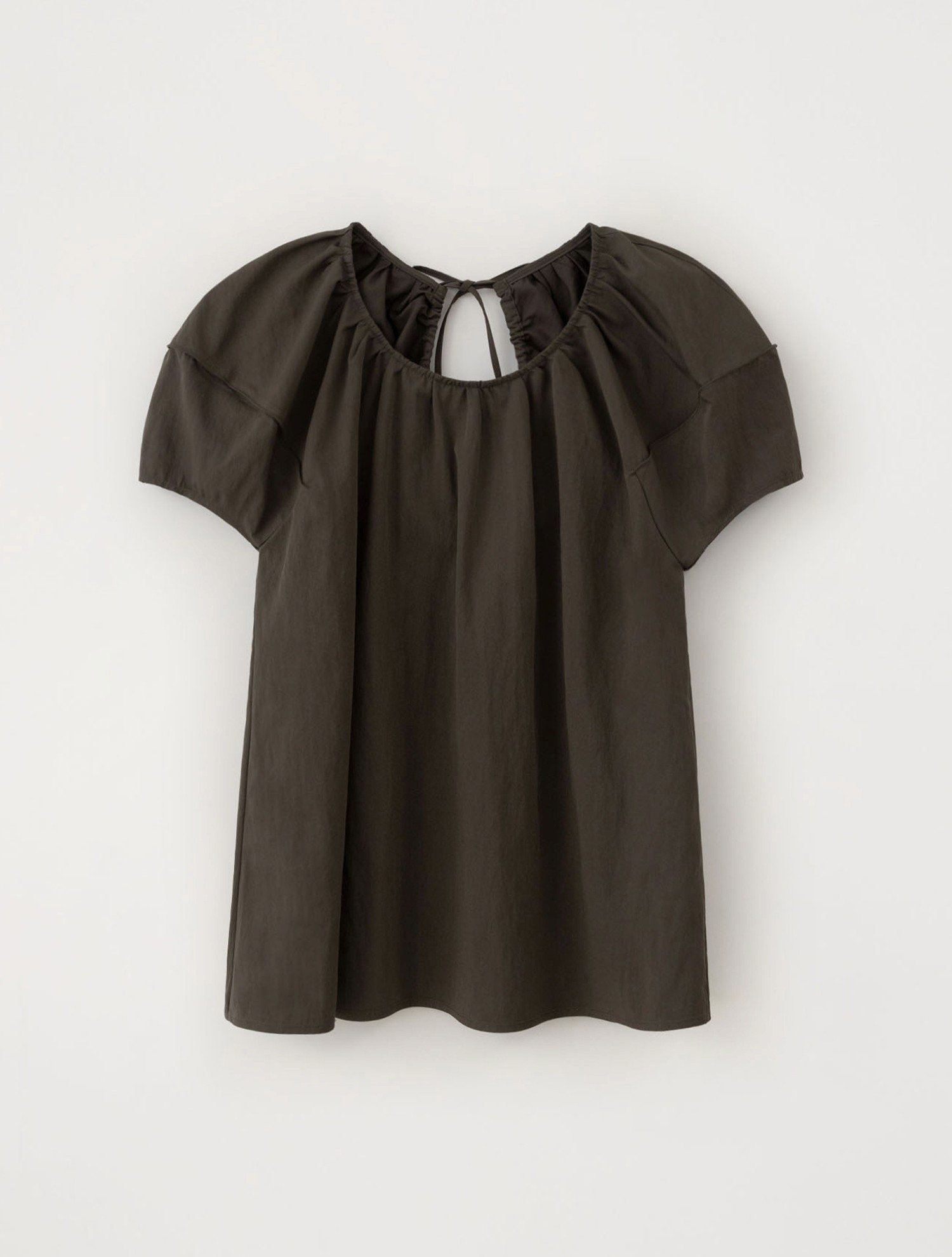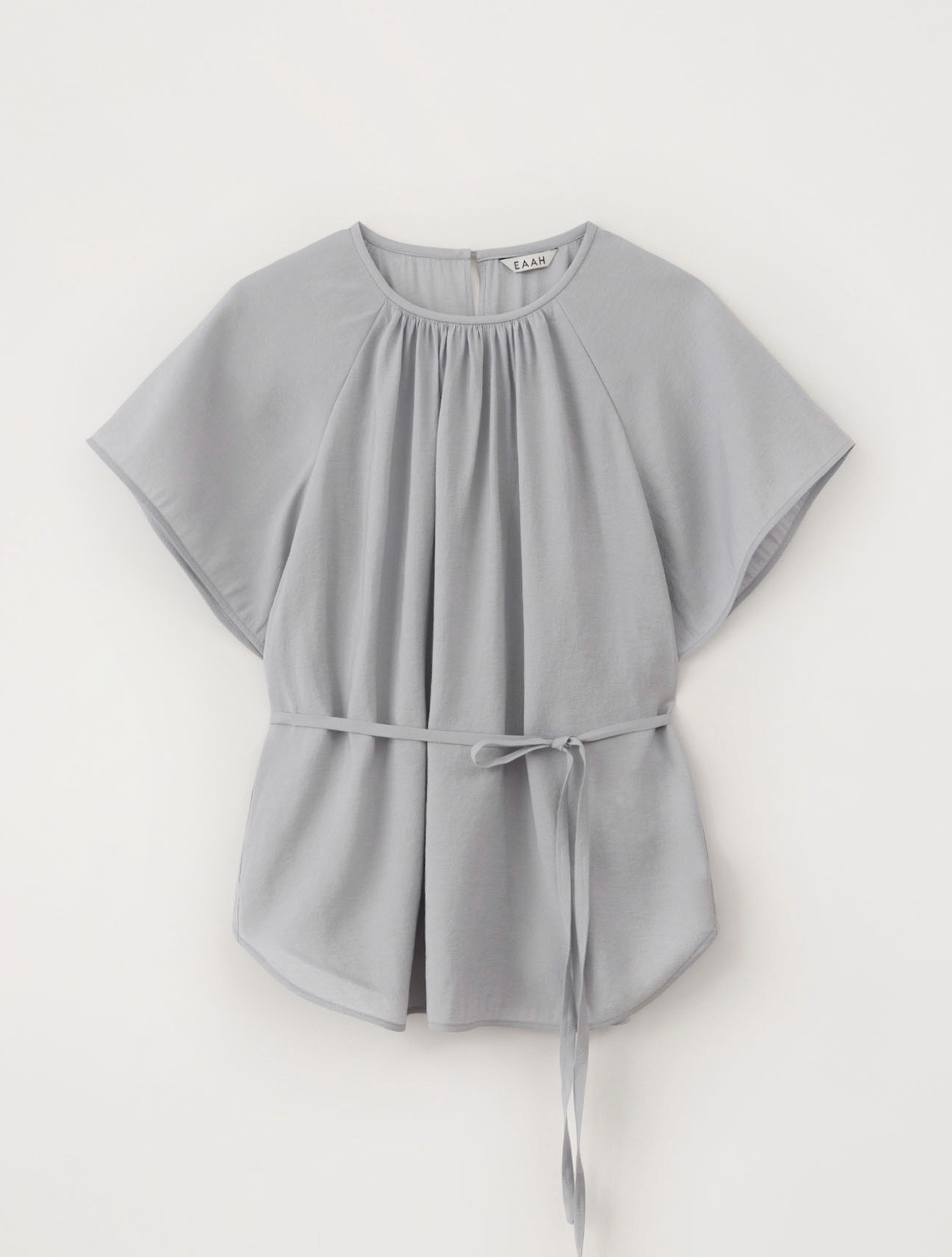 앞넥 셔링 디테일이 특징인 래글런 소매 반팔 블라우스입니다. 셔링으로 자연스러운 볼륨감을 더해 페미닌한 분위기를 완성하며, 가볍게 흘러내리는 소매 라인이 유연한 인상을 줍니다.