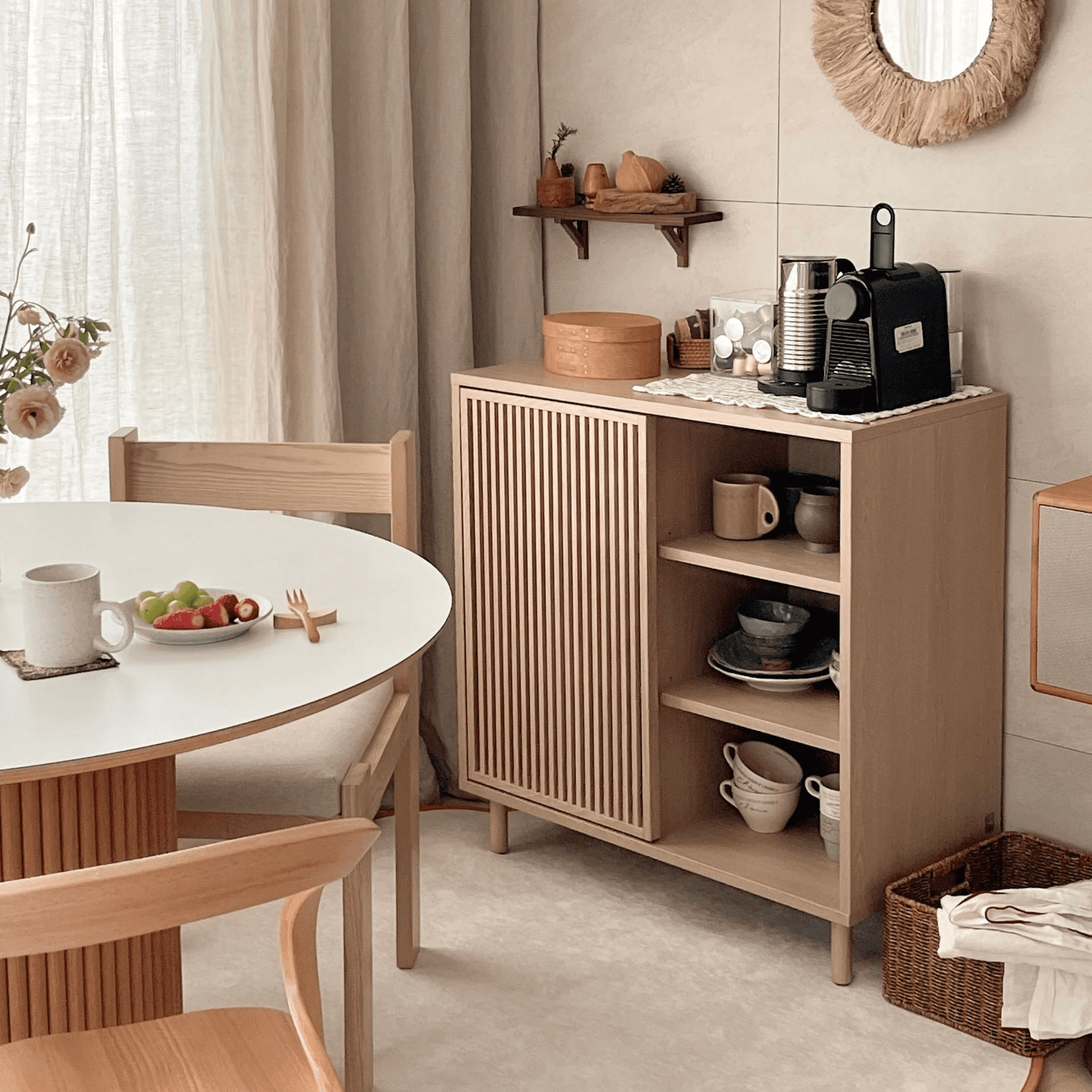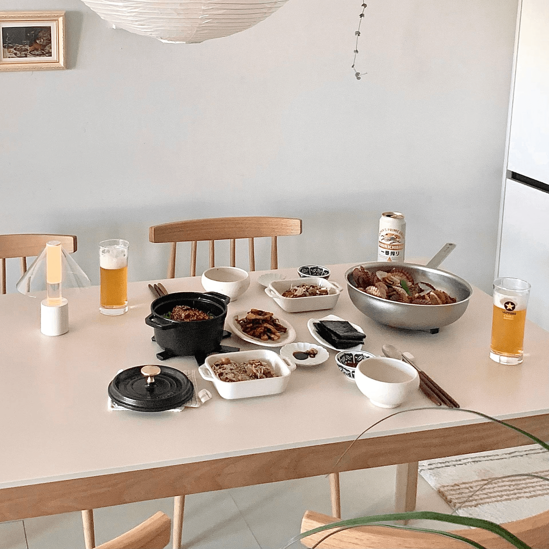 세라믹과 원목의 조합이 다이닝 공간을 더욱 고급스럽게 만들어 줄 거예요.