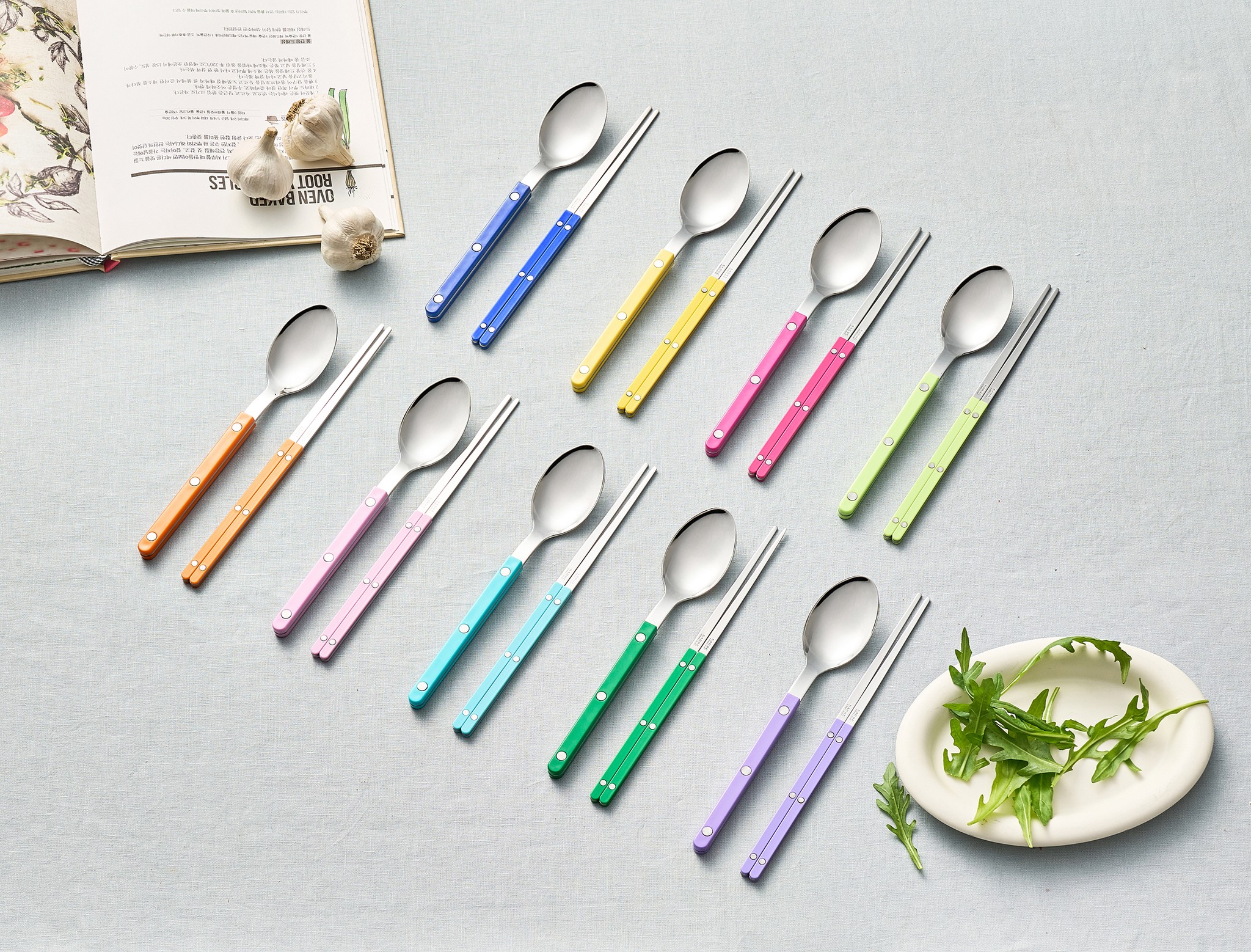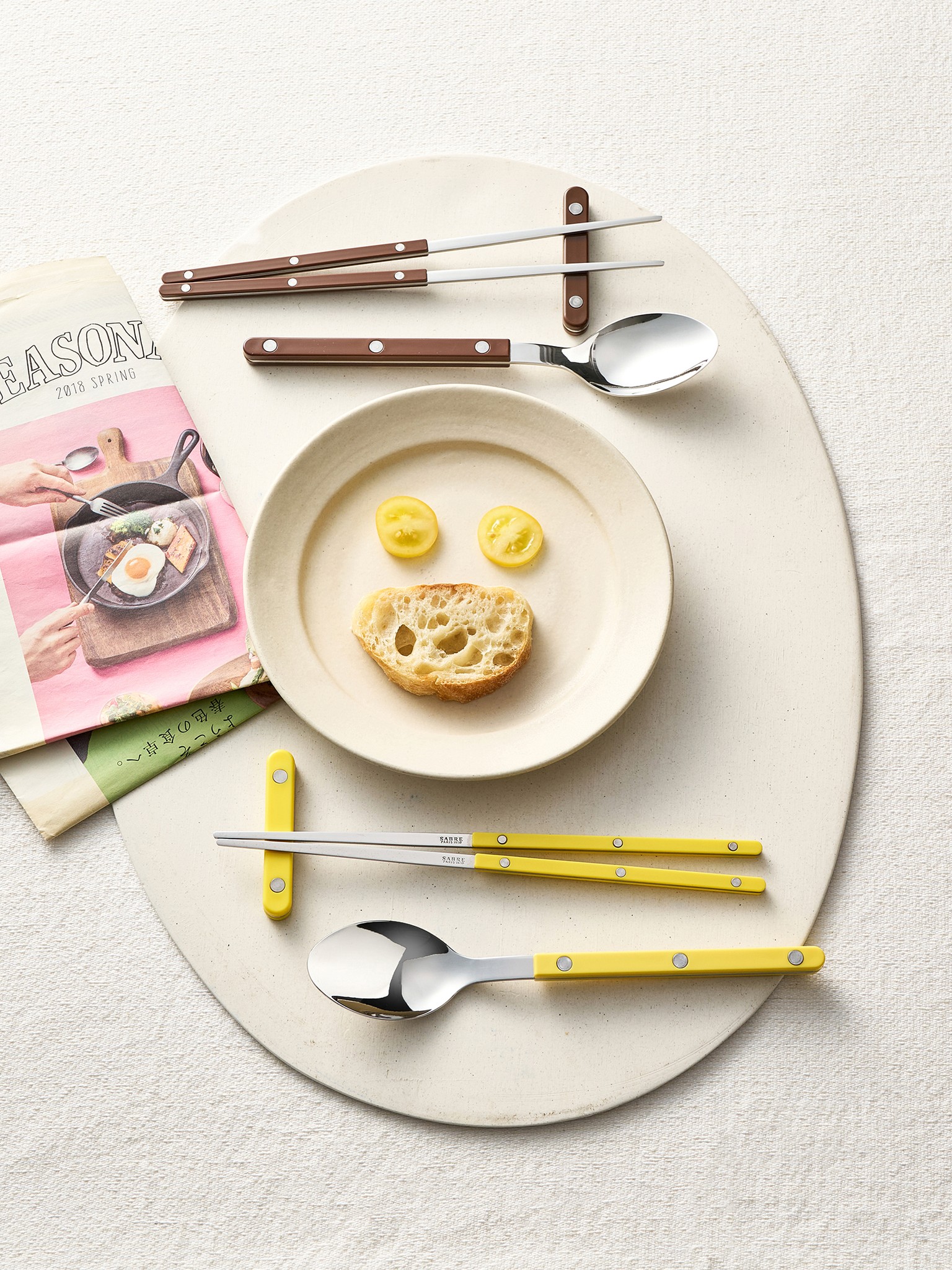 클래식한 실루엣에 현대적인 색채를 입힌 프랑스 커트러리 브랜드로, 평범한 한 끼를 한 권의 화보처럼 완성해 줍니다.