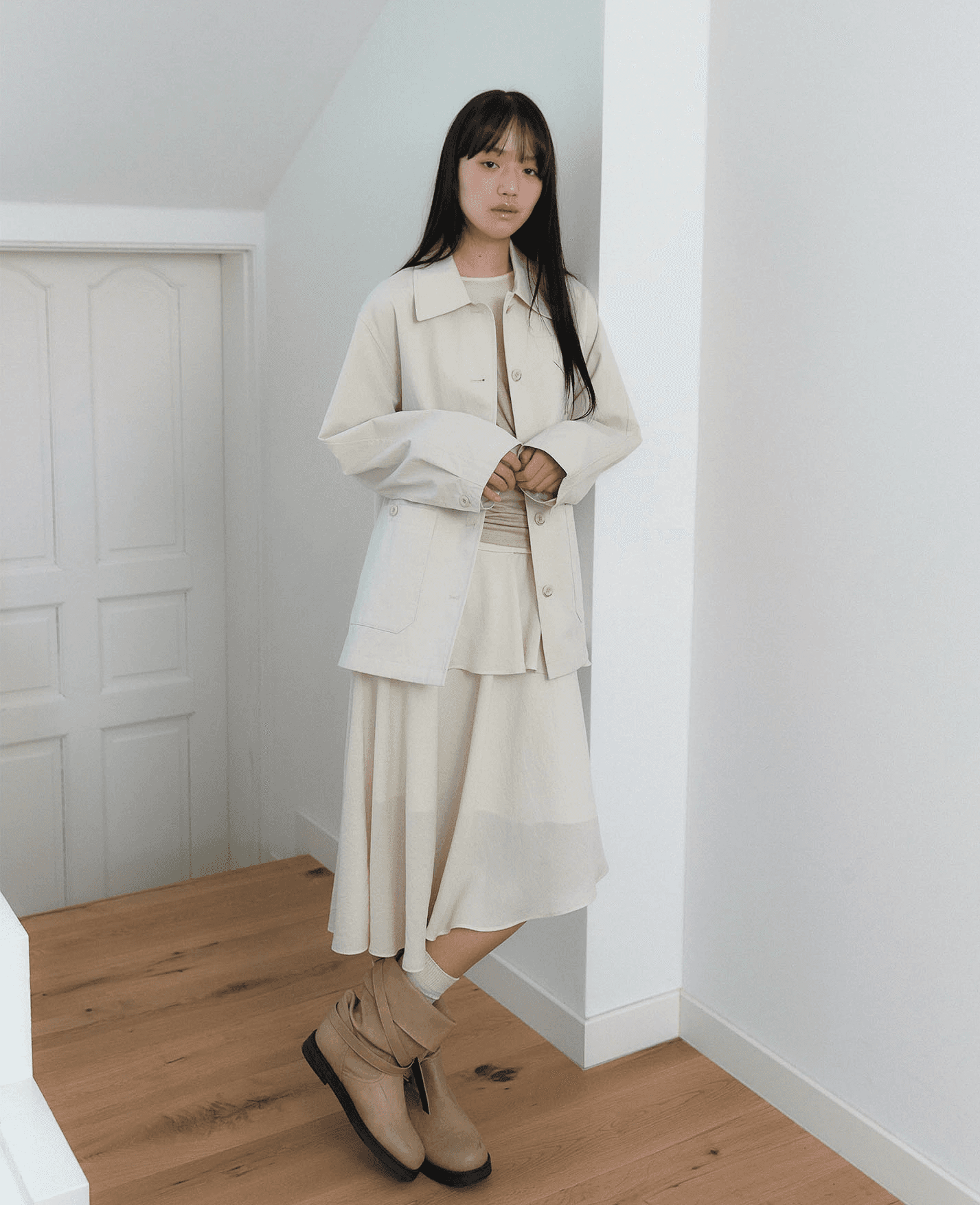 따뜻한 봄, 나비의 날개짓처럼 옷자락이 가볍게 흔들리는 움직임에서 느껴지는 설렘을 경험해 보세요.