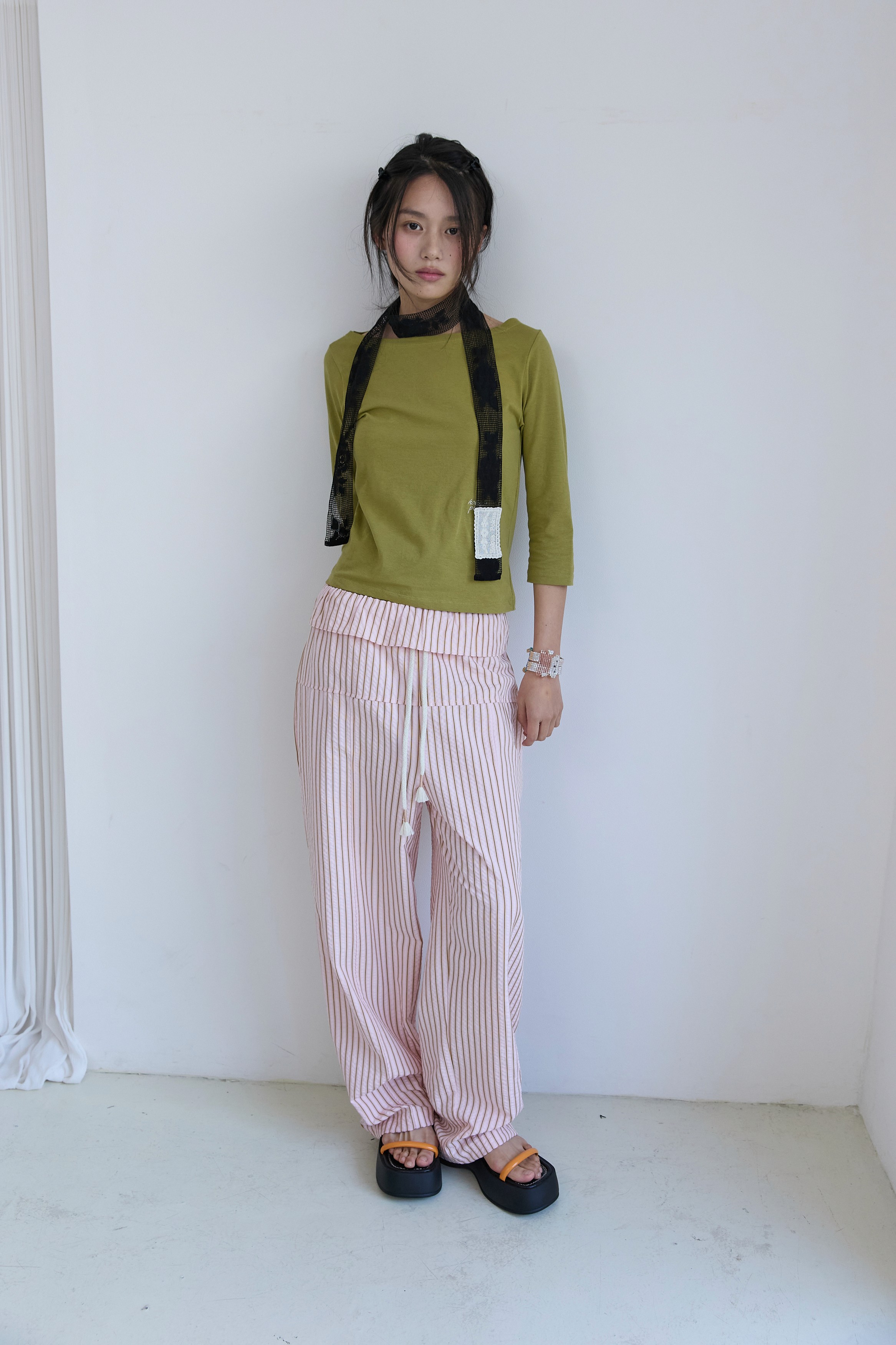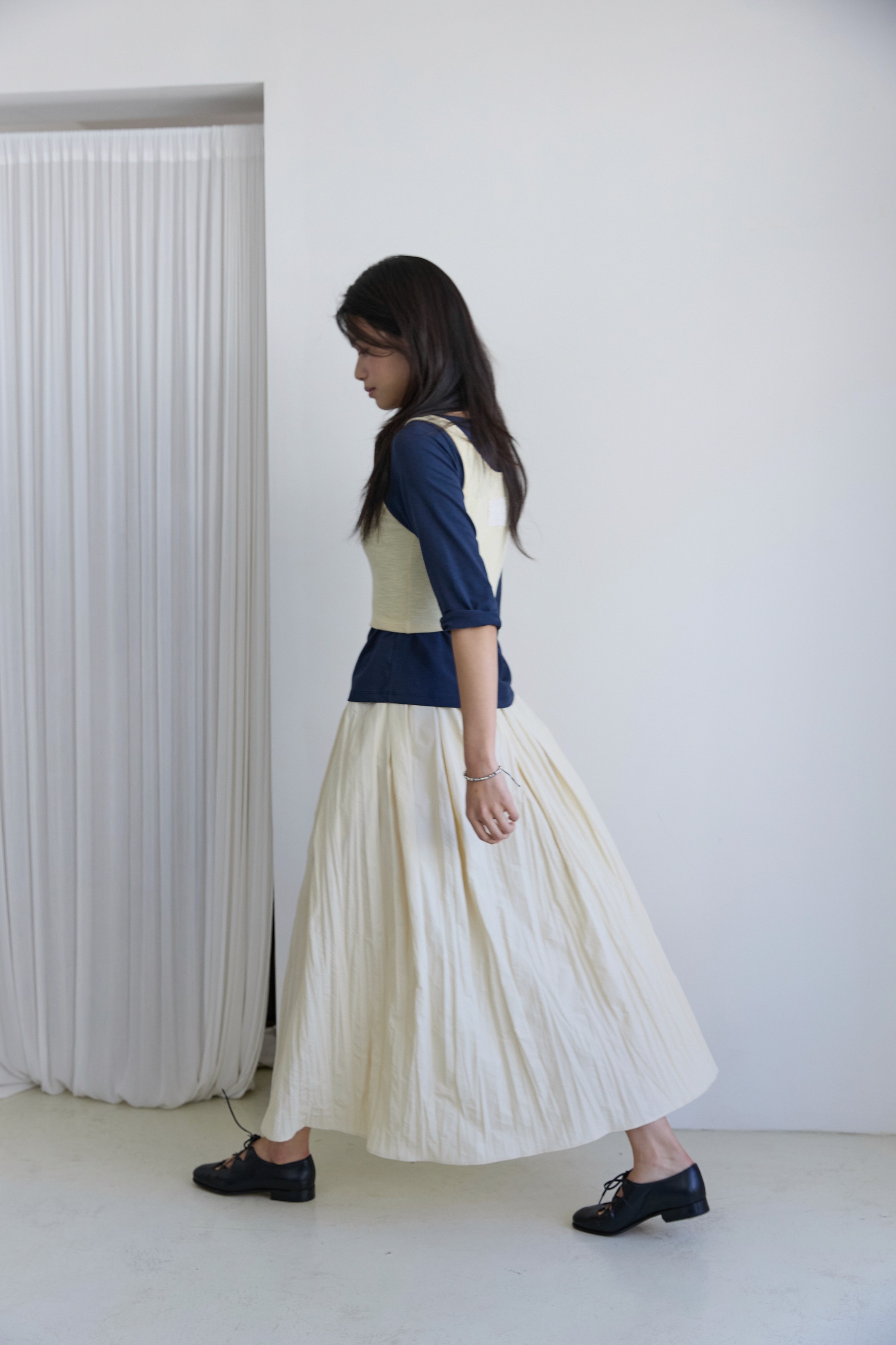 빈티지한 소재 위에 순수한 감각을 더했습니다. 미니멀한 상의와 존재감 있는 하의의 균형잡힌 실루엣을 특별한 혜택으로 제안해요.
