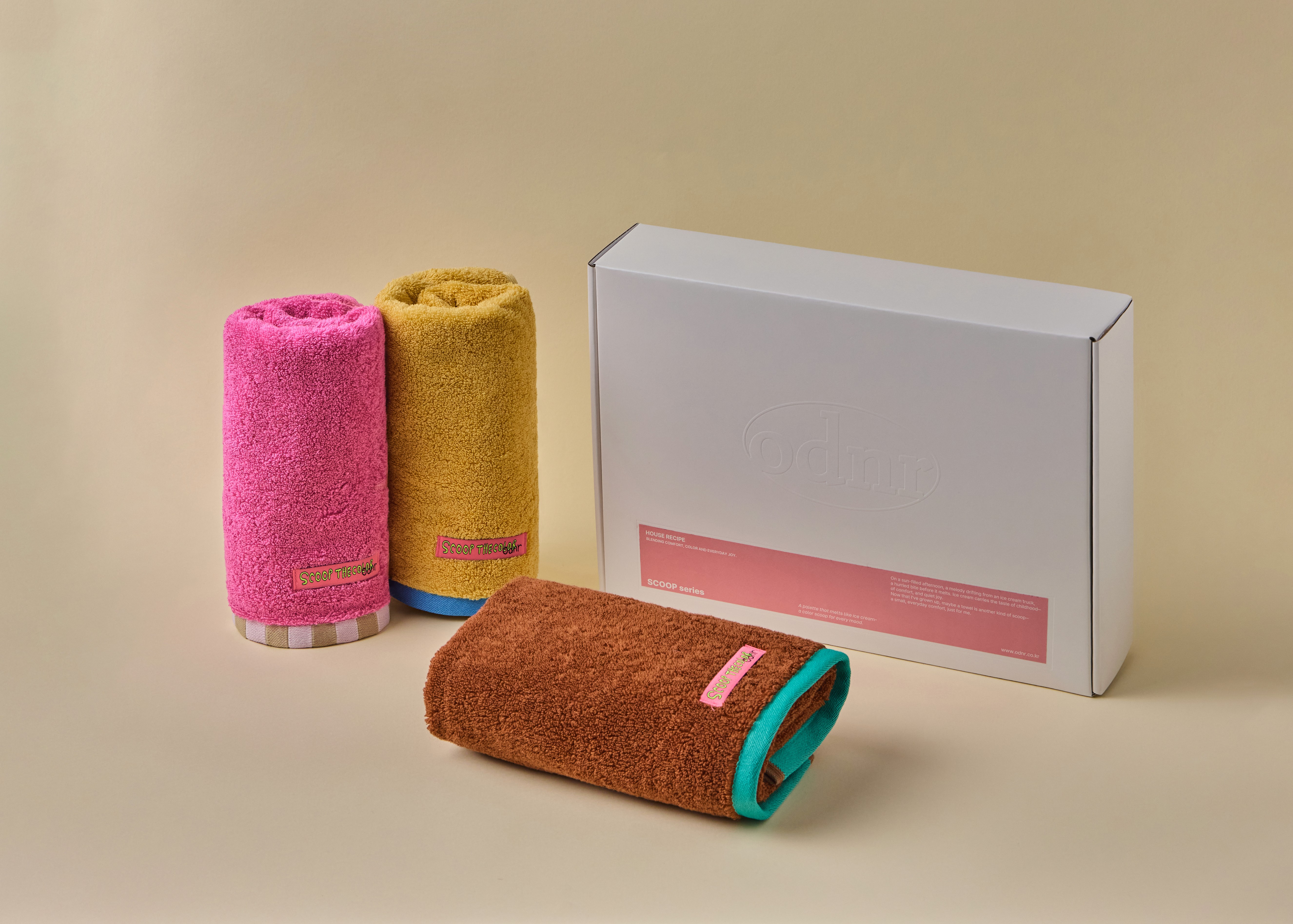 한 스쿱씩 담아낸 컬러와 부드러움. 타월 하나로 시작되는 기분 좋은 매일을 경험하세요.