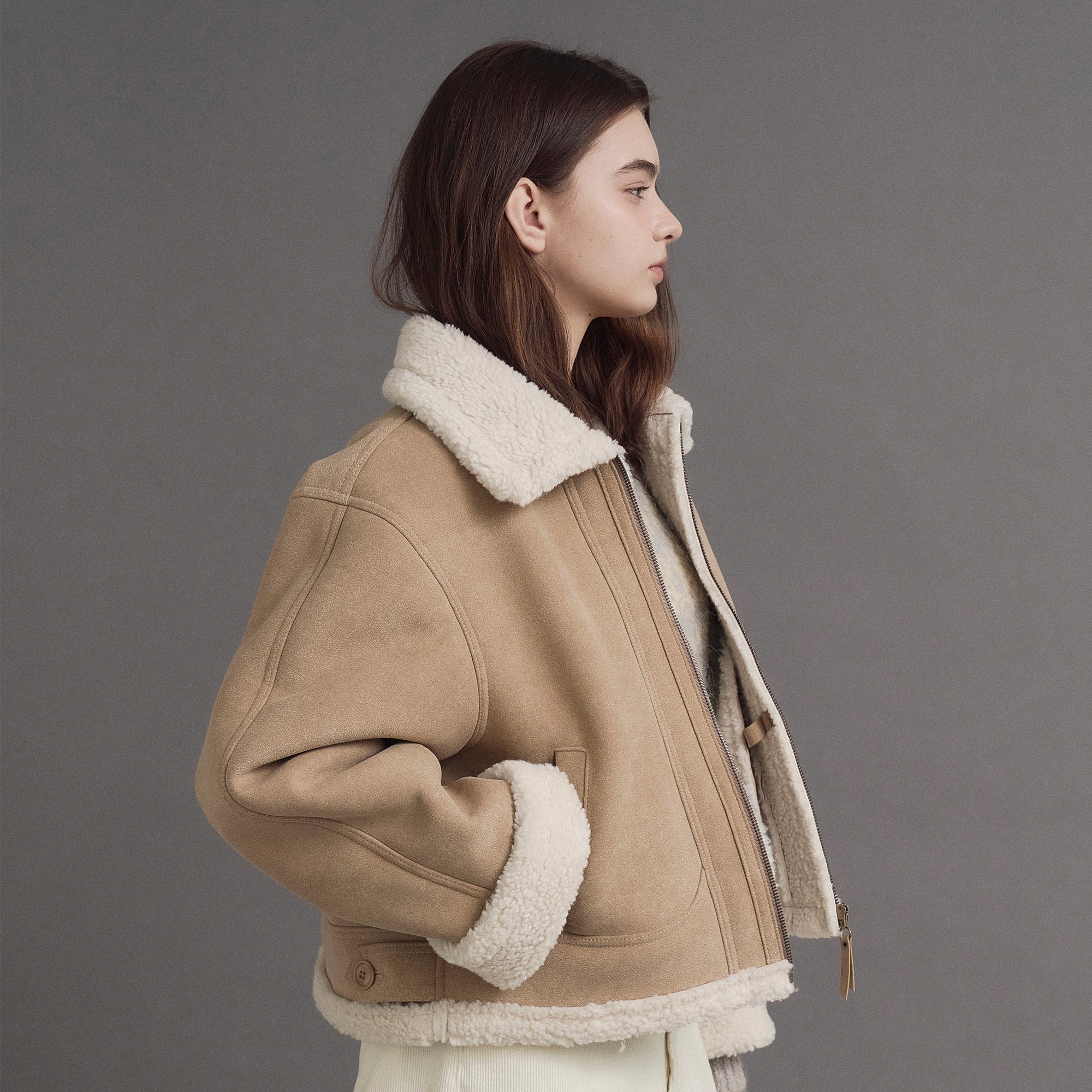 부해보이지 않는 클래식한 리버시블 무스탕으로 군데 군데 완성도 있는 디테일로 고급스러움을 더했어요.
