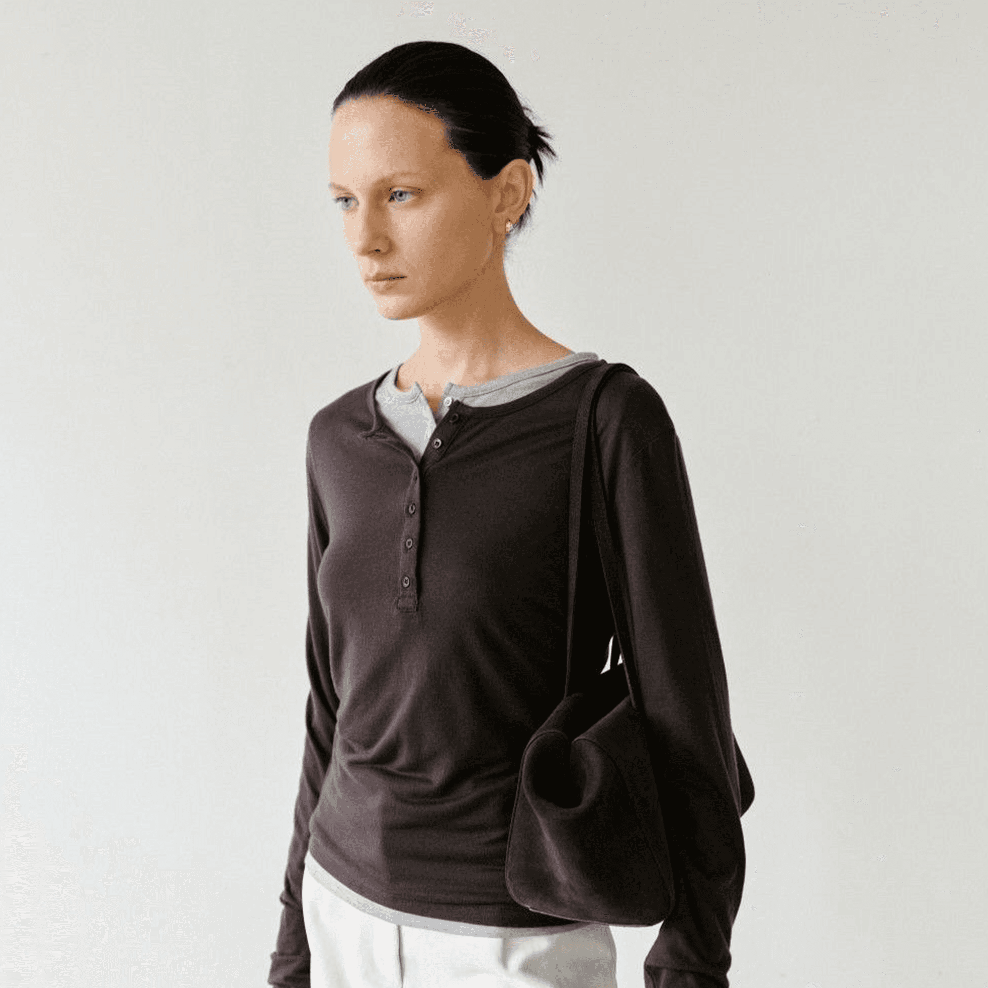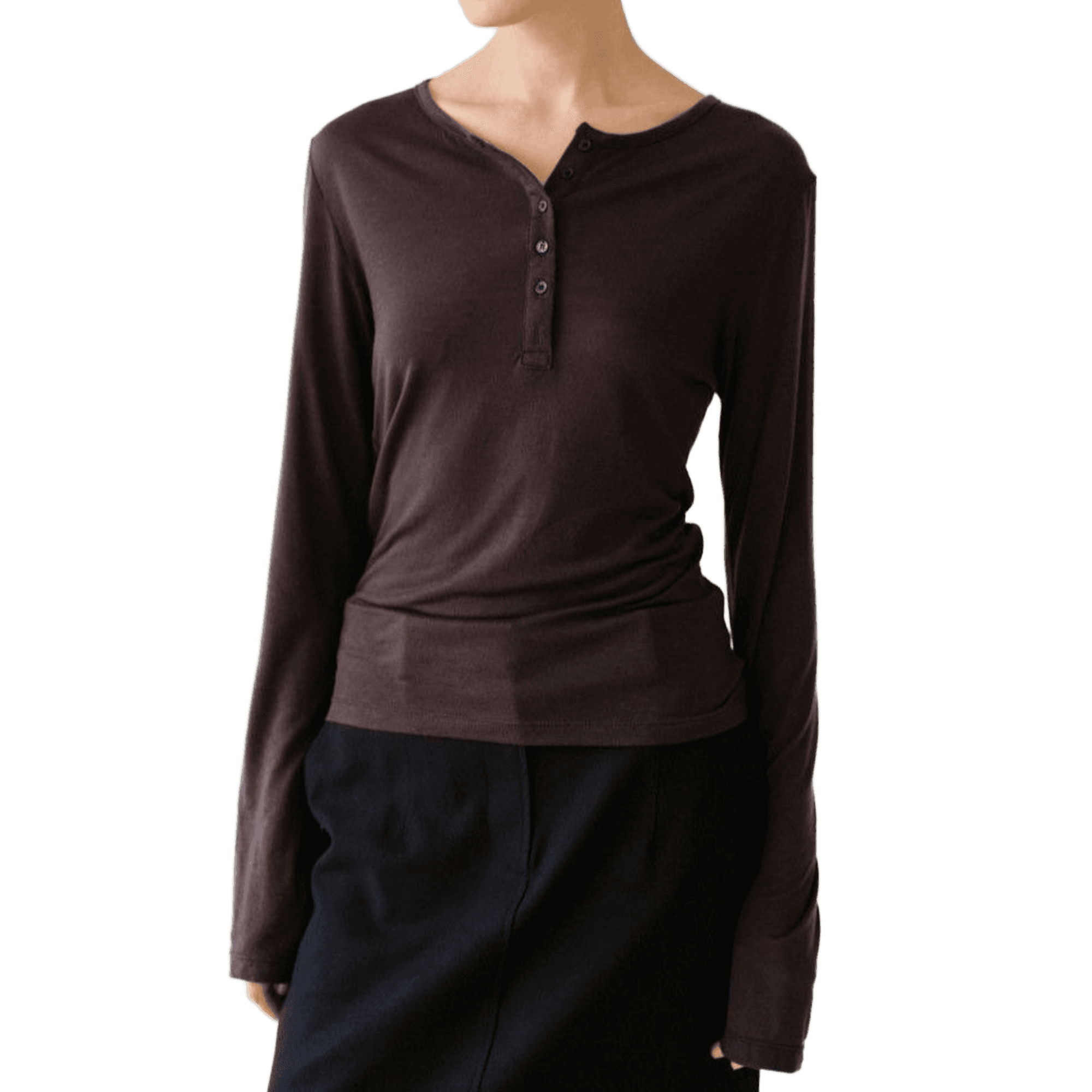 Henley Neck Long Sleeve in Brown