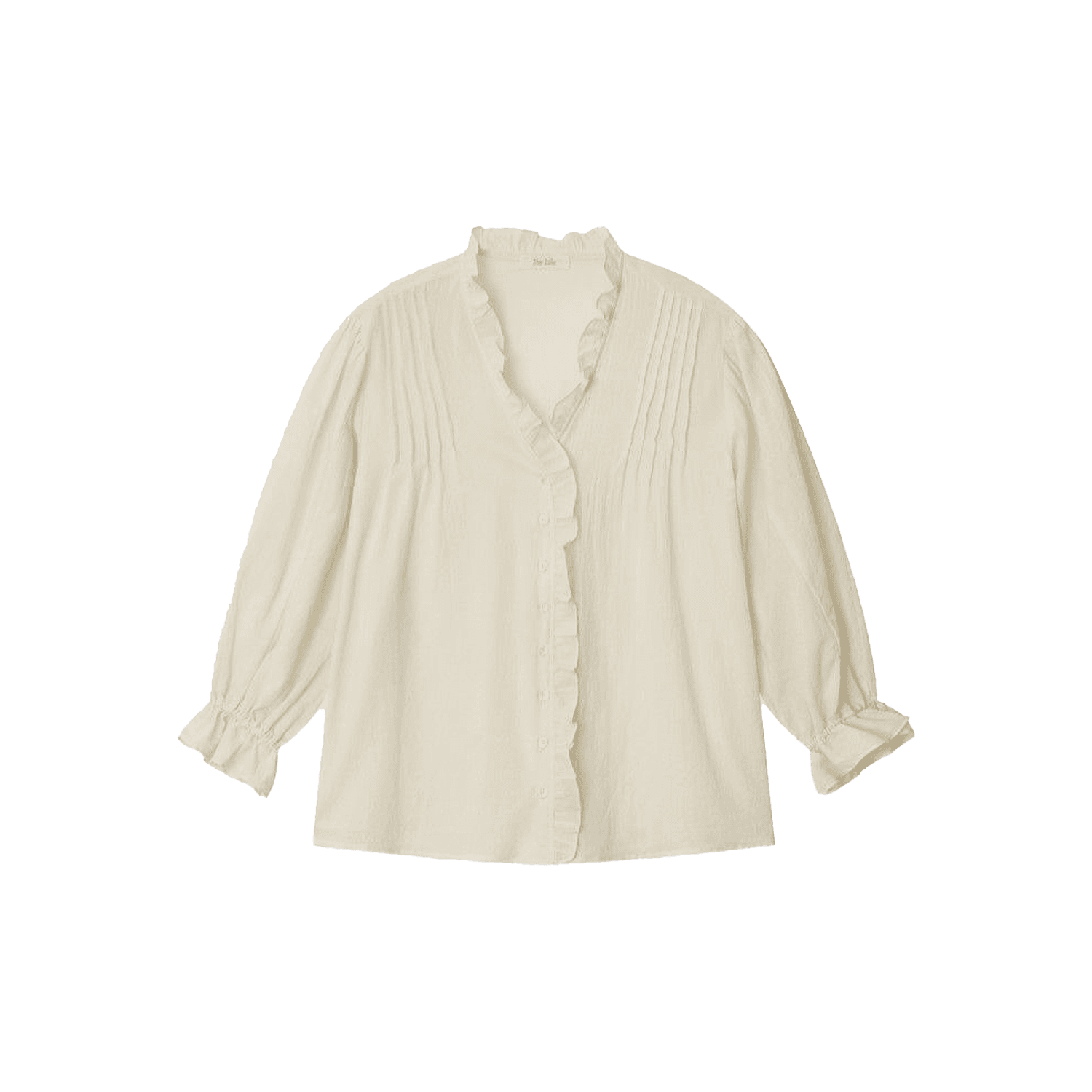 7부 기장으로 경쾌하고 산뜻한 무드로 완성된 블라우스예요.