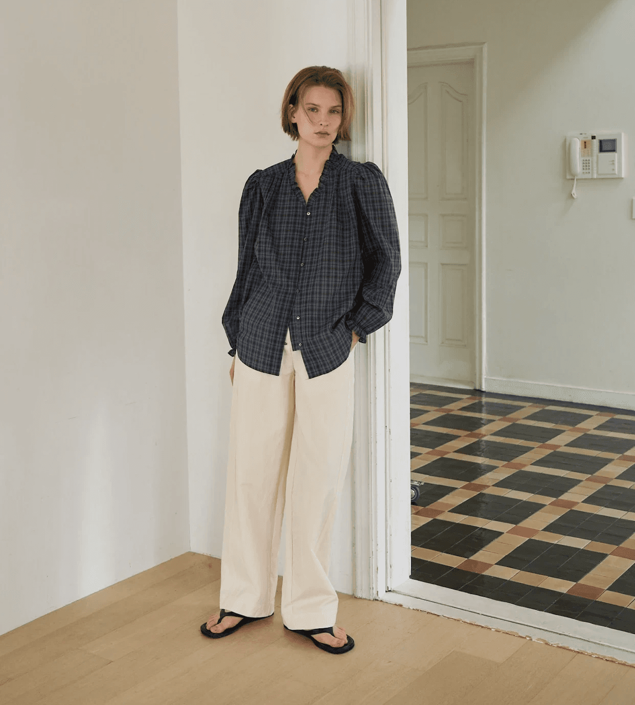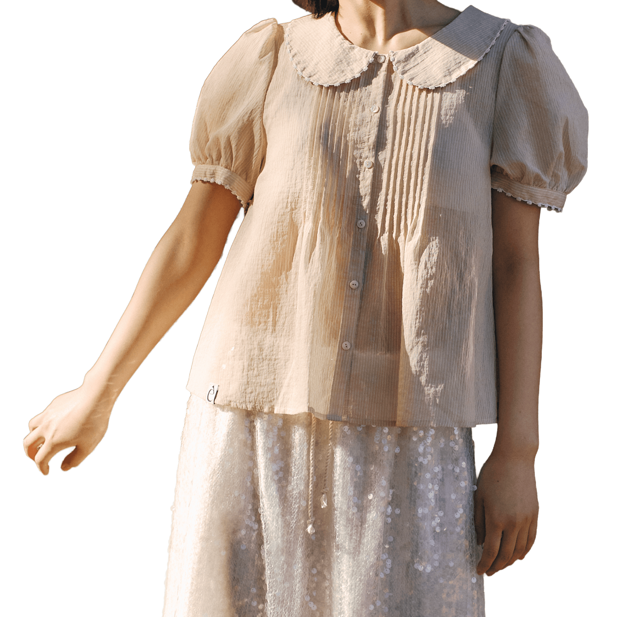 잔잔한 입체감과 핀턱 디테일이 돋보이는 사랑스러운 블라우스입니다. 세련된 베이지 컬러로 감도 높은 데일리룩을 완성하세요.