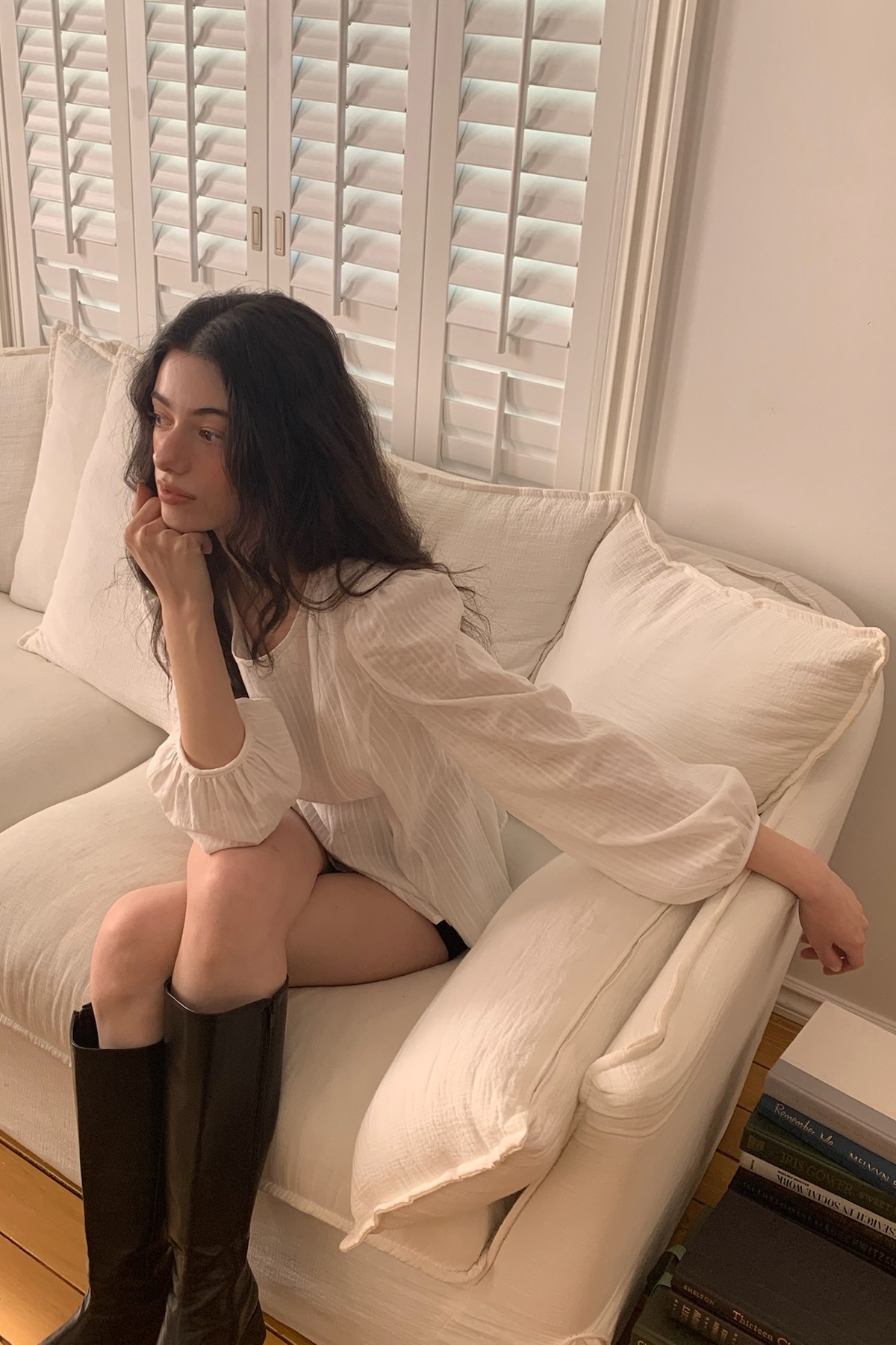 리리수 베스트 아이템인 페미닌한 무드의 가벼운 블라우스입니다. 초여름까지 시원하게, 감성 가득한 데일리룩을 완성해 보세요.
