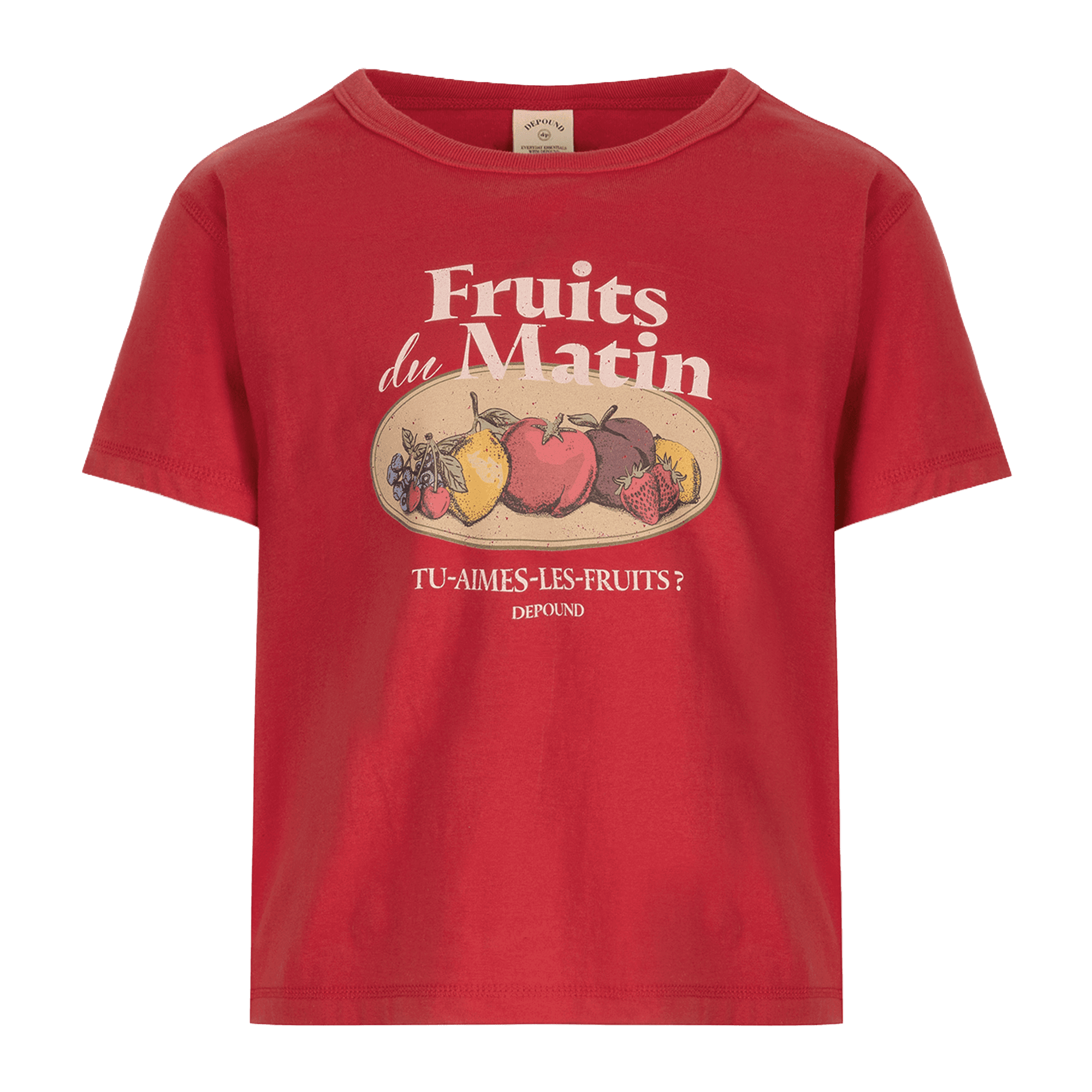 시즌 후르츠 마켓 그래픽이 포인트가 되어주며, 크롭한 기장감이 어우러져 내추럴하면서도 캐주얼한 무드를 완성해줍니다.