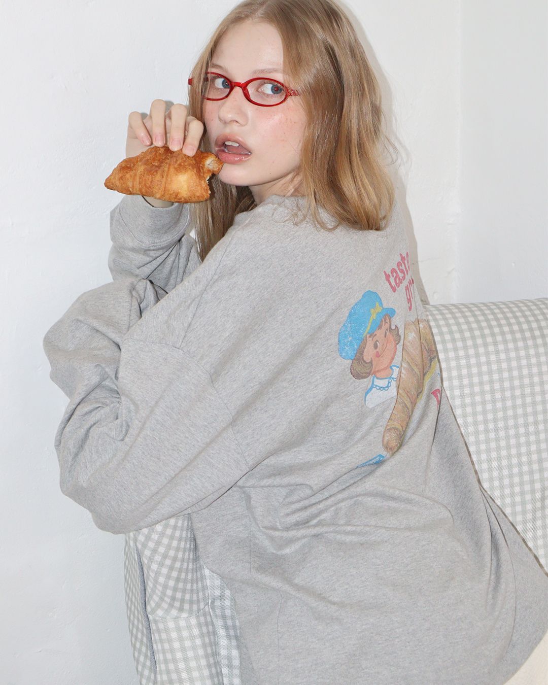 갓 구운 빵의 온기를 품은 소녀의 하루. 살짝 녹아드는 색감과 결처럼 이어지는 부드러운 텍스처로 평범한 날들을 물들입니다.