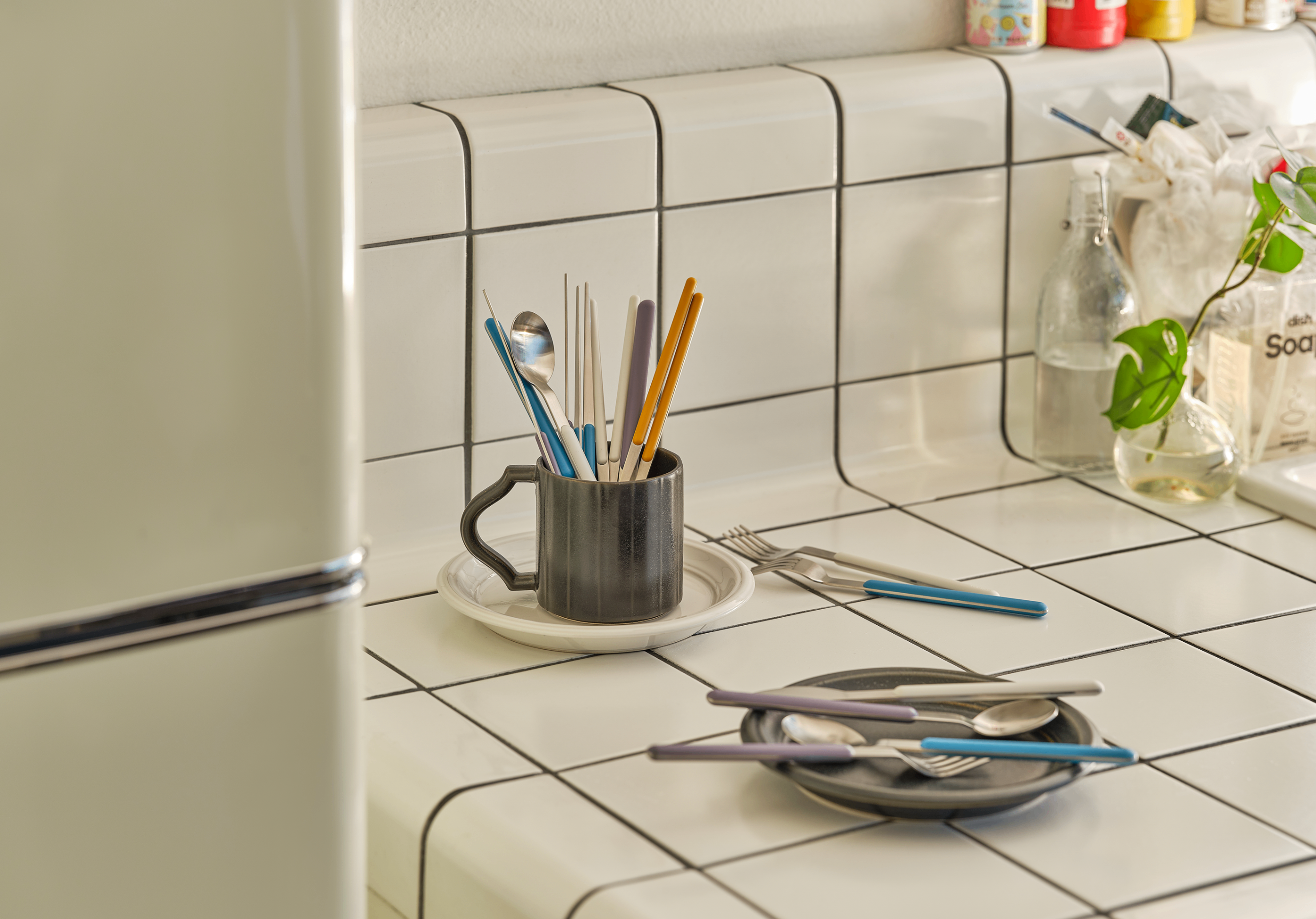 컬러풀한 파스텔 색감과 안정감 있는 그립. 도화지를 채우기 전, 그 순간의 설렘을 담아, 테누토 크레요 커트러리로 플레이팅의 즐거움을 완성해보세요.
