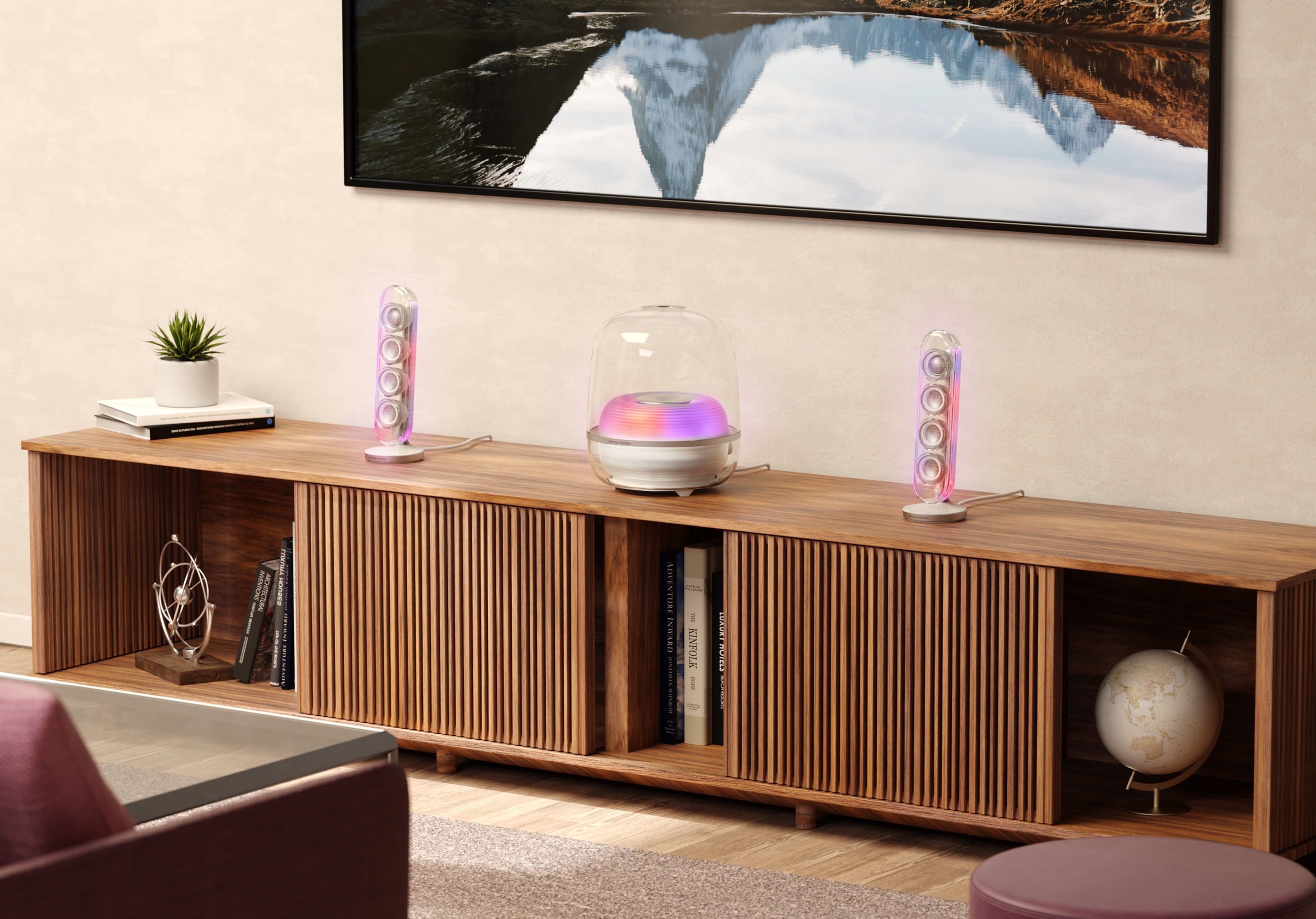 더욱 맑아진 투명 바디의 사운드스틱5 발매 소식을 알려요. 아름다운 디자인과 사운드로 공간을 가득 채웁니다.
