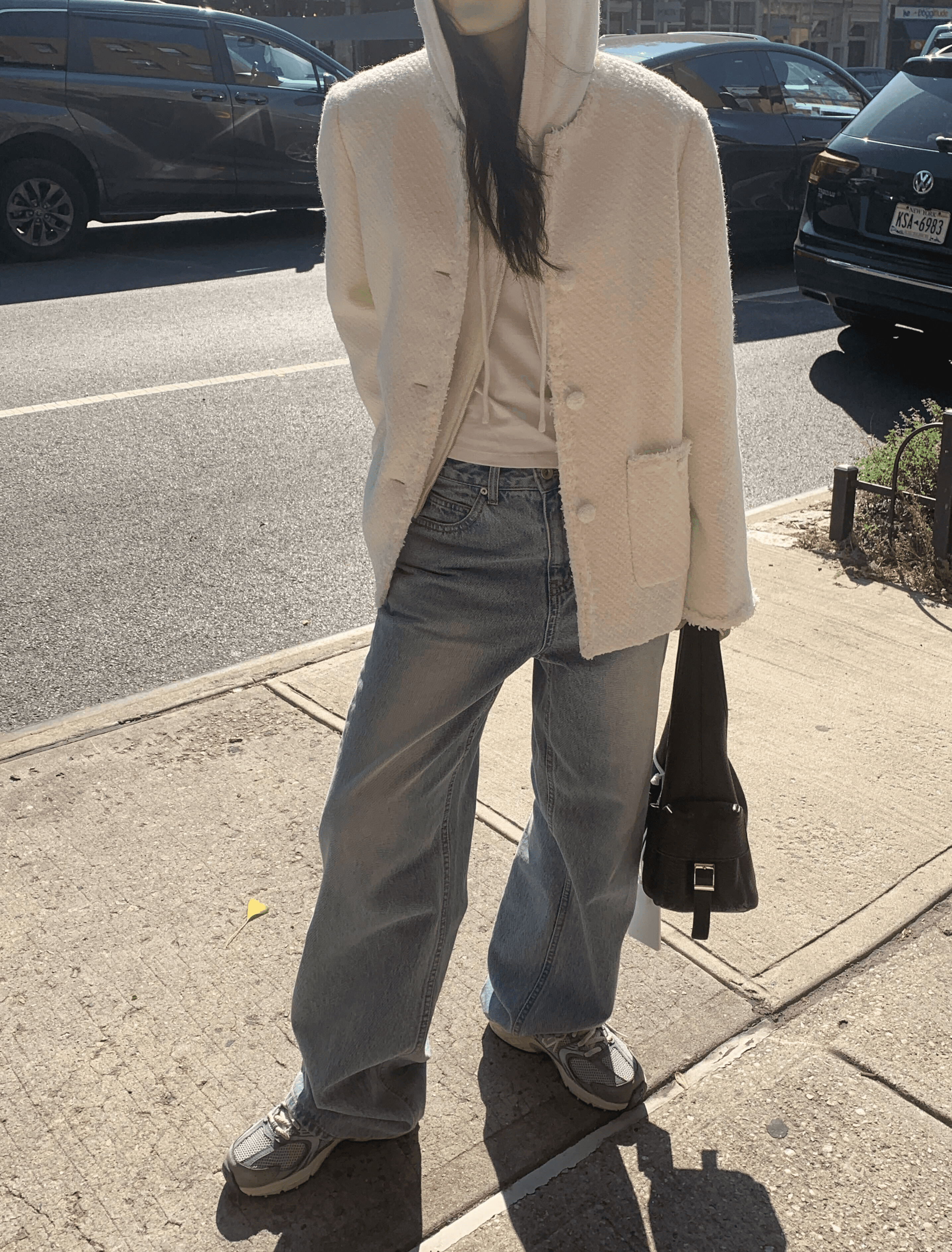 타임리스 헤이그 아이템에 인플루언서 지민의 감각적인 스타일링을 더해 일상에서 활용도 높은 착장을 제안합니다.